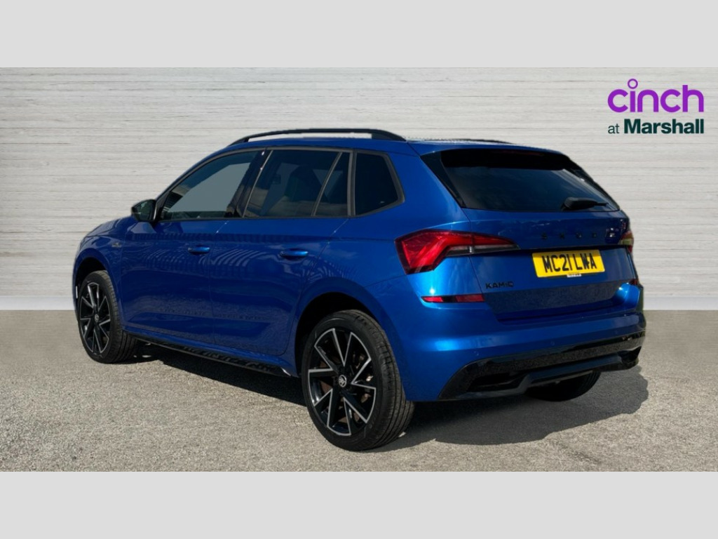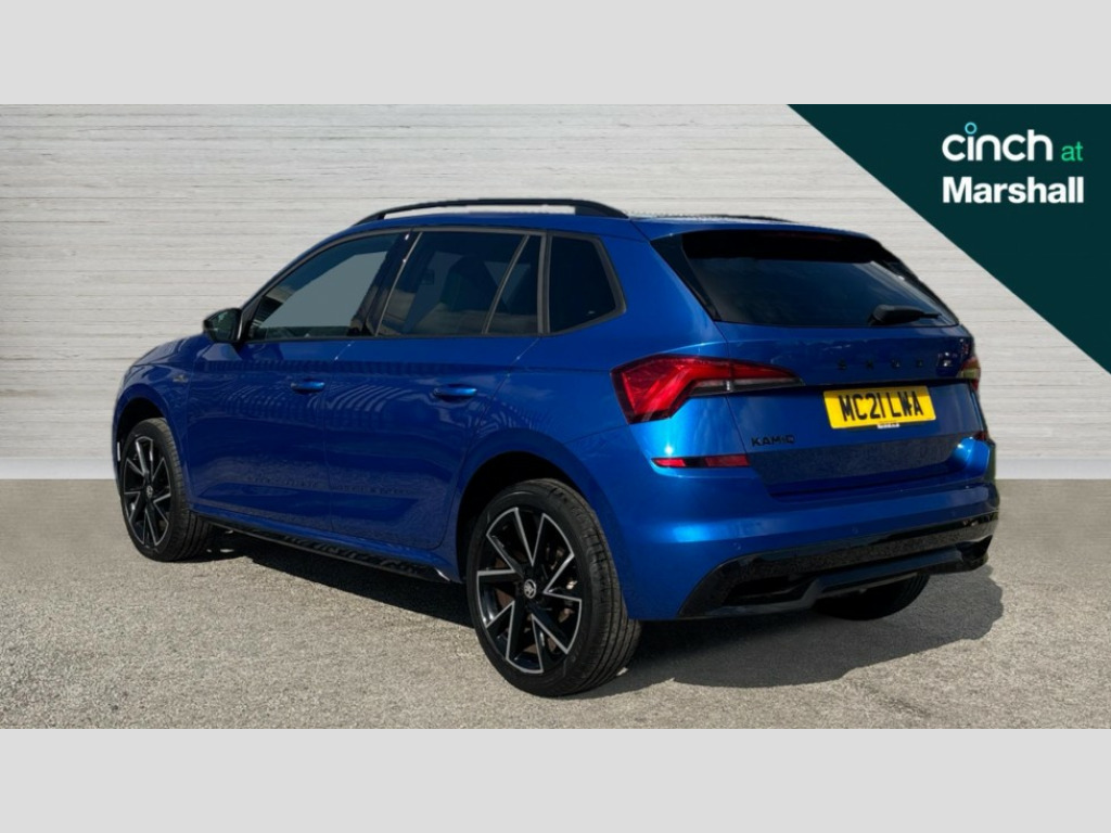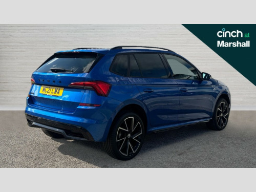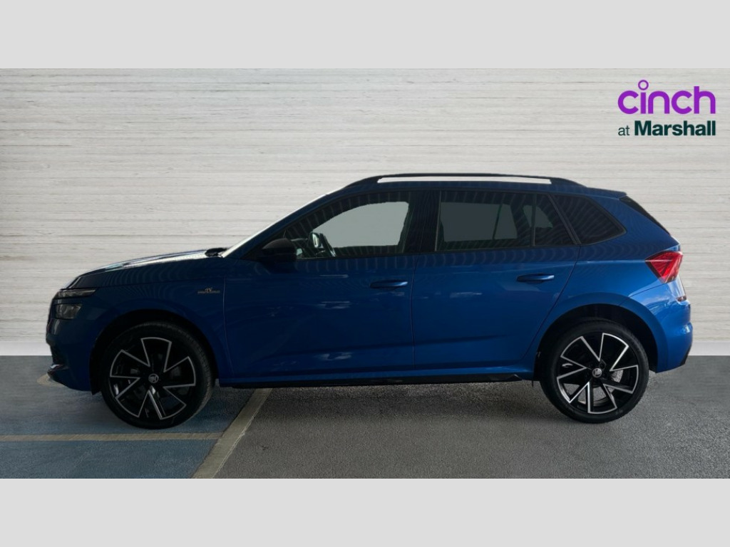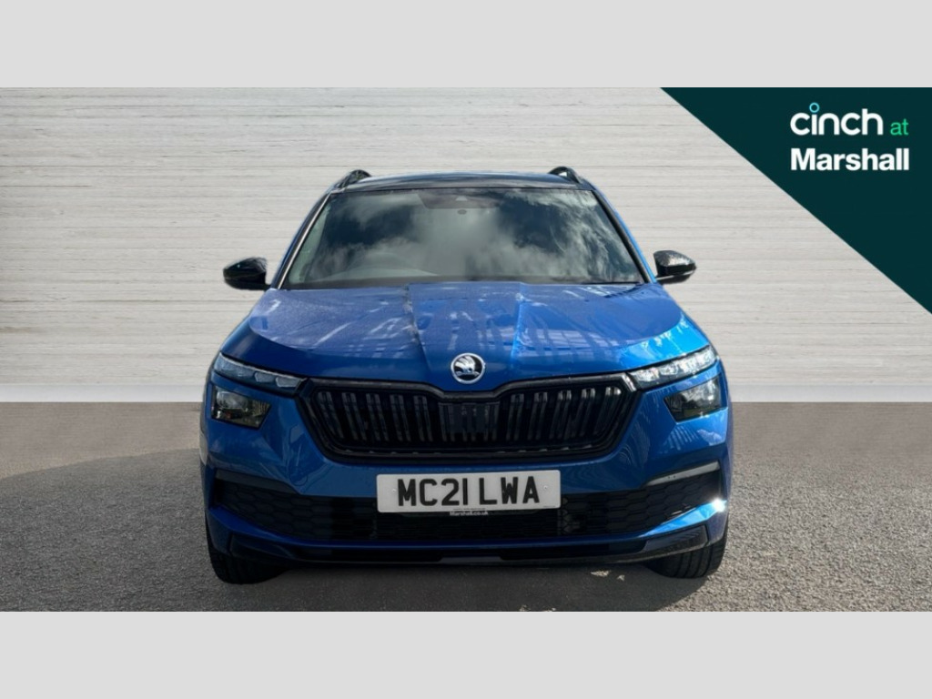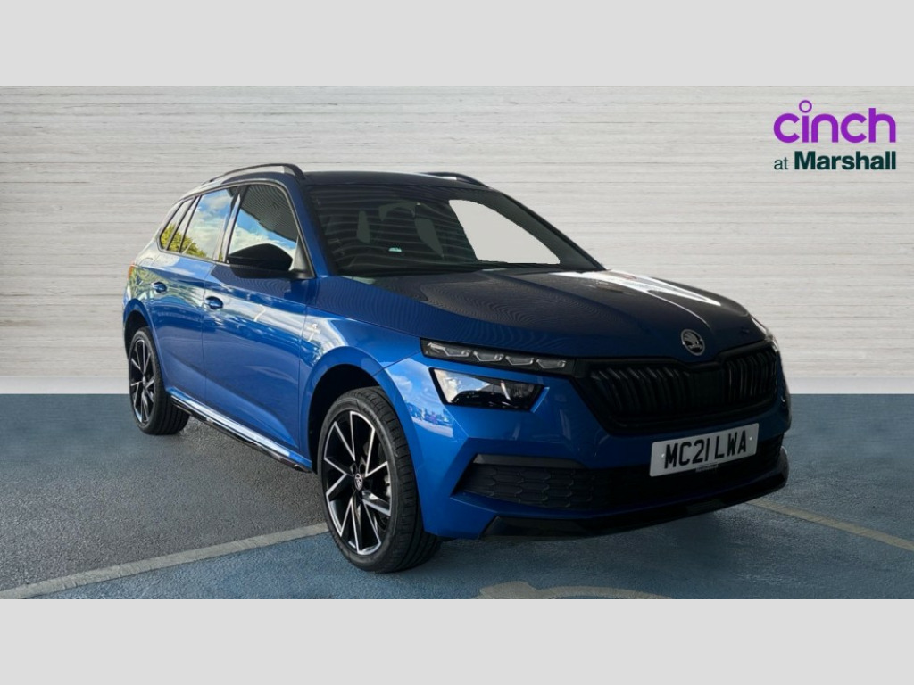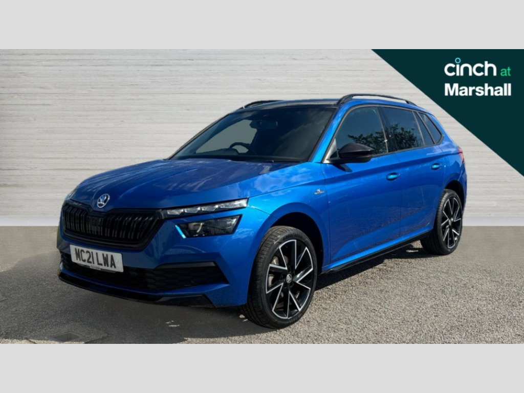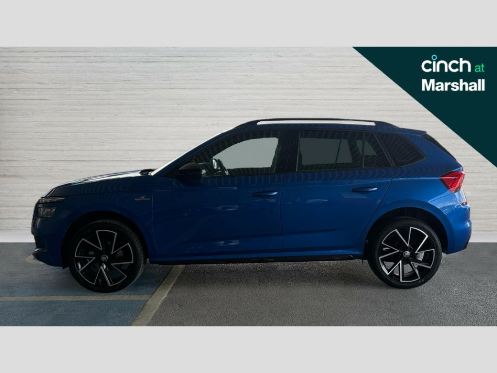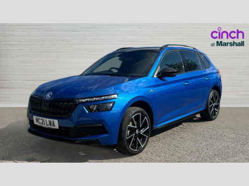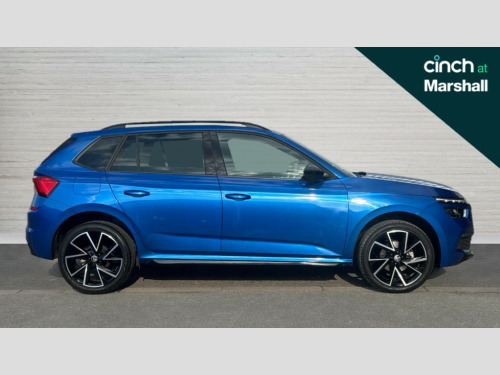 Skoda Kamiq 1.5 TSI Monte Carlo 5dr DSG Amundsen satellite navigation with 9.2" touchscreen display, voice control, virtual cockpit and web radio, Bluetooth system, E-call, Front assist system, Gesture control, PAS, Service indicator, Speed limiter, Virtual cockpit with 10.25" display, Wireless SmartLink for apple car play, android auto and mirrorlink, 2 USB - C ports with 1x adaptor cable, Auxiliary input socket, DAB Digital radio, Auto dimming rear view mirror, Black door mirrors, Black radiator grille, Black rear diffuser, Body colour bumpers, Body colour door handles, Body colour roof spoiler, Boot lettering in black, Chrome grille surround, Electrically adjustable and heated door mirrors, Fixed panoramic sunroof with black roof rails, Front and rear electric windows, Front sport bumper, Full LED headlights with adaptive front light system, dynamic indicators, cornering function and fog lights, Headlight range control, Heated rear window, High functionality rear led lights with dynamic indicators, KAMIQ Door sills, Light sensors, Monte carlo plaque, Privacy glass, Rear fog lights, Rear wiper, 12V Accessory socket in centre console, Aluminium pedals, Black ceiling for black/beige interior, Chrome inner door handles, Cloth upholstery, Front head restraints, Glove compartment with illumination, Height adjustable passenger seat, Ice scraper, Isofix child seat fittings on outer rear seats, ISOFIX on front passenger seat, Leather gear lever, Manual lumbar support for front seats, Rake/reach adjustable steering wheel, Reading lights, Sports seats, Sun visors with illumination on front passenger, Textile floor mats, Third rear headrest, Top tether for front passenger seat, Umbrella in driver's door, 3x3 point rear seatbelts, Airbags - driver and front passenger, ESP, Front passenger airbag deactivation switch, Front side airbags with curtain airbags, Hill hold control, Manual parking brake, One tone horn, Rear disc brakes, Seatbelt reminder for driver an co-driver, Traction control, Tyre pressure monitor, Anti-theft alarm system with interior monitoring, backup horn, towing protection and remote central locking with SAFE system, Anti-theft wheel bolts, Electronic engine immobilizer, Chrome air vent surrounds, 18" Vega alloy wheels in black