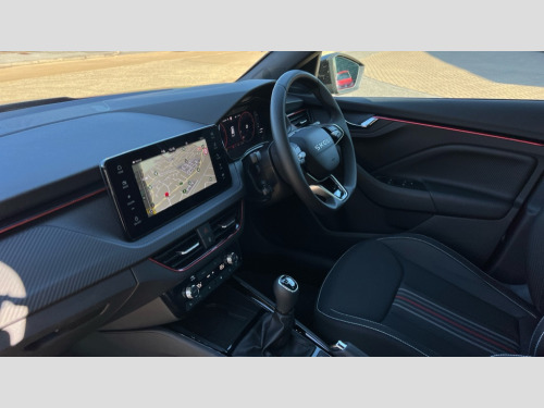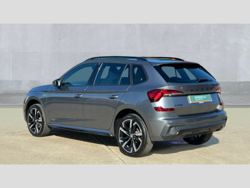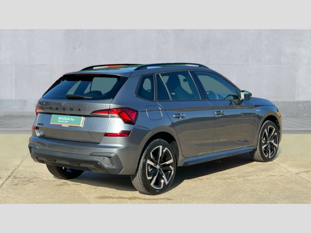Skoda Kamiq 1.5 TSI Monte Carlo Edition 5dr Advanced driver attention and drowsiness monitor, Bluetooth system, E-call, Front assist system, PAS, Rear parking sensors, Rear view camera, Service indicator, Speed limiter, Traffic sign recognition, Virtual cockpit with 10.25" display, Voice control system, Wireless smartlink, 4 USB C ports, 8 Speakers, 9.2" Skoda navigation display, DAB Digital radio, Auto dimming rear view mirror, Automatic headlight control with coming home and leaving home feature, Black door mirrors, Black radiator grille, Black rear diffuser, Black roof spoiler, Body colour bumpers, Body colour door handles, Boot lettering in black, Extended tailgate glass, Front and rear electric windows, Heated rear window, LED daytime running lights, LED high beam, LED low beam, LED third brake light, Light sensors, Monte carlo plaque, Panoramic sunroof with black roof rails, Privacy glass, Rear side wing doors, Rear wiper, Ticket holder inside windscreen, 12V socket in luggage compartment, 3 seat bench in 2nd row, Aluminium pedals, Ambient lighting in white/red, Art leather carbon decor inserts, Art leather carbon door inserts, Black roof lining, Cargo elements, Chrome inner door handles, Driver and passenger sun visors with vanity mirror, Dual zone climate control, Front and rear roof lights, Front centre armrest, Front head restraints, Glove compartment with illumination, Height adjustable driver seat, Height adjustable front passenger seat, Ice scraper, Inner circulation control with pollen filter, ISOFIX on front passenger seat, Isofix preparation for back seats, Leather gearknob and handbrake lever, Manual lumbar support for front seats, Monte Carlo cloth upholstery, Net package and top tether hooks in boot space, Net under rear shelf, Pocket on the back of both front seats include mobile phone pockets, Rake/reach adjustable steering wheel, Reading lights, Rear centre armrests, Red hotstamping, Single front passenger seat, Sports seats, Textile floor mats, Third rear headrest, Top tether for front passenger seat, Umbrella in driver's door, Light and view plus package - Kamiq, 3x3 point rear seatbelts, Airbags - driver and front passenger, Disc brakes, ESP, Extended and predictive pedestrian/cyclist protection, Front passenger airbag deactivation switch, Front side airbags with curtain airbags, Hill hold control, Manual leather parking brake, Manual rear child locks, One tone horn, Seatbelt reminder for driver an co-driver, Traction control, Tyre pressure monitor, Anti-theft alarm system with interior monitoring, backup horn, towing protection and remote central locking with SAFE system, Anti-theft wheel bolts, Electronic engine immobilizer, 18" Ursa black diamond cut alloy wheels
