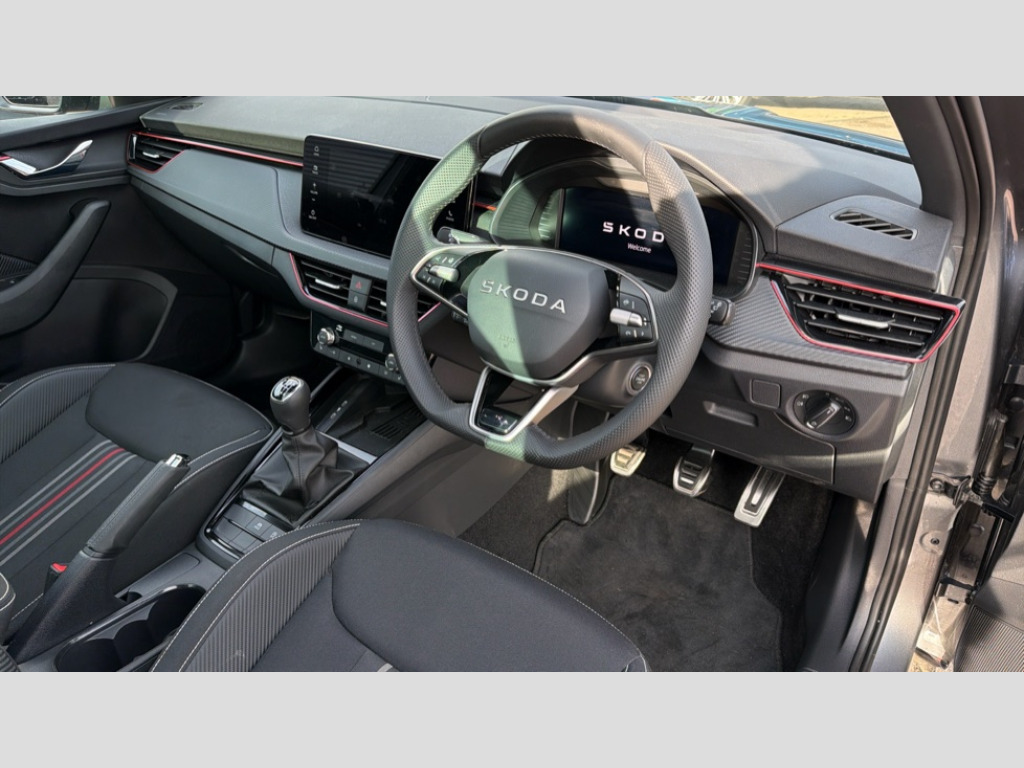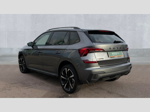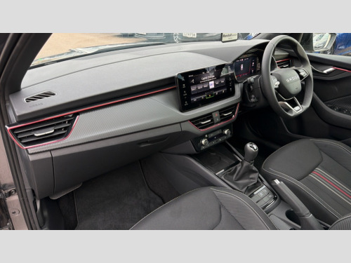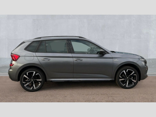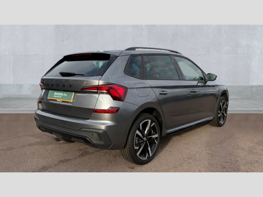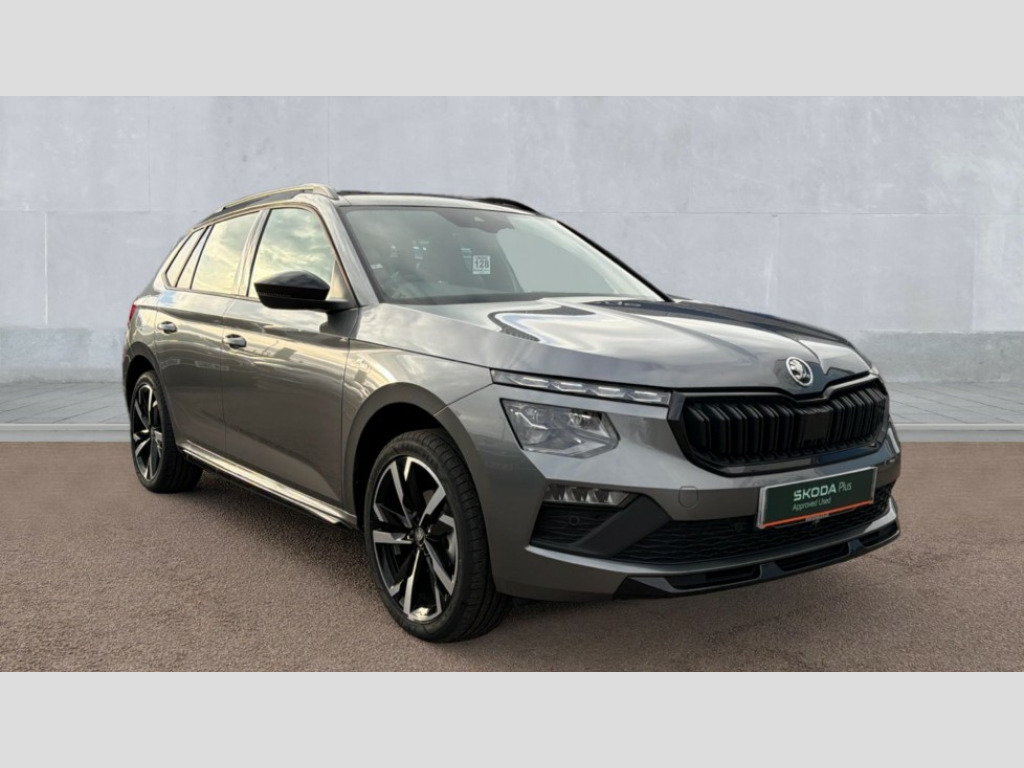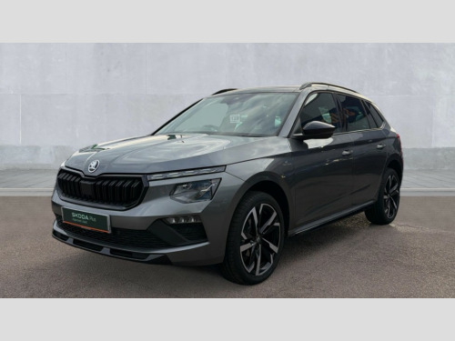 Skoda Kamiq 1.5 TSI Monte Carlo Edition 5dr Advanced driver attention and drowsiness monitor, Bluetooth system, E-call, Front assist system, PAS, Rear parking sensors, Rear view camera, Service indicator, Speed limiter, Traffic sign recognition, Virtual cockpit with 10.25" display, Voice control system, Wireless smartlink, 4 USB C ports, 8 Speakers, 9.2" Skoda navigation display, DAB Digital radio, Auto dimming rear view mirror, Automatic headlight control with coming home and leaving home feature, Black door mirrors, Black radiator grille, Black rear diffuser, Black roof spoiler, Body colour bumpers, Body colour door handles, Boot lettering in black, Extended tailgate glass, Fixed panoramic sunroof with black roof rails, Front and rear electric windows, Heated rear window, LED daytime running lights, LED high beam, LED low beam, LED third brake light, Light sensors, Monte carlo plaque, Privacy glass, Rear side wing doors, Rear wiper, Ticket holder inside windscreen, 12V socket in luggage compartment, 3 seat bench in 2nd row, Aluminium pedals, Ambient lighting in white/red, Art leather carbon decor inserts, Art leather carbon door inserts, Black roof lining, Cargo elements, Chrome inner door handles, Driver and passenger sun visors with vanity mirror, Dual zone climate control, Front and rear roof lights, Front centre armrest, Front head restraints, Glove compartment with illumination, Height adjustable driver seat, Height adjustable front passenger seat, Ice scraper, Inner circulation control with pollen filter, ISOFIX on front passenger seat, Isofix preparation for back seats, Leather gearknob and handbrake lever, Manual lumbar support for front seats, Monte Carlo cloth upholstery, Net package and top tether hooks in boot space, Net under rear shelf, Pocket on the back of both front seats include mobile phone pockets, Rake/reach adjustable steering wheel, Reading lights, Rear centre armrests, Red hotstamping, Single front passenger seat, Sports seats, Textile floor mats, Third rear headrest, Top tether for front passenger seat, Umbrella in driver's door, Light and view plus package - Kamiq, 3x3 point rear seatbelts, Airbags - driver and front passenger, Disc brakes, ESP, Extended and predictive pedestrian/cyclist protection, Front passenger airbag deactivation switch, Front side airbags with curtain airbags, Hill hold control, Manual leather parking brake, Manual rear child locks, One tone horn, Seatbelt reminder for driver an co-driver, Traction control, Tyre pressure monitor, Anti-theft alarm system with interior monitoring, backup horn, towing protection and remote central locking with SAFE system, Anti-theft wheel bolts, Electronic engine immobilizer, 18" Ursa black diamond cut alloy wheels