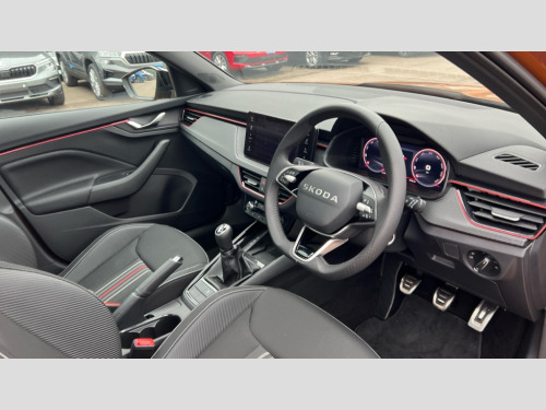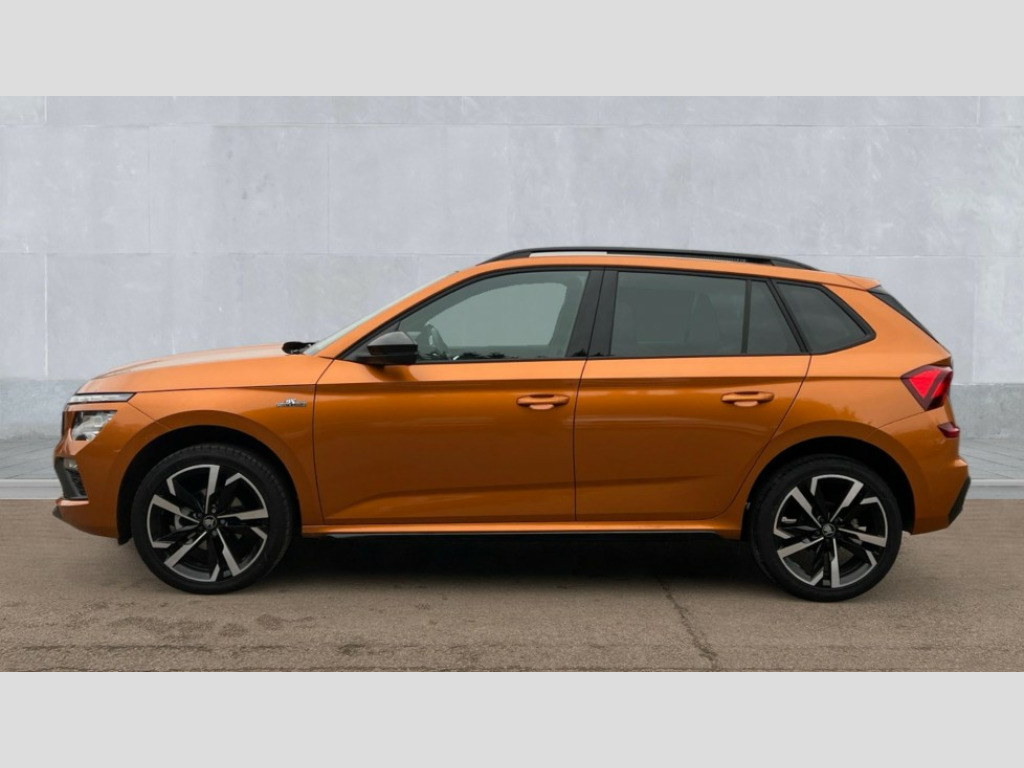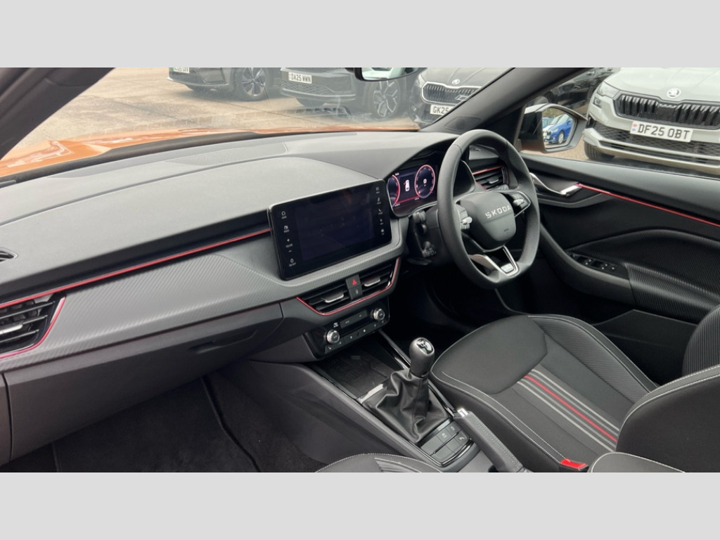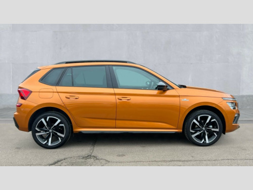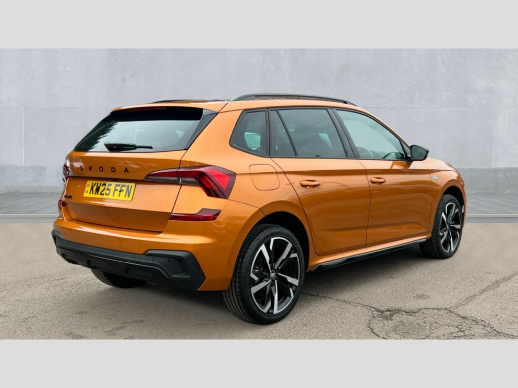 Skoda Kamiq 1.5 TSI Monte Carlo Edition 5dr Advanced driver attention and drowsiness monitor, Bluetooth system, E-call, Front assist system, PAS, Rear parking sensors, Rear view camera, Service indicator, Speed limiter, Traffic sign recognition, Virtual cockpit with 10.25" display, Voice control system, Wireless smartlink, 4 USB C ports, 8 Speakers, 9.2" Skoda navigation display, DAB Digital radio, Auto dimming rear view mirror, Automatic headlight control with coming home and leaving home feature, Black door mirrors, Black radiator grille, Black rear diffuser, Black roof spoiler, Body colour bumpers, Body colour door handles, Boot lettering in black, Extended tailgate glass, Fixed panoramic sunroof with black roof rails, Front and rear electric windows, Heated rear window, LED daytime running lights, LED high beam, LED low beam, LED third brake light, Light sensors, Monte carlo plaque, Privacy glass, Rear side wing doors, Rear wiper, Ticket holder inside windscreen, 12V socket in luggage compartment, 3 seat bench in 2nd row, Aluminium pedals, Ambient lighting in white/red, Art leather carbon decor inserts, Art leather carbon door inserts, Black roof lining, Cargo elements, Chrome inner door handles, Driver and passenger sun visors with vanity mirror, Dual zone climate control, Front and rear roof lights, Front centre armrest, Front head restraints, Glove compartment with illumination, Height adjustable driver seat, Height adjustable front passenger seat, Ice scraper, Inner circulation control with pollen filter, ISOFIX on front passenger seat, Isofix preparation for back seats, Leather gearknob and handbrake lever, Manual lumbar support for front seats, Monte Carlo cloth upholstery, Net package and top tether hooks in boot space, Net under rear shelf, Pocket on the back of both front seats include mobile phone pockets, Rake/reach adjustable steering wheel, Reading lights, Rear centre armrests, Red hotstamping, Single front passenger seat, Sports seats, Textile floor mats, Third rear headrest, Top tether for front passenger seat, Umbrella in driver's door, Light and view plus package - Kamiq, 3x3 point rear seatbelts, Airbags - driver and front passenger, Disc brakes, ESP, Extended and predictive pedestrian/cyclist protection, Front passenger airbag deactivation switch, Front side airbags with curtain airbags, Hill hold control, Manual leather parking brake, Manual rear child locks, One tone horn, Seatbelt reminder for driver an co-driver, Traction control, Tyre pressure monitor, Anti-theft alarm system with interior monitoring, backup horn, towing protection and remote central locking with SAFE system, Anti-theft wheel bolts, Electronic engine immobilizer, 18" Ursa black diamond cut alloy wheels