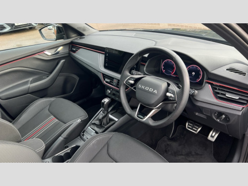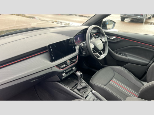 Skoda Kamiq 1.5 TSI Monte Carlo Edition 5dr DSG Advanced driver attention and drowsiness monitor, Bluetooth system, E-call, Front assist system, PAS, Rear parking sensors, Rear view camera, Service indicator, Speed limiter, Traffic sign recognition, Virtual cockpit with 10.25" display, Voice control system, Wireless smartlink, 4 USB C ports, 8 Speakers, 9.2" Skoda navigation display, DAB Digital radio, Auto dimming rear view mirror, Automatic headlight control with coming home and leaving home feature, Black door mirrors, Black radiator grille, Black rear diffuser, Black roof spoiler, Body colour bumpers, Body colour door handles, Boot lettering in black, Extended tailgate glass, Fixed panoramic sunroof with black roof rails, Front and rear electric windows, Heated rear window, LED daytime running lights, LED high beam, LED low beam, LED third brake light, Light sensors, Monte carlo plaque, Privacy glass, Rear side wing doors, Rear wiper, Ticket holder inside windscreen, 12V socket in luggage compartment, 3 seat bench in 2nd row, Aluminium pedals, Ambient lighting in white/red, Art leather carbon decor inserts, Art leather carbon door inserts, Black roof lining, Cargo elements, Chrome inner door handles, Driver and passenger sun visors with vanity mirror, Dual zone climate control, Front and rear roof lights, Front centre armrest, Front head restraints, Glove compartment with illumination, Height adjustable driver seat, Height adjustable front passenger seat, Ice scraper, Inner circulation control with pollen filter, ISOFIX on front passenger seat, Isofix preparation for back seats, Leather gearknob and handbrake lever, Manual lumbar support for front seats, Monte Carlo cloth upholstery, Net package and top tether hooks in boot space, Net under rear shelf, Pocket on the back of both front seats include mobile phone pockets, Rake/reach adjustable steering wheel, Reading lights, Rear centre armrests, Red hotstamping, Single front passenger seat, Sports seats, Textile floor mats, Third rear headrest, Top tether for front passenger seat, Umbrella in driver's door, Light and view plus package - Kamiq, 3x3 point rear seatbelts, Airbags - driver and front passenger, Disc brakes, ESP, Extended and predictive pedestrian/cyclist protection, Front passenger airbag deactivation switch, Front side airbags with curtain airbags, Hill hold control, Manual leather parking brake, Manual rear child locks, One tone horn, Seatbelt reminder for driver an co-driver, Traction control, Tyre pressure monitor, Anti-theft alarm system with interior monitoring, backup horn, towing protection and remote central locking with SAFE system, Anti-theft wheel bolts, Electronic engine immobilizer, 18" Ursa black diamond cut alloy wheels