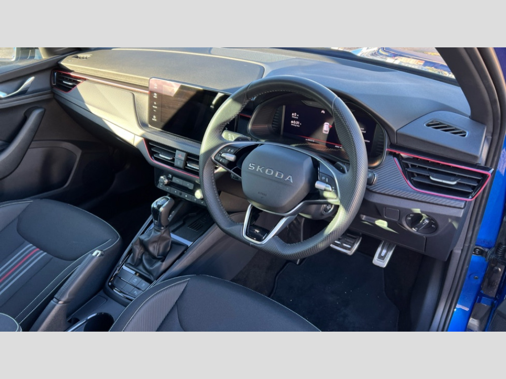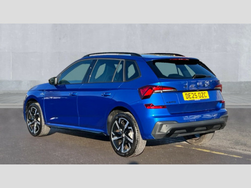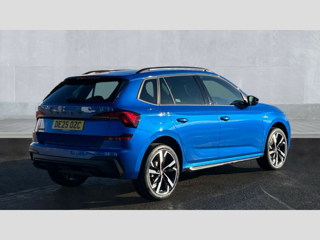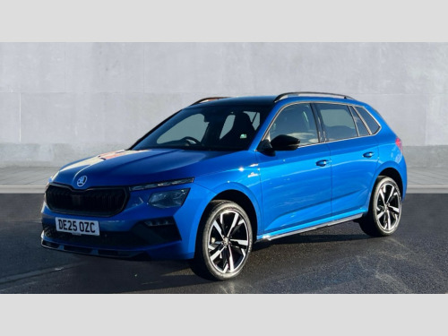 Skoda Kamiq 1.5 TSI Monte Carlo Edition 5dr DSG Advanced driver attention and drowsiness monitor, Bluetooth system, E-call, Front assist system, PAS, Rear parking sensors, Rear view camera, Service indicator, Speed limiter, Traffic sign recognition, Virtual cockpit with 10.25" display, Voice control system, Wireless smartlink, 4 USB C ports, 8 Speakers, 9.2" Skoda navigation display, DAB Digital radio, Auto dimming rear view mirror, Automatic headlight control with coming home and leaving home feature, Black door mirrors, Black radiator grille, Black rear diffuser, Black roof spoiler, Body colour bumpers, Body colour door handles, Boot lettering in black, Extended tailgate glass, Fixed panoramic sunroof with black roof rails, Front and rear electric windows, Heated rear window, LED daytime running lights, LED high beam, LED low beam, LED third brake light, Light sensors, Monte carlo plaque, Privacy glass, Rear side wing doors, Rear wiper, Ticket holder inside windscreen, 12V socket in luggage compartment, 3 seat bench in 2nd row, Aluminium pedals, Ambient lighting in white/red, Art leather carbon decor inserts, Art leather carbon door inserts, Black roof lining, Cargo elements, Chrome inner door handles, Driver and passenger sun visors with vanity mirror, Dual zone climate control, Front and rear roof lights, Front centre armrest, Front head restraints, Glove compartment with illumination, Height adjustable driver seat, Height adjustable front passenger seat, Ice scraper, Inner circulation control with pollen filter, ISOFIX on front passenger seat, Isofix preparation for back seats, Leather gearknob and handbrake lever, Manual lumbar support for front seats, Monte Carlo cloth upholstery, Net package and top tether hooks in boot space, Net under rear shelf, Pocket on the back of both front seats include mobile phone pockets, Rake/reach adjustable steering wheel, Reading lights, Rear centre armrests, Red hotstamping, Single front passenger seat, Sports seats, Textile floor mats, Third rear headrest, Top tether for front passenger seat, Umbrella in driver's door, Light and view plus package - Kamiq, 3x3 point rear seatbelts, Airbags - driver and front passenger, Disc brakes, ESP, Extended and predictive pedestrian/cyclist protection, Front passenger airbag deactivation switch, Front side airbags with curtain airbags, Hill hold control, Manual leather parking brake, Manual rear child locks, One tone horn, Seatbelt reminder for driver an co-driver, Traction control, Tyre pressure monitor, Anti-theft alarm system with interior monitoring, backup horn, towing protection and remote central locking with SAFE system, Anti-theft wheel bolts, Electronic engine immobilizer, 18" Ursa black diamond cut alloy wheels