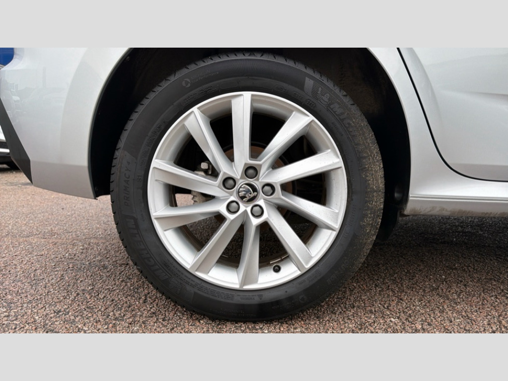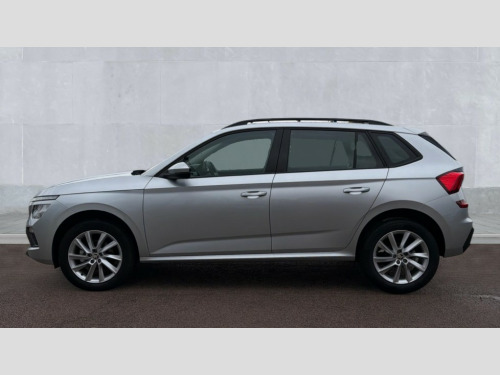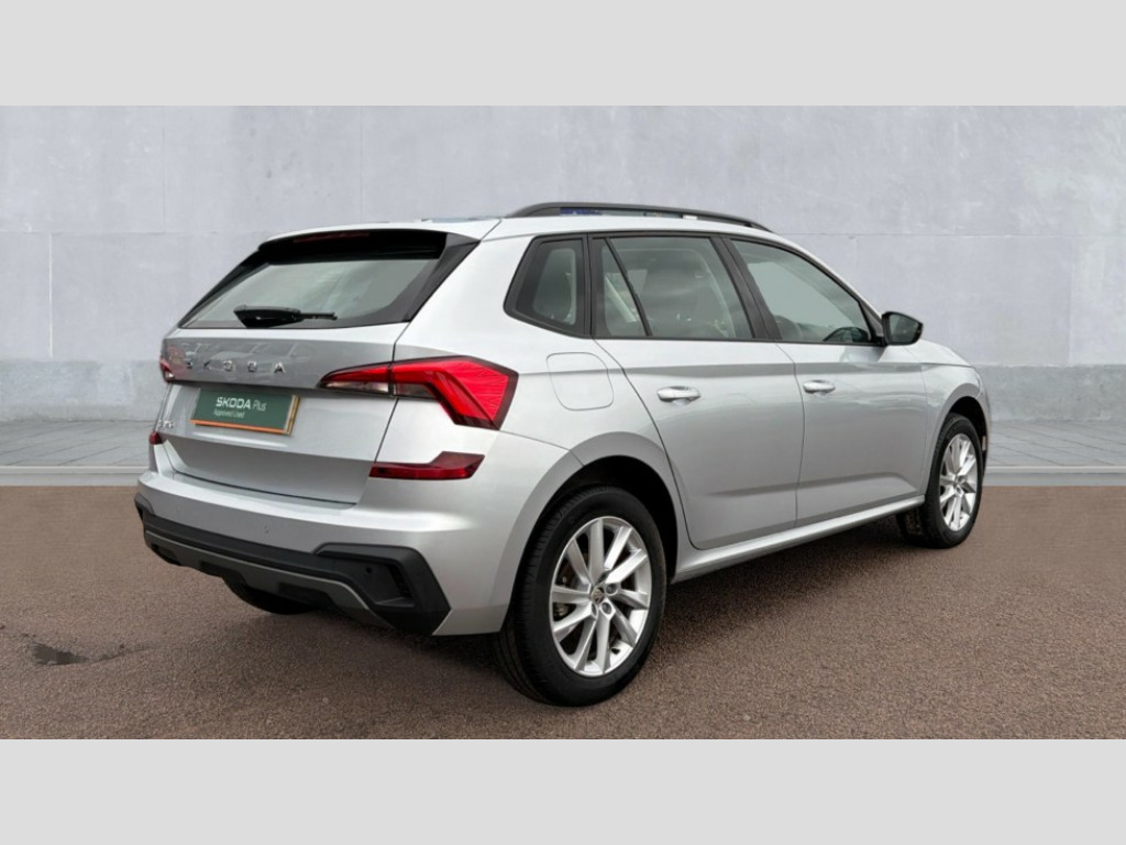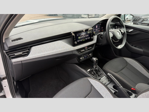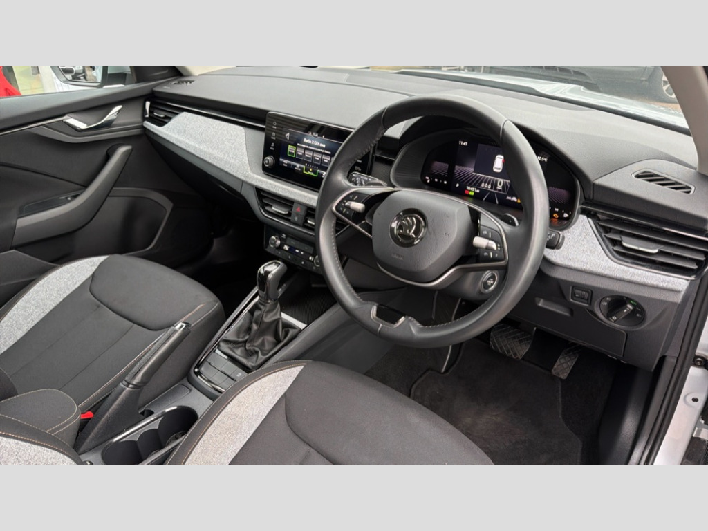 Skoda Kamiq 1.5 TSI SE 5dr DSG 8" Digital display, Advanced driver attention and drowsiness monitor, Bluetooth system, E-call, Front assist system, PAS, Rear parking sensors, Service indicator, Speed limiter, Traffic sign recognition, Wireless smartlink, 4 USB C ports, 8 Speakers, 8.25" Skoda infotainment display, DAB Digital radio, Auto dimming rear view mirror, Automatic headlight control with coming home and leaving home feature, Black roof rails, Body colour bumpers, Body colour door mirrors and handles, Chrome grille surround, Front and rear electric windows, Full LED headlights, Heated rear window, LED daytime running lights, LED front turning lights, LED high beam, LED low beam, LED third brake light, Rear LED fog light, Rear side wing doors, Rear wiper, Ticket holder inside windscreen, 12V socket in luggage compartment, 3 seat bench in 2nd row, Black hotstamping, Cargo elements, Chrome inner door handles, Driver and passenger sun visors with vanity mirror, Dual zone climate control, Front and rear roof lights, Front centre armrest, Front head restraints, Glove compartment with illumination, Height adjustable driver seat, Height adjustable front passenger seat, Ice scraper, Inner circulation control with pollen filter, ISOFIX on front passenger seat, Isofix preparation for back seats, Krepp recycled decor inserts, Leather gearknob and handbrake lever, Loft cloth upholstery, Manual lumbar support for front seats, Net package and top tether hooks in boot space, Net under rear shelf, Overhead glasses storage compartment, Pocket on the back of both front seats include mobile phone pockets, Rake/reach adjustable steering wheel, Reading lights, Satin black door inserts, Single front passenger seat, Textile floor mats, Third rear headrest, Top tether for front passenger seat, Umbrella in driver's door, 3x3 point rear seatbelts, Airbags - driver and front passenger, Disc brakes, ESP, Extended and predictive pedestrian/cyclist protection, Front passenger airbag deactivation switch, Front side airbags with curtain airbags, Hill hold control, Manual leather parking brake, Manual rear child locks, One tone horn, Seatbelt reminder for driver an co-driver, Traction control, Tyre pressure monitor, Anti-theft alarm system with interior monitoring, backup horn, towing protection and remote central locking with SAFE system, Anti-theft wheel bolts, Electronic engine immobilizer