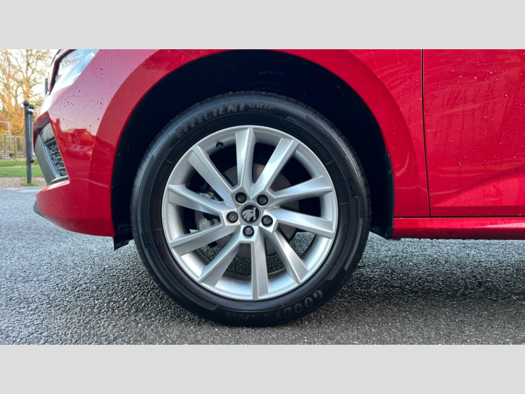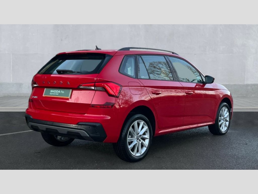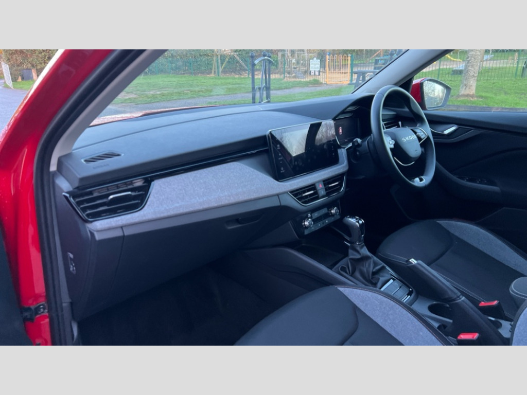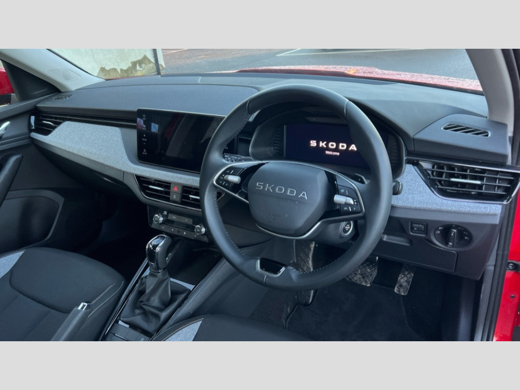 Skoda Kamiq 1.5 TSI SE Edition 5dr DSG Advanced driver attention and drowsiness monitor, Bluetooth system, E-call, Front assist system, PAS, Rear parking sensors, Rear view camera, Service indicator, Speed limiter, Traffic sign recognition, Virtual cockpit with 10.25" display, Voice control system, Wireless smartlink, 4 USB C ports, 8 Speakers, 8.25" Skoda infotainment display, 9.2" Skoda navigation display, DAB Digital radio, Auto dimming rear view mirror, Automatic headlight control with coming home and leaving home feature, Black roof rails, Body colour bumpers, Body colour door mirrors and handles, Chrome grille surround, Front and rear electric windows, Full LED headlights, Heated rear window, LED brake lights, LED daytime running lights, LED front turning lights, LED high beam, LED low beam, LED third brake light, Rear LED fog light, Rear side wing doors, Rear wiper, Ticket holder inside windscreen, 12V socket in luggage compartment, 3 seat bench in 2nd row, Black hotstamping, Cargo elements, Chrome inner door handles, Driver and passenger sun visors with vanity mirror, Dual zone climate control, Front and rear roof lights, Front centre armrest, Front head restraints, Glove compartment with illumination, Height adjustable driver seat, Height adjustable front passenger seat, Ice scraper, Inner circulation control with pollen filter, ISOFIX on front passenger seat, Isofix preparation for back seats, Krepp recycled decor inserts, Leather gearknob and handbrake lever, Loft cloth upholstery, Manual lumbar support for front seats, Net package and top tether hooks in boot space, Net under rear shelf, Overhead glasses storage compartment, Pocket on the back of both front seats include mobile phone pockets, Rake/reach adjustable steering wheel, Reading lights, Satin black door inserts, Single front passenger seat, Textile floor mats, Third rear headrest, Top tether for front passenger seat, Umbrella in driver's door, 3x3 point rear seatbelts, Airbags - driver and front passenger, Disc brakes, ESP, Extended and predictive pedestrian/cyclist protection, Front passenger airbag deactivation switch, Front side airbags with curtain airbags, Hill hold control, Manual leather parking brake, Manual rear child locks, One tone horn, Seatbelt reminder for driver an co-driver, Traction control, Tyre pressure monitor, Anti-theft alarm system with interior monitoring, backup horn, towing protection and remote central locking with SAFE system, Anti-theft wheel bolts, Electronic engine immobilizer