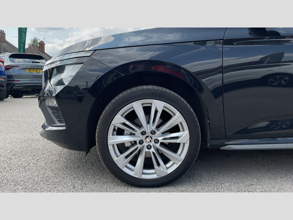 Rain and light assist with auto-dimming rear view mirror Advanced driver attention and drowsiness monitor, Bluetooth system, E-call, Front assist system, PAS, Rear parking sensors, Service indicator, Speed limiter, Traffic sign recognition, Virtual cockpit with 10.25" display, Voice control system, Wireless smartlink, 4 USB C ports, 8 Speakers, 9.2" Skoda navigation display, DAB Digital radio, Auto dimming rear view mirror, Automatic headlight control with coming home and leaving home feature, Body colour bumpers, Body colour door mirrors and handles, Chrome grille surround, Chrome roof rails with chrome window surround, Front and rear electric windows, Heated rear window, LED daytime running lights, LED high beam, LED low beam, LED third brake light, Light sensors, Privacy glass, Rear side wing doors, Rear wiper, Ticket holder inside windscreen, 12V socket in luggage compartment, 3 seat bench in 2nd row, Accent black door inserts, Ambient lighting in white/red, Cargo elements, Chrome inner door handles, Copper hotstamping, Driver and passenger sun visors with vanity mirror, Dual zone climate control, Front and rear roof lights, Front centre armrest, Front head restraints, Glove compartment with illumination, Height adjustable driver seat, Height adjustable front passenger seat, Ice scraper, Inner circulation control with pollen filter, ISOFIX on front passenger seat, Isofix preparation for back seats, Leather gearknob and handbrake lever, Lodge cloth upholstery, Manual lumbar support for front seats, Net package and top tether hooks in boot space, Net under rear shelf, Overhead glasses storage compartment, Pocket on the back of both front seats include mobile phone pockets, Rake/reach adjustable steering wheel, Reading lights, Rear centre armrests, Single front passenger seat, Suedia grey decor inserts, Textile floor mats, Third rear headrest, Top tether for front passenger seat, Umbrella in driver's door, 3x3 point rear seatbelts, Airbags - driver and front passenger, Disc brakes, ESP, Extended and predictive pedestrian/cyclist protection, Front passenger airbag deactivation switch, Front side airbags with curtain airbags, Hill hold control, Manual leather parking brake, Manual rear child locks, One tone horn, Seatbelt reminder for driver an co-driver, Traction control, Tyre pressure monitor, Anti-theft alarm system with interior monitoring, backup horn, towing protection and remote central locking with SAFE system, Anti-theft wheel bolts, Electronic engine immobilizer