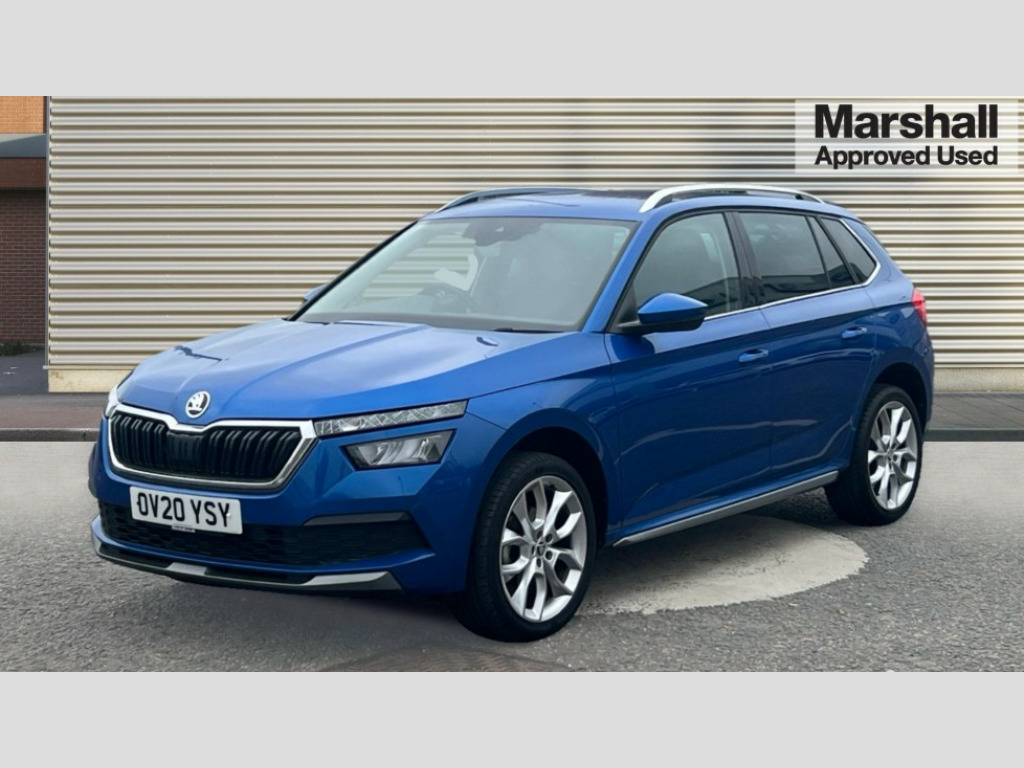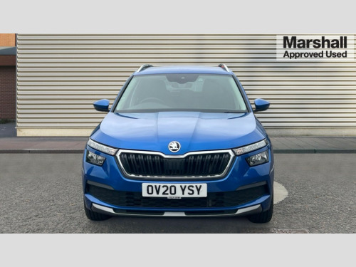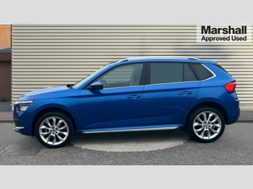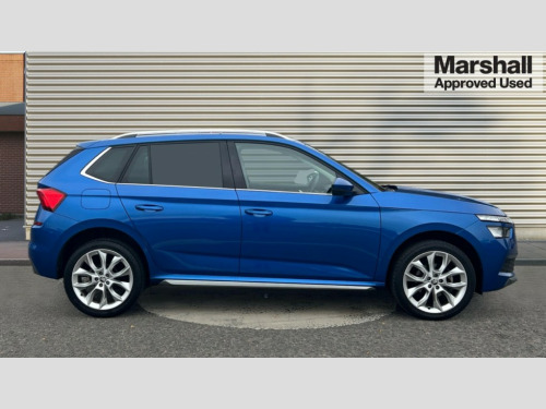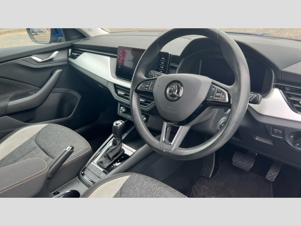 Skoda Kamiq 1.5 TSI SE L 5dr DSG Amundsen satellite navigation with 9.2" touchscreen display, voice control, virtual cockpit and web radio, Blind Spot Detection (BAS), Bluetooth system, E-call, Front assist system, Lane assist, PAS, Service indicator, Speed limiter, Trip computer, Wireless SmartLink for Apple Car Play, 2 USB - C ports with 1x adaptor cable, Auxiliary input socket, Bolero Radio, DAB Digital radio, Auto dimming rear view mirror, Body colour bumpers, Body colour door mirrors and handles, Chrome grille surround, Electric folding door mirrors, Electrically adjustable and heated door mirrors, Front and rear electric windows, Headlight range control, Heated rear window, High functionality rear led lights with dynamic indicators, Light and rain sensors, Privacy glass, Rear fog lights, Rear wiper, 12V Accessory socket in centre console, Chrome inner door handles, Dual zone climate control, Front gesture control, Front head restraints, Glove compartment with illumination, Height adjustable passenger seat, Ice scraper, Isofix child seat fittings on outer rear seats, ISOFIX on front passenger seat, Manual lumbar support for front seats, Pollen filter, Rake/reach adjustable steering wheel, Reading lights for driver and front passenger, Removable LED light in boot, Sun visor with make up mirror for front passenger, Textile floor mats, Third rear headrest, Top tether for front passenger seat, Umbrella in driver's door, 3x3 point rear seatbelts, Airbags - driver and front passenger, ESP, Front passenger airbag deactivation switch, Front side airbags with curtain airbags, Hill hold control, Manual parking brake, Rear disc brakes, Seatbelt reminder for driver an co-driver, Traction control, Two tone horn, Tyre pressure monitor, Alarm with interior monitoring, back up horn and tilt sensor with safe function and towing protection, Anti-theft wheel bolts, Immobiliser, Remote central locking with SAFE system