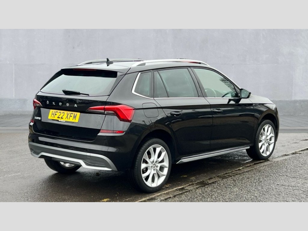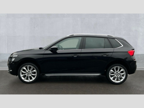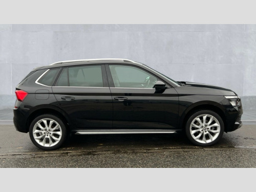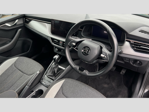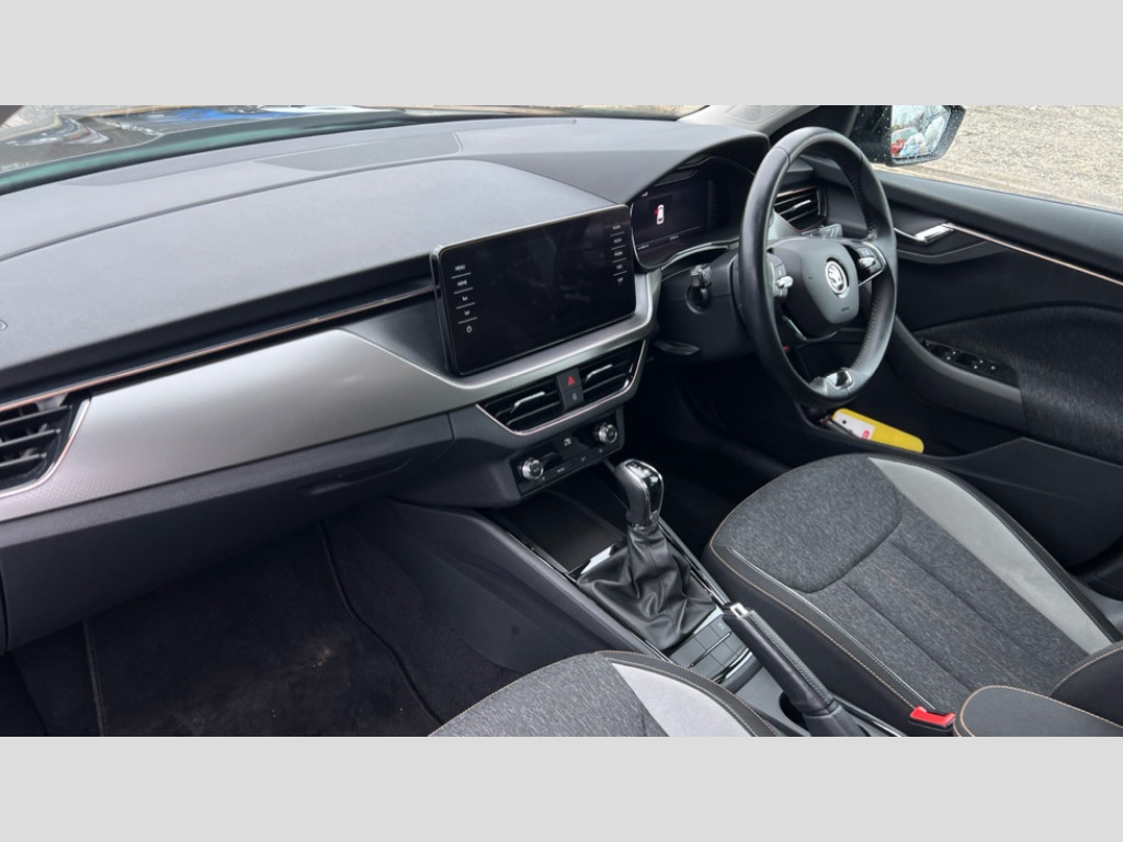 Skoda Kamiq 1.5 TSI SE L 5dr DSG Amundsen satellite navigation with 9.2" touchscreen display, voice control, virtual cockpit and web radio, Bluetooth system, E-call, Front assist system, Gesture control, PAS, Service indicator, Speed limiter, Virtual cockpit with 10.25" display, Wireless SmartLink for apple car play, android auto and mirrorlink, 2 USB - C ports with 1x adaptor cable, 8 Speakers, Auxiliary input socket, DAB Digital radio, Auto dimming rear view mirror, Body colour bumpers, Body colour door mirrors and handles, Chrome grille surround, Electric folding door mirrors, Electrically adjustable and heated door mirrors, Front and rear electric windows, Headlight range control, Heated rear window, High functionality rear led lights with dynamic indicators, Light sensors, Privacy glass, Rear fog lights, Rear side wing doors, Rear wiper, Third brake light, 12V Accessory socket in centre console, 2 spoke leather multifunction steering wheel, 3 seat bench in 2nd row, Chrome inner door handles, Dual zone climate control, Front head restraints, Glove compartment with illumination, Ice scraper, Isofix child seat fittings on outer rear seats, ISOFIX on front passenger seat, Manual lumbar support for front seats, Rake/reach adjustable steering wheel, Reading lights, Single front passenger seat, Sun visors with illumination on front passenger, Textile floor mats, Third rear headrest, Top tether for front passenger seat, Umbrella in driver's door, 3x3 point rear seatbelts, Airbags - driver and front passenger, ESP, Front passenger airbag deactivation switch, Front side airbags with curtain airbags, Hill hold control, Manual parking brake, Manual rear child locks, One tone horn, Rear disc brakes, Seatbelt reminder for driver an co-driver, Traction control, Tyre pressure monitor, Anti-theft alarm system with interior monitoring, backup horn, towing protection and remote central locking with SAFE system, Anti-theft wheel bolts, Electronic engine immobilizer, Latice curved decorative insert on the dashboard with hot stamping in copper and white ambient lighting white