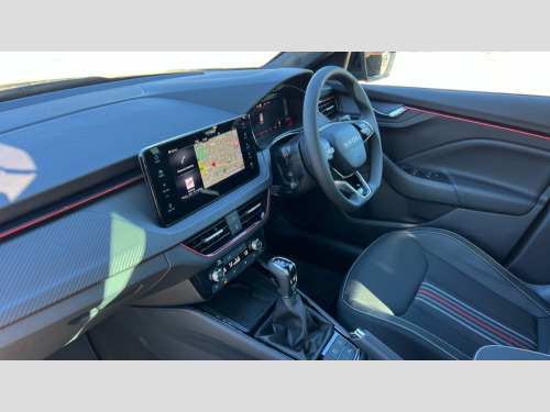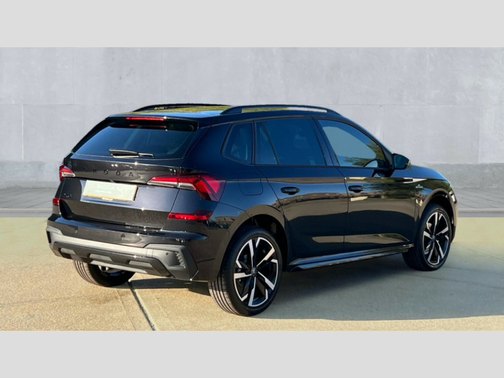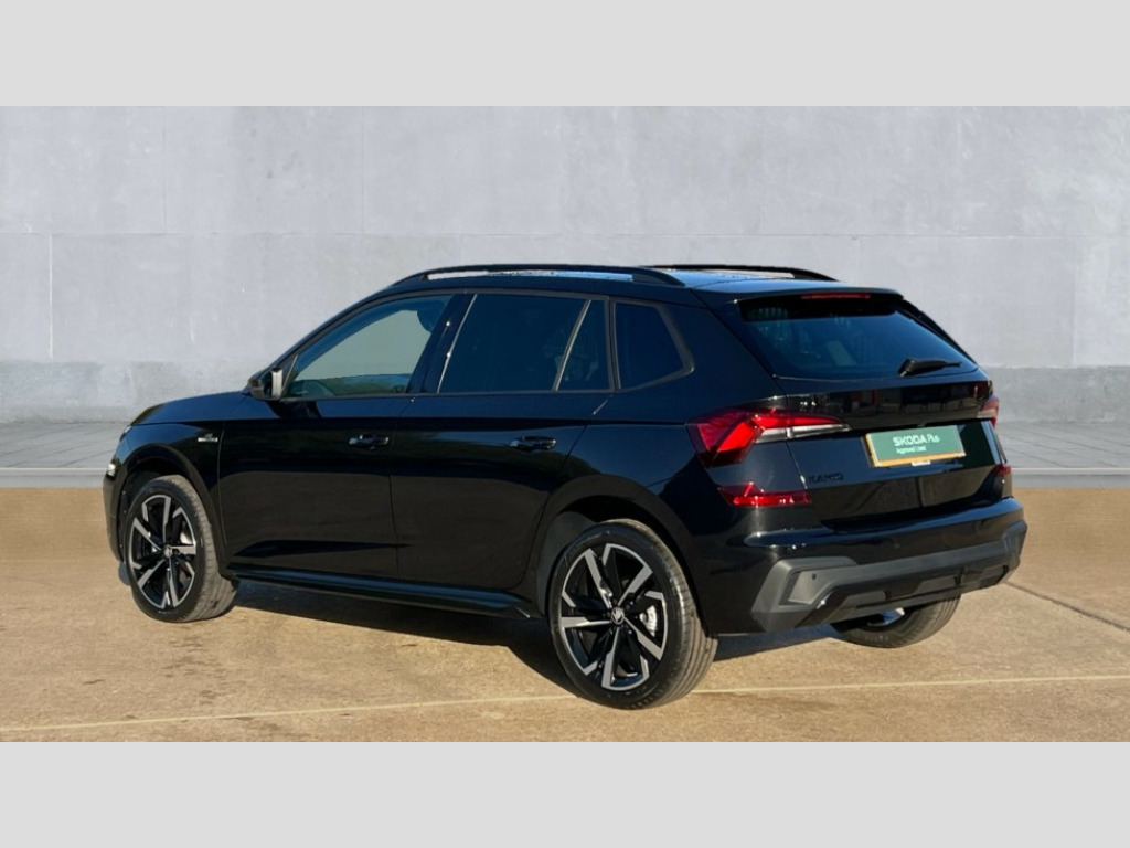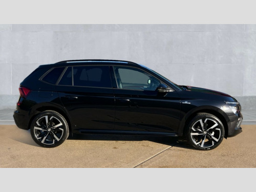 Skoda Kamiq 1.5 TSI Monte Carlo Edition 5dr DSG Advanced driver attention and drowsiness monitor, Bluetooth system, E-call, Front assist system, PAS, Rear parking sensors, Rear view camera, Service indicator, Speed limiter, Traffic sign recognition, Virtual cockpit with 10.25" display, Voice control system, Wireless smartlink, 4 USB C ports, 8 Speakers, 9.2" Skoda navigation display, DAB Digital radio, Auto dimming rear view mirror, Automatic headlight control with coming home and leaving home feature, Black door mirrors, Black radiator grille, Black rear diffuser, Black roof spoiler, Body colour bumpers, Body colour door handles, Boot lettering in black, Extended tailgate glass, Front and rear electric windows, Heated rear window, LED daytime running lights, LED high beam, LED low beam, LED third brake light, Light sensors, Monte carlo plaque, Panoramic sunroof with black roof rails, Privacy glass, Rear side wing doors, Rear wiper, Ticket holder inside windscreen, 12V socket in luggage compartment, 3 seat bench in 2nd row, Aluminium pedals, Ambient lighting in white/red, Art leather carbon decor inserts, Art leather carbon door inserts, Black roof lining, Cargo elements, Chrome inner door handles, Driver and passenger sun visors with vanity mirror, Dual zone climate control, Front and rear roof lights, Front centre armrest, Front head restraints, Glove compartment with illumination, Height adjustable driver seat, Height adjustable front passenger seat, Ice scraper, Inner circulation control with pollen filter, ISOFIX on front passenger seat, Isofix preparation for back seats, Leather gearknob and handbrake lever, Manual lumbar support for front seats, Monte Carlo cloth upholstery, Net package and top tether hooks in boot space, Net under rear shelf, Pocket on the back of both front seats include mobile phone pockets, Rake/reach adjustable steering wheel, Reading lights, Rear centre armrests, Red hotstamping, Single front passenger seat, Sports seats, Textile floor mats, Third rear headrest, Top tether for front passenger seat, Umbrella in driver's door, Light and view plus package - Kamiq, 3x3 point rear seatbelts, Airbags - driver and front passenger, Disc brakes, ESP, Extended and predictive pedestrian/cyclist protection, Front passenger airbag deactivation switch, Front side airbags with curtain airbags, Hill hold control, Manual leather parking brake, Manual rear child locks, One tone horn, Seatbelt reminder for driver an co-driver, Traction control, Tyre pressure monitor, Anti-theft alarm system with interior monitoring, backup horn, towing protection and remote central locking with SAFE system, Anti-theft wheel bolts, Electronic engine immobilizer, 18" Ursa black diamond cut alloy wheels
