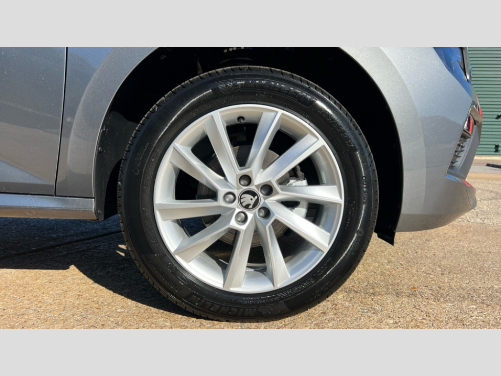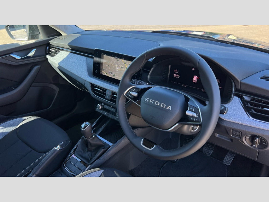 Skoda Kamiq 1.0 TSI 95 SE Edition 5dr Advanced driver attention and drowsiness monitor, Bluetooth system, E-call, Front assist system, PAS, Rear parking sensors, Rear view camera, Service indicator, Speed limiter, Traffic sign recognition, Virtual cockpit with 10.25" display, Wireless smartlink, 4 USB C ports, 8 Speakers, 9.2" Skoda navigation display, DAB Digital radio, Auto dimming rear view mirror, Automatic headlight control with coming home and leaving home feature, Black roof rails, Body colour bumpers, Body colour door mirrors and handles, Chrome grille surround, Front and rear electric windows, Full LED headlights, Heated rear window, LED brake lights, LED daytime running lights, LED front turning lights, LED high beam, LED low beam, LED third brake light, Rear LED fog light, Rear side wing doors, Rear wiper, Ticket holder inside windscreen, 12V socket in luggage compartment, 3 seat bench in 2nd row, Black hotstamping, Cargo elements, Chrome inner door handles, Driver and passenger sun visors with vanity mirror, Dual zone climate control, Front and rear roof lights, Front centre armrest, Front head restraints, Glove compartment with illumination, Height adjustable driver seat, Height adjustable front passenger seat, Ice scraper, Inner circulation control with pollen filter, ISOFIX on front passenger seat, Isofix preparation for back seats, Krepp recycled decor inserts, Leather gearknob and handbrake lever, Loft cloth upholstery, Manual lumbar support for front seats, Net package and top tether hooks in boot space, Net under rear shelf, Overhead glasses storage compartment, Pocket on the back of both front seats include mobile phone pockets, Rake/reach adjustable steering wheel, Reading lights, Satin black door inserts, Single front passenger seat, Textile floor mats, Third rear headrest, Top tether for front passenger seat, Umbrella in driver's door, 3x3 point rear seatbelts, Airbags - driver and front passenger, Disc brakes, ESP, Extended and predictive pedestrian/cyclist protection, Front passenger airbag deactivation switch, Front side airbags with curtain airbags, Hill hold control, Manual leather parking brake, Manual rear child locks, One tone horn, Seatbelt reminder for driver an co-driver, Traction control, Tyre pressure monitor, Anti-theft alarm system with interior monitoring, backup horn, towing protection and remote central locking with SAFE system, Anti-theft wheel bolts, Electronic engine immobilizer