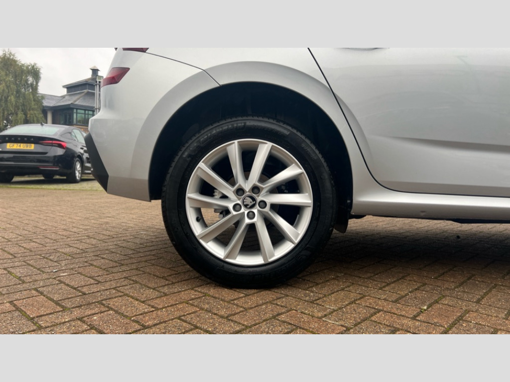 Skoda Kamiq 1.0 TSI 95 SE Edition 5dr Advanced driver attention and drowsiness monitor, Bluetooth system, E-call, Front assist system, PAS, Rear parking sensors, Rear view camera, Service indicator, Speed limiter, Traffic sign recognition, Virtual cockpit with 10.25" display, Wireless smartlink, 4 USB C ports, 8 Speakers, 9.2" Skoda navigation display, DAB Digital radio, Auto dimming rear view mirror, Automatic headlight control with coming home and leaving home feature, Black roof rails, Body colour bumpers, Body colour door mirrors and handles, Chrome grille surround, Front and rear electric windows, Full LED headlights, Heated rear window, LED brake lights, LED daytime running lights, LED front turning lights, LED high beam, LED low beam, LED third brake light, Rear LED fog light, Rear side wing doors, Rear wiper, Ticket holder inside windscreen, 12V socket in luggage compartment, 3 seat bench in 2nd row, Black hotstamping, Cargo elements, Chrome inner door handles, Driver and passenger sun visors with vanity mirror, Dual zone climate control, Front and rear roof lights, Front centre armrest, Front head restraints, Glove compartment with illumination, Height adjustable driver seat, Height adjustable front passenger seat, Ice scraper, Inner circulation control with pollen filter, ISOFIX on front passenger seat, Isofix preparation for back seats, Krepp recycled decor inserts, Leather gearknob and handbrake lever, Loft cloth upholstery, Manual lumbar support for front seats, Net package and top tether hooks in boot space, Net under rear shelf, Overhead glasses storage compartment, Pocket on the back of both front seats include mobile phone pockets, Rake/reach adjustable steering wheel, Reading lights, Satin black door inserts, Single front passenger seat, Textile floor mats, Third rear headrest, Top tether for front passenger seat, Umbrella in driver's door, 3x3 point rear seatbelts, Airbags - driver and front passenger, Disc brakes, ESP, Extended and predictive pedestrian/cyclist protection, Front passenger airbag deactivation switch, Front side airbags with curtain airbags, Hill hold control, Manual leather parking brake, Manual rear child locks, One tone horn, Seatbelt reminder for driver an co-driver, Traction control, Tyre pressure monitor, Anti-theft alarm system with interior monitoring, backup horn, towing protection and remote central locking with SAFE system, Anti-theft wheel bolts, Electronic engine immobilizer