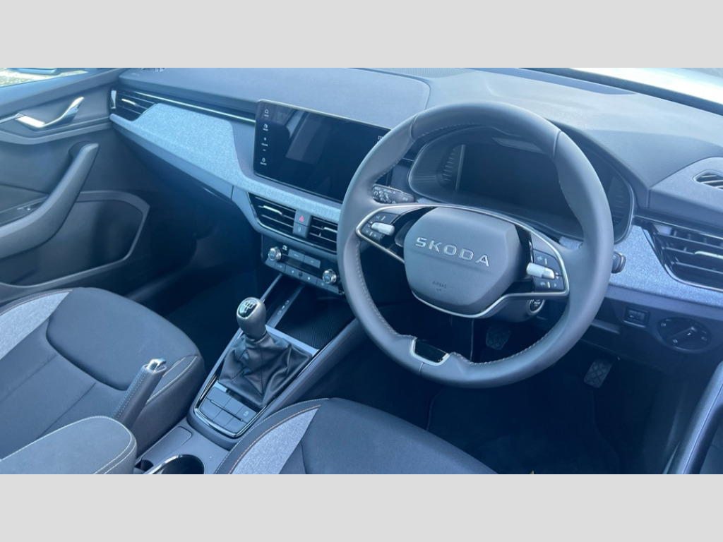 Skoda Kamiq 1.0 TSI 95 SE Edition 5dr Advanced driver attention and drowsiness monitor, Bluetooth system, E-call, Front assist system, PAS, Rear parking sensors, Rear view camera, Service indicator, Speed limiter, Traffic sign recognition, Virtual cockpit with 10.25" display, Wireless smartlink, 4 USB C ports, 8 Speakers, 9.2" Skoda navigation display, DAB Digital radio, Auto dimming rear view mirror, Automatic headlight control with coming home and leaving home feature, Black roof rails, Body colour bumpers, Body colour door mirrors and handles, Chrome grille surround, Front and rear electric windows, Full LED headlights, Heated rear window, LED brake lights, LED daytime running lights, LED front turning lights, LED high beam, LED low beam, LED third brake light, Rear LED fog light, Rear side wing doors, Rear wiper, Ticket holder inside windscreen, 12V socket in luggage compartment, 3 seat bench in 2nd row, Black hotstamping, Cargo elements, Chrome inner door handles, Driver and passenger sun visors with vanity mirror, Dual zone climate control, Front and rear roof lights, Front centre armrest, Front head restraints, Glove compartment with illumination, Height adjustable driver seat, Height adjustable front passenger seat, Ice scraper, Inner circulation control with pollen filter, ISOFIX on front passenger seat, Isofix preparation for back seats, Krepp recycled decor inserts, Leather gearknob and handbrake lever, Loft cloth upholstery, Manual lumbar support for front seats, Net package and top tether hooks in boot space, Net under rear shelf, Overhead glasses storage compartment, Pocket on the back of both front seats include mobile phone pockets, Rake/reach adjustable steering wheel, Reading lights, Satin black door inserts, Single front passenger seat, Textile floor mats, Third rear headrest, Top tether for front passenger seat, Umbrella in driver's door, 3x3 point rear seatbelts, Airbags - driver and front passenger, Disc brakes, ESP, Extended and predictive pedestrian/cyclist protection, Front passenger airbag deactivation switch, Front side airbags with curtain airbags, Hill hold control, Manual leather parking brake, Manual rear child locks, One tone horn, Seatbelt reminder for driver an co-driver, Traction control, Tyre pressure monitor, Anti-theft alarm system with interior monitoring, backup horn, towing protection and remote central locking with SAFE system, Anti-theft wheel bolts, Electronic engine immobilizer