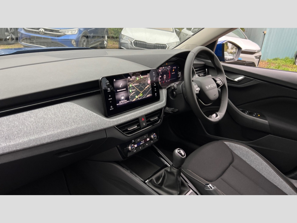 Skoda Kamiq 1.0 TSI 95 SE Edition 5dr Advanced driver attention and drowsiness monitor, Bluetooth system, E-call, Front assist system, PAS, Rear parking sensors, Rear view camera, Service indicator, Speed limiter, Traffic sign recognition, Virtual cockpit with 10.25" display, Wireless smartlink, 4 USB C ports, 8 Speakers, 9.2" Skoda navigation display, DAB Digital radio, Auto dimming rear view mirror, Automatic headlight control with coming home and leaving home feature, Black roof rails, Body colour bumpers, Body colour door mirrors and handles, Chrome grille surround, Front and rear electric windows, Full LED headlights, Heated rear window, LED brake lights, LED daytime running lights, LED front turning lights, LED high beam, LED low beam, LED third brake light, Rear LED fog light, Rear side wing doors, Rear wiper, Ticket holder inside windscreen, 12V socket in luggage compartment, 3 seat bench in 2nd row, Black hotstamping, Cargo elements, Chrome inner door handles, Driver and passenger sun visors with vanity mirror, Dual zone climate control, Front and rear roof lights, Front centre armrest, Front head restraints, Glove compartment with illumination, Height adjustable driver seat, Height adjustable front passenger seat, Ice scraper, Inner circulation control with pollen filter, ISOFIX on front passenger seat, Isofix preparation for back seats, Krepp recycled decor inserts, Leather gearknob and handbrake lever, Loft cloth upholstery, Manual lumbar support for front seats, Net package and top tether hooks in boot space, Net under rear shelf, Overhead glasses storage compartment, Pocket on the back of both front seats include mobile phone pockets, Rake/reach adjustable steering wheel, Reading lights, Satin black door inserts, Single front passenger seat, Textile floor mats, Third rear headrest, Top tether for front passenger seat, Umbrella in driver's door, 3x3 point rear seatbelts, Airbags - driver and front passenger, Disc brakes, ESP, Extended and predictive pedestrian/cyclist protection, Front passenger airbag deactivation switch, Front side airbags with curtain airbags, Hill hold control, Manual leather parking brake, Manual rear child locks, One tone horn, Seatbelt reminder for driver an co-driver, Traction control, Tyre pressure monitor, Anti-theft alarm system with interior monitoring, backup horn, towing protection and remote central locking with SAFE system, Anti-theft wheel bolts, Electronic engine immobilizer