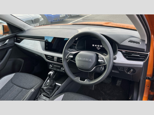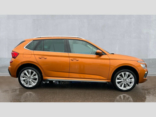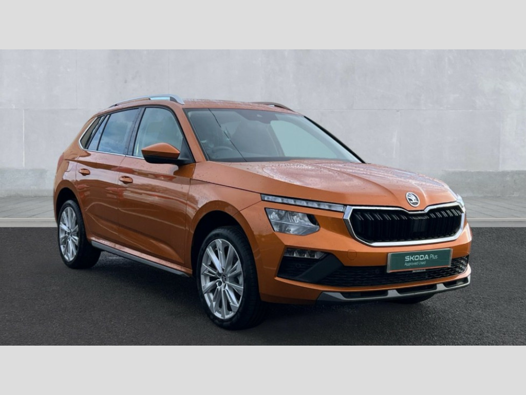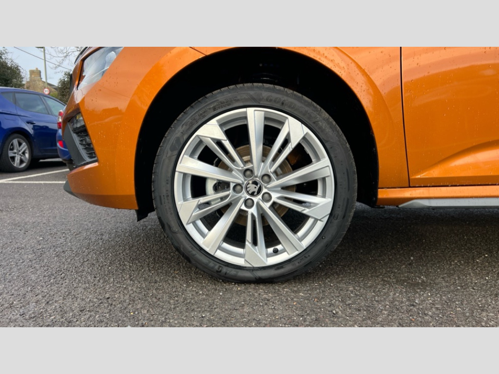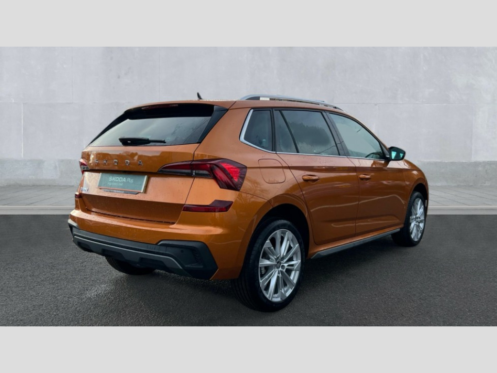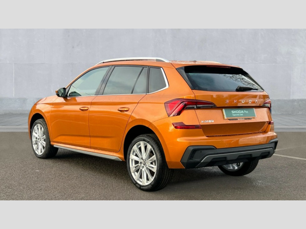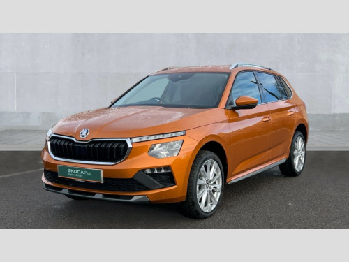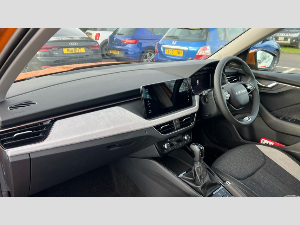 Skoda Kamiq 1.0 TSI SE L Edition 5dr DSG Advanced driver attention and drowsiness monitor, Bluetooth system, E-call, Front assist system, PAS, Rear parking sensors, Rear view camera, Service indicator, Speed limiter, Traffic sign recognition, Virtual cockpit with 10.25" display, Voice control system, Wireless smartlink, 4 USB C ports, 8 Speakers, 9.2" Skoda navigation display, DAB Digital radio, Auto dimming rear view mirror, Automatic headlight control with coming home and leaving home feature, Body colour bumpers, Body colour door mirrors and handles, Chrome grille surround, Chrome roof rails with chrome window surround, Front and rear electric windows, Heated rear window, LED daytime running lights, LED high beam, LED low beam, LED third brake light, Light sensors, Privacy glass, Rear side wing doors, Rear wiper, Ticket holder inside windscreen, 12V socket in luggage compartment, 3 seat bench in 2nd row, Accent black door inserts, Ambient lighting in white/red, Cargo elements, Chrome inner door handles, Copper hotstamping, Driver and passenger sun visors with vanity mirror, Dual zone climate control, Front and rear roof lights, Front centre armrest, Front head restraints, Glove compartment with illumination, Height adjustable driver seat, Height adjustable front passenger seat, Ice scraper, Inner circulation control with pollen filter, ISOFIX on front passenger seat, Isofix preparation for back seats, Leather gearknob and handbrake lever, Lodge cloth upholstery, Manual lumbar support for front seats, Net package and top tether hooks in boot space, Net under rear shelf, Overhead glasses storage compartment, Pocket on the back of both front seats include mobile phone pockets, Rake/reach adjustable steering wheel, Reading lights, Rear centre armrests, Single front passenger seat, Suedia grey decor inserts, Textile floor mats, Third rear headrest, Top tether for front passenger seat, Umbrella in driver's door, Convenience pack - Kamiq, 3x3 point rear seatbelts, Airbags - driver and front passenger, Disc brakes, ESP, Extended and predictive pedestrian/cyclist protection, Front passenger airbag deactivation switch, Front side airbags with curtain airbags, Hill hold control, Manual leather parking brake, Manual rear child locks, One tone horn, Seatbelt reminder for driver an co-driver, Traction control, Tyre pressure monitor, Anti-theft alarm system with interior monitoring, backup horn, towing protection and remote central locking with SAFE system, Anti-theft wheel bolts, Electronic engine immobilizer