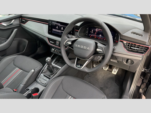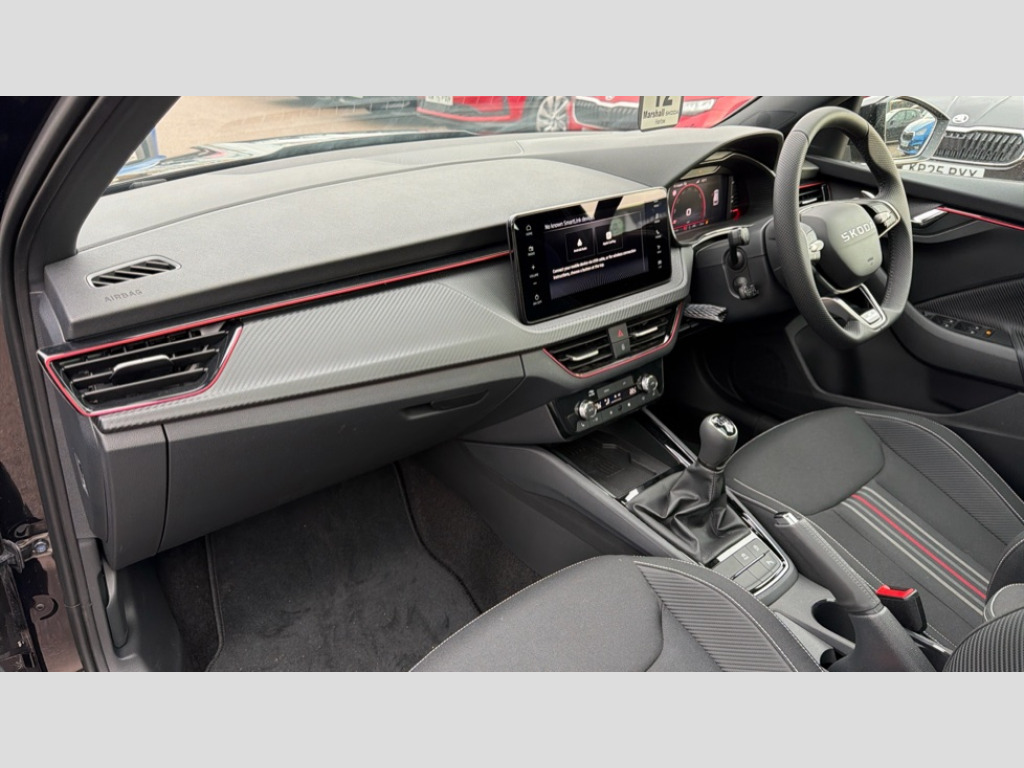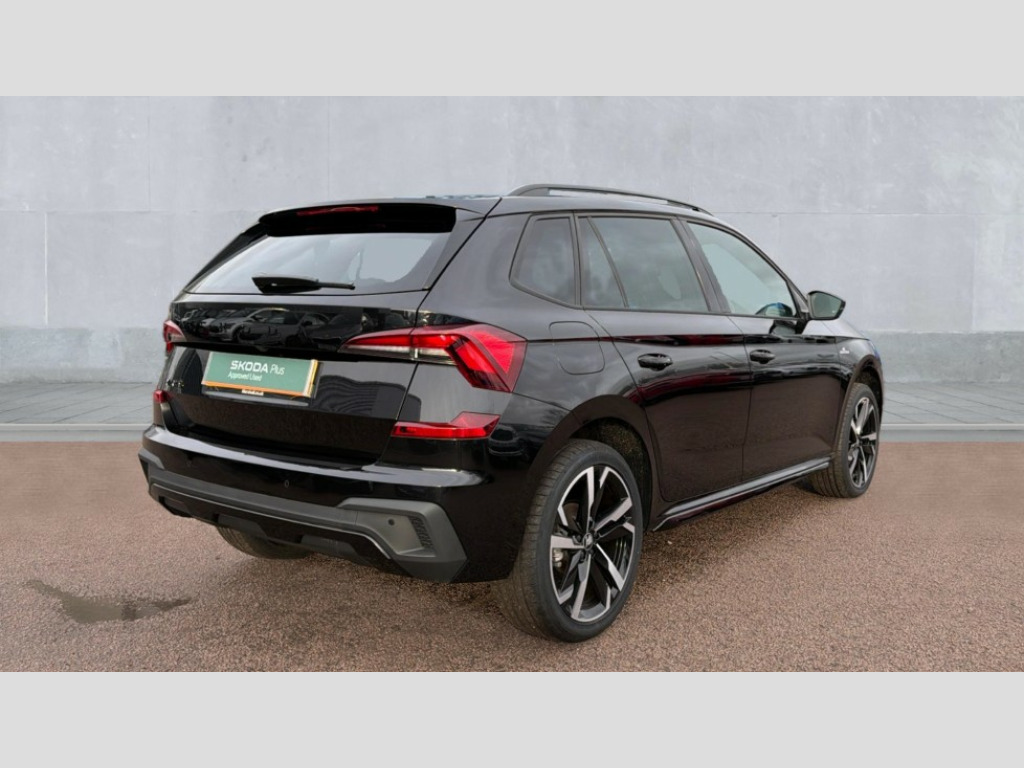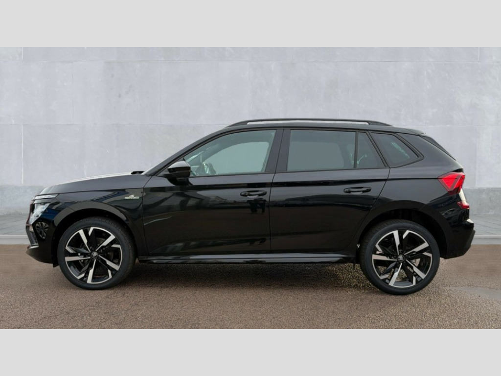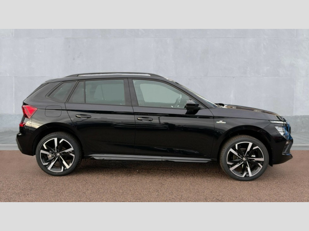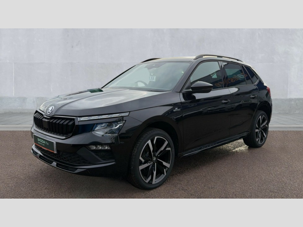 Skoda Kamiq 1.5 TSI Monte Carlo Edition 5dr Advanced driver attention and drowsiness monitor, Bluetooth system, E-call, Front assist system, PAS, Rear parking sensors, Rear view camera, Service indicator, Speed limiter, Traffic sign recognition, Virtual cockpit with 10.25" display, Voice control system, Wireless smartlink, 4 USB C ports, 8 Speakers, 9.2" Skoda navigation display, DAB Digital radio, Auto dimming rear view mirror, Automatic headlight control with coming home and leaving home feature, Black door mirrors, Black radiator grille, Black rear diffuser, Black roof spoiler, Body colour bumpers, Body colour door handles, Boot lettering in black, Extended tailgate glass, Fixed panoramic sunroof with black roof rails, Front and rear electric windows, Heated rear window, LED daytime running lights, LED high beam, LED low beam, LED third brake light, Light sensors, Monte carlo plaque, Privacy glass, Rear side wing doors, Rear wiper, Ticket holder inside windscreen, 12V socket in luggage compartment, 3 seat bench in 2nd row, Aluminium pedals, Ambient lighting in white/red, Art leather carbon decor inserts, Art leather carbon door inserts, Black roof lining, Cargo elements, Chrome inner door handles, Driver and passenger sun visors with vanity mirror, Dual zone climate control, Front and rear roof lights, Front centre armrest, Front head restraints, Glove compartment with illumination, Height adjustable driver seat, Height adjustable front passenger seat, Ice scraper, Inner circulation control with pollen filter, ISOFIX on front passenger seat, Isofix preparation for back seats, Leather gearknob and handbrake lever, Manual lumbar support for front seats, Monte Carlo cloth upholstery, Net package and top tether hooks in boot space, Net under rear shelf, Pocket on the back of both front seats include mobile phone pockets, Rake/reach adjustable steering wheel, Reading lights, Rear centre armrests, Red hotstamping, Single front passenger seat, Sports seats, Textile floor mats, Third rear headrest, Top tether for front passenger seat, Umbrella in driver's door, Light and view plus package - Kamiq, 3x3 point rear seatbelts, Airbags - driver and front passenger, Disc brakes, ESP, Extended and predictive pedestrian/cyclist protection, Front passenger airbag deactivation switch, Front side airbags with curtain airbags, Hill hold control, Manual leather parking brake, Manual rear child locks, One tone horn, Seatbelt reminder for driver an co-driver, Traction control, Tyre pressure monitor, Anti-theft alarm system with interior monitoring, backup horn, towing protection and remote central locking with SAFE system, Anti-theft wheel bolts, Electronic engine immobilizer, 18" Ursa black diamond cut alloy wheels