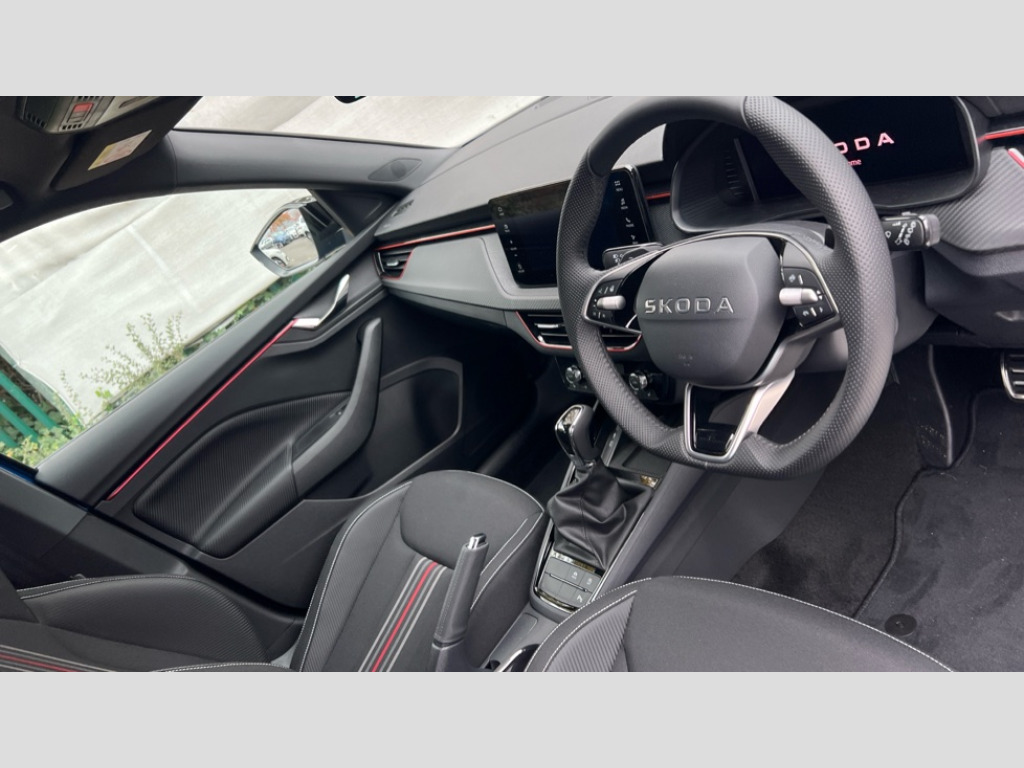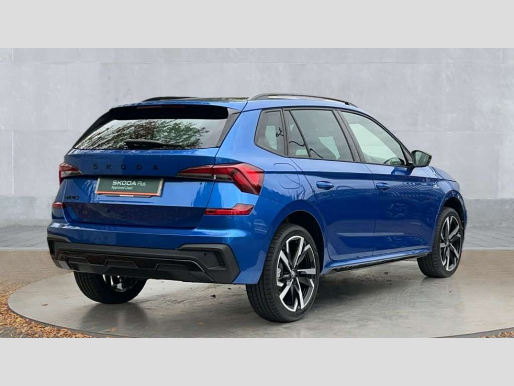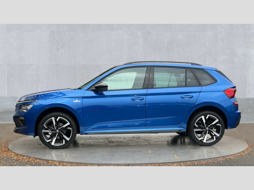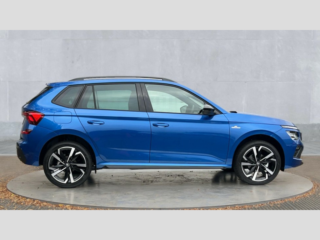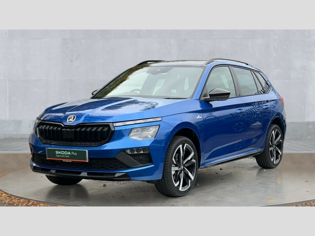 Skoda Kamiq 1.5 TSI Monte Carlo Edition 5dr DSG Advanced driver attention and drowsiness monitor, Bluetooth system, E-call, Front assist system, PAS, Rear parking sensors, Rear view camera, Service indicator, Speed limiter, Traffic sign recognition, Virtual cockpit with 10.25" display, Voice control system, Wireless smartlink, 4 USB C ports, 8 Speakers, 9.2" Skoda navigation display, DAB Digital radio, Auto dimming rear view mirror, Automatic headlight control with coming home and leaving home feature, Black door mirrors, Black radiator grille, Black rear diffuser, Black roof spoiler, Body colour bumpers, Body colour door handles, Boot lettering in black, Extended tailgate glass, Fixed panoramic sunroof with black roof rails, Front and rear electric windows, Heated rear window, LED daytime running lights, LED high beam, LED low beam, LED third brake light, Light sensors, Monte carlo plaque, Privacy glass, Rear side wing doors, Rear wiper, Ticket holder inside windscreen, 12V socket in luggage compartment, 3 seat bench in 2nd row, Aluminium pedals, Ambient lighting in white/red, Art leather carbon decor inserts, Art leather carbon door inserts, Black roof lining, Cargo elements, Chrome inner door handles, Driver and passenger sun visors with vanity mirror, Dual zone climate control, Front and rear roof lights, Front centre armrest, Front head restraints, Glove compartment with illumination, Height adjustable driver seat, Height adjustable front passenger seat, Ice scraper, Inner circulation control with pollen filter, ISOFIX on front passenger seat, Isofix preparation for back seats, Leather gearknob and handbrake lever, Manual lumbar support for front seats, Monte Carlo cloth upholstery, Net package and top tether hooks in boot space, Net under rear shelf, Pocket on the back of both front seats include mobile phone pockets, Rake/reach adjustable steering wheel, Reading lights, Rear centre armrests, Red hotstamping, Single front passenger seat, Sports seats, Textile floor mats, Third rear headrest, Top tether for front passenger seat, Umbrella in driver's door, Light and view plus package - Kamiq, 3x3 point rear seatbelts, Airbags - driver and front passenger, Disc brakes, ESP, Extended and predictive pedestrian/cyclist protection, Front passenger airbag deactivation switch, Front side airbags with curtain airbags, Hill hold control, Manual leather parking brake, Manual rear child locks, One tone horn, Seatbelt reminder for driver an co-driver, Traction control, Tyre pressure monitor, Anti-theft alarm system with interior monitoring, backup horn, towing protection and remote central locking with SAFE system, Anti-theft wheel bolts, Electronic engine immobilizer, 18" Ursa black diamond cut alloy wheels