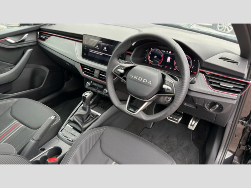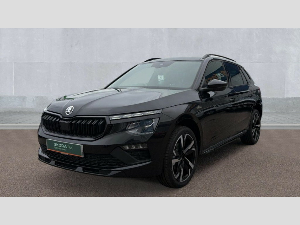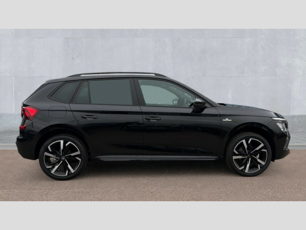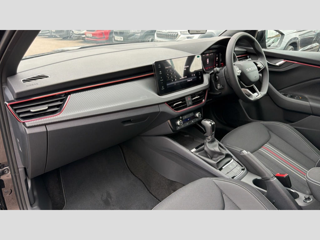 Skoda Kamiq 1.5 TSI Monte Carlo Edition 5dr DSG Advanced driver attention and drowsiness monitor, Bluetooth system, E-call, Front assist system, PAS, Rear parking sensors, Rear view camera, Service indicator, Speed limiter, Traffic sign recognition, Virtual cockpit with 10.25" display, Voice control system, Wireless smartlink, 4 USB C ports, 8 Speakers, 9.2" Skoda navigation display, DAB Digital radio, Auto dimming rear view mirror, Automatic headlight control with coming home and leaving home feature, Black door mirrors, Black radiator grille, Black rear diffuser, Black roof spoiler, Body colour bumpers, Body colour door handles, Boot lettering in black, Extended tailgate glass, Fixed panoramic sunroof with black roof rails, Front and rear electric windows, Heated rear window, LED daytime running lights, LED high beam, LED low beam, LED third brake light, Light sensors, Monte carlo plaque, Privacy glass, Rear side wing doors, Rear wiper, Ticket holder inside windscreen, 12V socket in luggage compartment, 3 seat bench in 2nd row, Aluminium pedals, Ambient lighting in white/red, Art leather carbon decor inserts, Art leather carbon door inserts, Black roof lining, Cargo elements, Chrome inner door handles, Driver and passenger sun visors with vanity mirror, Dual zone climate control, Front and rear roof lights, Front centre armrest, Front head restraints, Glove compartment with illumination, Height adjustable driver seat, Height adjustable front passenger seat, Ice scraper, Inner circulation control with pollen filter, ISOFIX on front passenger seat, Isofix preparation for back seats, Leather gearknob and handbrake lever, Manual lumbar support for front seats, Monte Carlo cloth upholstery, Net package and top tether hooks in boot space, Net under rear shelf, Pocket on the back of both front seats include mobile phone pockets, Rake/reach adjustable steering wheel, Reading lights, Rear centre armrests, Red hotstamping, Single front passenger seat, Sports seats, Textile floor mats, Third rear headrest, Top tether for front passenger seat, Umbrella in driver's door, Light and view plus package - Kamiq, 3x3 point rear seatbelts, Airbags - driver and front passenger, Disc brakes, ESP, Extended and predictive pedestrian/cyclist protection, Front passenger airbag deactivation switch, Front side airbags with curtain airbags, Hill hold control, Manual leather parking brake, Manual rear child locks, One tone horn, Seatbelt reminder for driver an co-driver, Traction control, Tyre pressure monitor, Anti-theft alarm system with interior monitoring, backup horn, towing protection and remote central locking with SAFE system, Anti-theft wheel bolts, Electronic engine immobilizer, 18" Ursa black diamond cut alloy wheels
