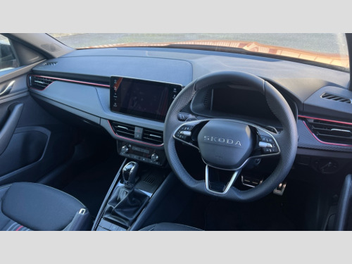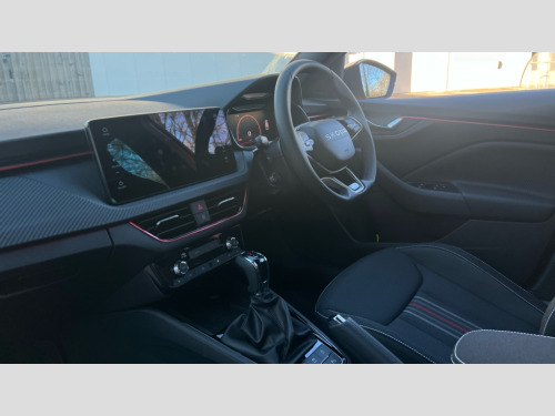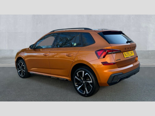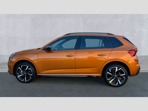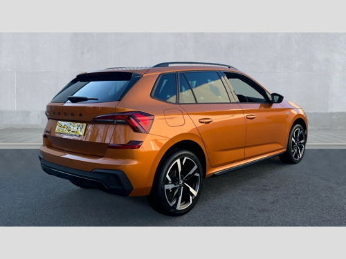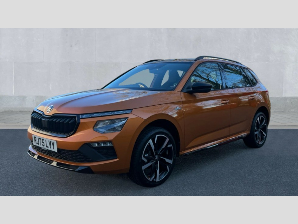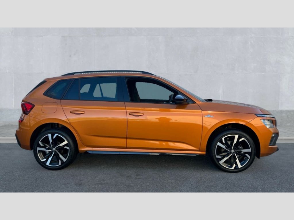Skoda Kamiq 1.5 TSI Monte Carlo Edition 5dr DSG Advanced driver attention and drowsiness monitor, Bluetooth system, E-call, Front assist system, PAS, Rear parking sensors, Rear view camera, Service indicator, Speed limiter, Traffic sign recognition, Virtual cockpit with 10.25" display, Voice control system, Wireless smartlink, 4 USB C ports, 8 Speakers, 9.2" Skoda navigation display, DAB Digital radio, Auto dimming rear view mirror, Automatic headlight control with coming home and leaving home feature, Black door mirrors, Black radiator grille, Black rear diffuser, Black roof spoiler, Body colour bumpers, Body colour door handles, Boot lettering in black, Extended tailgate glass, Fixed panoramic sunroof with black roof rails, Front and rear electric windows, Heated rear window, LED daytime running lights, LED high beam, LED low beam, LED third brake light, Light sensors, Monte carlo plaque, Privacy glass, Rear side wing doors, Rear wiper, Ticket holder inside windscreen, 12V socket in luggage compartment, 3 seat bench in 2nd row, Aluminium pedals, Ambient lighting in white/red, Art leather carbon decor inserts, Art leather carbon door inserts, Black roof lining, Cargo elements, Chrome inner door handles, Driver and passenger sun visors with vanity mirror, Dual zone climate control, Front and rear roof lights, Front centre armrest, Front head restraints, Glove compartment with illumination, Height adjustable driver seat, Height adjustable front passenger seat, Ice scraper, Inner circulation control with pollen filter, ISOFIX on front passenger seat, Isofix preparation for back seats, Leather gearknob and handbrake lever, Manual lumbar support for front seats, Monte Carlo cloth upholstery, Net package and top tether hooks in boot space, Net under rear shelf, Pocket on the back of both front seats include mobile phone pockets, Rake/reach adjustable steering wheel, Reading lights, Rear centre armrests, Red hotstamping, Single front passenger seat, Sports seats, Textile floor mats, Third rear headrest, Top tether for front passenger seat, Umbrella in driver's door, Light and view plus package - Kamiq, 3x3 point rear seatbelts, Airbags - driver and front passenger, Disc brakes, ESP, Extended and predictive pedestrian/cyclist protection, Front passenger airbag deactivation switch, Front side airbags with curtain airbags, Hill hold control, Manual leather parking brake, Manual rear child locks, One tone horn, Seatbelt reminder for driver an co-driver, Traction control, Tyre pressure monitor, Anti-theft alarm system with interior monitoring, backup horn, towing protection and remote central locking with SAFE system, Anti-theft wheel bolts, Electronic engine immobilizer, 18" Ursa black diamond cut alloy wheels