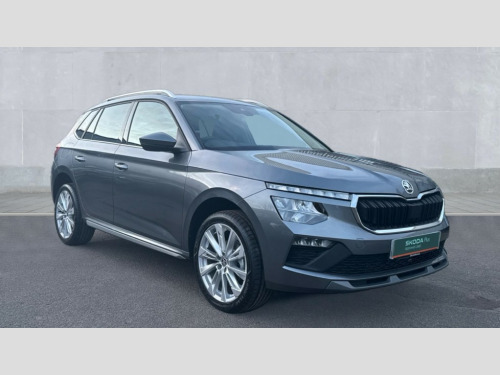 Skoda Kamiq 1.5 TSI SE L 5dr DSG Advanced driver attention and drowsiness monitor, Bluetooth system, E-call, Front assist system, PAS, Rear parking sensors, Service indicator, Speed limiter, Traffic sign recognition, Virtual cockpit with 10.25" display, Voice control system, Wireless smartlink, 4 USB C ports, 8 Speakers, 9.2" Skoda navigation display, DAB Digital radio, Auto dimming rear view mirror, Automatic headlight control with coming home and leaving home feature, Body colour bumpers, Body colour door mirrors and handles, Chrome grille surround, Chrome roof rails with chrome window surround, Front and rear electric windows, Heated rear window, LED daytime running lights, LED high beam, LED low beam, LED third brake light, Light sensors, Privacy glass, Rear side wing doors, Rear wiper, Ticket holder inside windscreen, 12V socket in luggage compartment, 3 seat bench in 2nd row, Accent black door inserts, Ambient lighting in white/red, Cargo elements, Chrome inner door handles, Copper hotstamping, Driver and passenger sun visors with vanity mirror, Dual zone climate control, Front and rear roof lights, Front centre armrest, Front head restraints, Glove compartment with illumination, Height adjustable driver seat, Height adjustable front passenger seat, Ice scraper, Inner circulation control with pollen filter, ISOFIX on front passenger seat, Isofix preparation for back seats, Leather gearknob and handbrake lever, Lodge cloth upholstery, Manual lumbar support for front seats, Net package and top tether hooks in boot space, Net under rear shelf, Overhead glasses storage compartment, Pocket on the back of both front seats include mobile phone pockets, Rake/reach adjustable steering wheel, Reading lights, Rear centre armrests, Single front passenger seat, Suedia grey decor inserts, Textile floor mats, Third rear headrest, Top tether for front passenger seat, Umbrella in driver's door, 3x3 point rear seatbelts, Airbags - driver and front passenger, Disc brakes, ESP, Extended and predictive pedestrian/cyclist protection, Front passenger airbag deactivation switch, Front side airbags with curtain airbags, Hill hold control, Manual leather parking brake, Manual rear child locks, One tone horn, Seatbelt reminder for driver an co-driver, Traction control, Tyre pressure monitor, Anti-theft alarm system with interior monitoring, backup horn, towing protection and remote central locking with SAFE system, Anti-theft wheel bolts, Electronic engine immobilizer