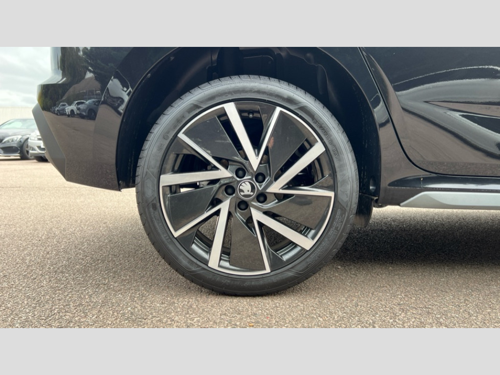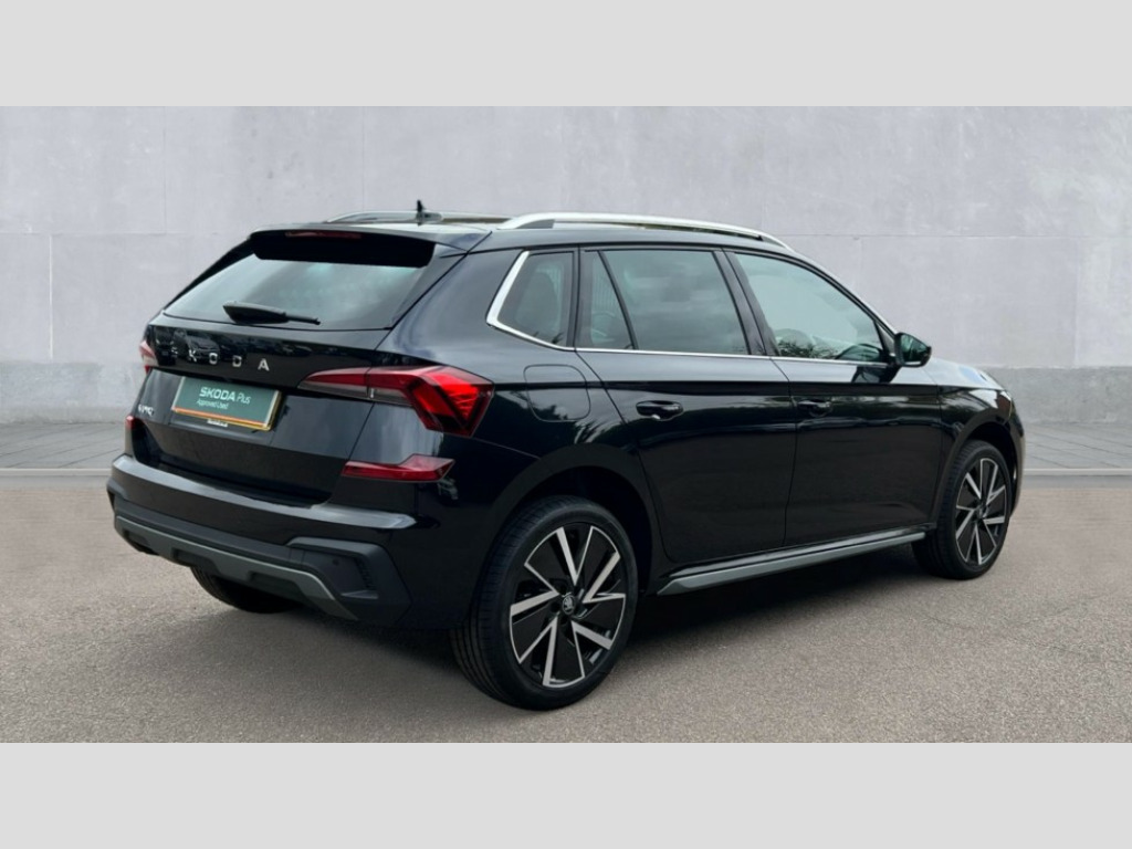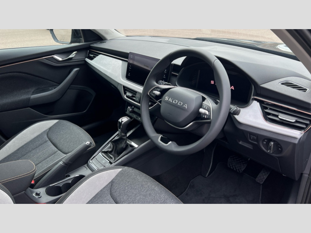 Skoda Kamiq 1.5 TSI SE L Edition 5dr DSG Advanced driver attention and drowsiness monitor, Bluetooth system, E-call, Front assist system, PAS, Rear parking sensors, Rear view camera, Service indicator, Speed limiter, Traffic sign recognition, Virtual cockpit with 10.25" display, Voice control system, Wireless smartlink, 4 USB C ports, 8 Speakers, 9.2" Skoda navigation display, DAB Digital radio, Auto dimming rear view mirror, Automatic headlight control with coming home and leaving home feature, Body colour bumpers, Body colour door mirrors and handles, Chrome grille surround, Chrome roof rails with chrome window surround, Front and rear electric windows, Heated rear window, LED daytime running lights, LED high beam, LED low beam, LED third brake light, Light sensors, Privacy glass, Rear side wing doors, Rear wiper, Ticket holder inside windscreen, 12V socket in luggage compartment, 3 seat bench in 2nd row, Accent black door inserts, Ambient lighting in white/red, Cargo elements, Chrome inner door handles, Copper hotstamping, Driver and passenger sun visors with vanity mirror, Dual zone climate control, Front and rear roof lights, Front centre armrest, Front head restraints, Glove compartment with illumination, Height adjustable driver seat, Height adjustable front passenger seat, Ice scraper, Inner circulation control with pollen filter, ISOFIX on front passenger seat, Isofix preparation for back seats, Leather gearknob and handbrake lever, Lodge cloth upholstery, Manual lumbar support for front seats, Net package and top tether hooks in boot space, Net under rear shelf, Overhead glasses storage compartment, Pocket on the back of both front seats include mobile phone pockets, Rake/reach adjustable steering wheel, Reading lights, Rear centre armrests, Single front passenger seat, Suedia grey decor inserts, Textile floor mats, Third rear headrest, Top tether for front passenger seat, Umbrella in driver's door, Convenience pack - Kamiq, 3x3 point rear seatbelts, Airbags - driver and front passenger, Disc brakes, ESP, Extended and predictive pedestrian/cyclist protection, Front passenger airbag deactivation switch, Front side airbags with curtain airbags, Hill hold control, Manual leather parking brake, Manual rear child locks, One tone horn, Seatbelt reminder for driver an co-driver, Traction control, Tyre pressure monitor, Anti-theft alarm system with interior monitoring, backup horn, towing protection and remote central locking with SAFE system, Anti-theft wheel bolts, Electronic engine immobilizer