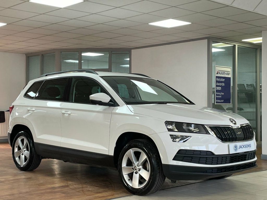 This 2019 Skoda Karoq TSI SE presents an exceptional opportunity with its remarkably low mileage of just 26,967 miles, making it stand out for its age. This Euro 6 compliant 1.0 litre petrol model boasts a clear vehicle history check, offering peace of mind to its next owner. The SE trim level ensures a well equipped and comfortable driving experience, complemented by a generous boot space perfect for families or those needing extra room for luggage and shopping. The Skoda Karoq TSI SE is a sensible choice for many reasons, offering excellent fuel economy of 45 miles per gallon, which is better than many similar vehicles. Its low CO2 emissions also contribute to its appeal, indicating a more environmentally conscious performance. Furthermore, its placement in a low insurance group means that running costs are kept to a minimum, making this Karoq a practical and economical option for everyday use. 12V Power Socket in Boot, 17in Alloy Wheels - Ratikon, 2 Reading Lights Front - For Driver and , 3 Point Rear Belts x3, 3 Spoke Leather Multifunction Steering W, 4 Foldable Roof Handles with Clothes Hoo, Aero Front Windscreen Wipers with Interm, Air Conditioning - Climate Control Dual , Airbags - Driver, Airbags - Front Passenger with Deactivat, Alarm with Interior Monitoring - Back Up, Automatic Door Unlocking Incase of Crash, Automatic Fuel Cut Off Incase of Crash, Black Roof Rails, Body Coloured Door Mirrors and Door Hand, Bolero Radio, Boot Package - 2 Folding Hooks and Nets, Bottle Holders in Door Panel in the Fron, Cargo Element in Luggage Compartment, Chrome Framed Air Vents, Chrome I
