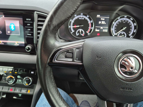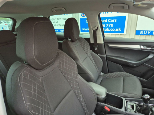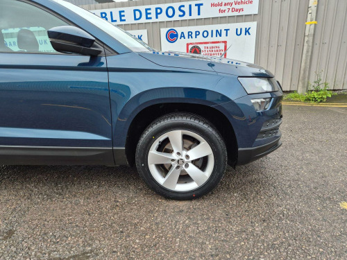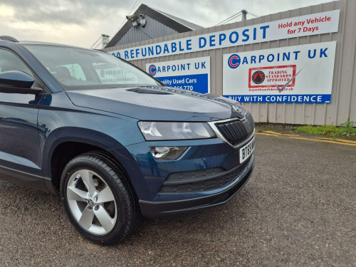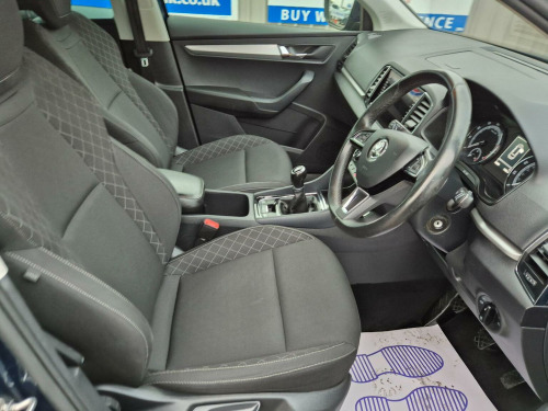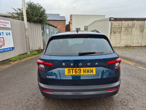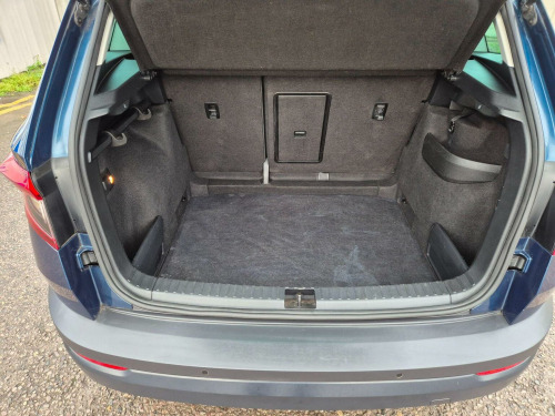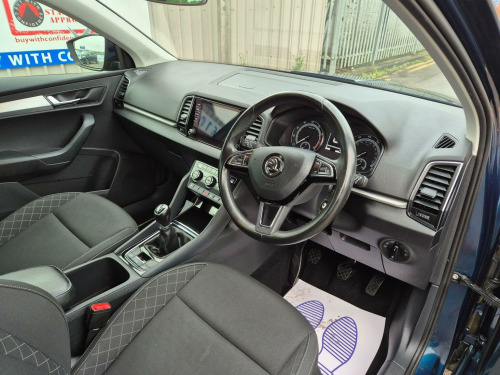 This 2019 Skoda Karoq TSI SE boasts a full service history, with its last service completed at 58,281 miles on 20th October 2025, and an MOT valid until October 2026, offering peace of mind for its next owner. This Euro 6 compliant 1.0 litre petrol model comes in the SE trim, featuring rear parking sensors for easier manoeuvring, dual zone climate control for personalised comfort, and a DAB digital radio with Bluetooth connectivity for your entertainment needs. Automatic headlights and a light and rain sensor with an auto dimming rear view mirror add to the convenience of this well maintained vehicle. The Skoda Karoq TSI SE is designed to be an economical choice, offering an impressive fuel economy of 45 miles per gallon and low CO2 emissions, making it a more environmentally friendly option. Its large boot space provides ample room for shopping or luggage, demonstrating its practicality for everyday use and longer journeys. Furthermore, this model falls into a low insurance group, which can help to reduce your running costs, indicating it is a more affordable option compared to similar vehicles.
