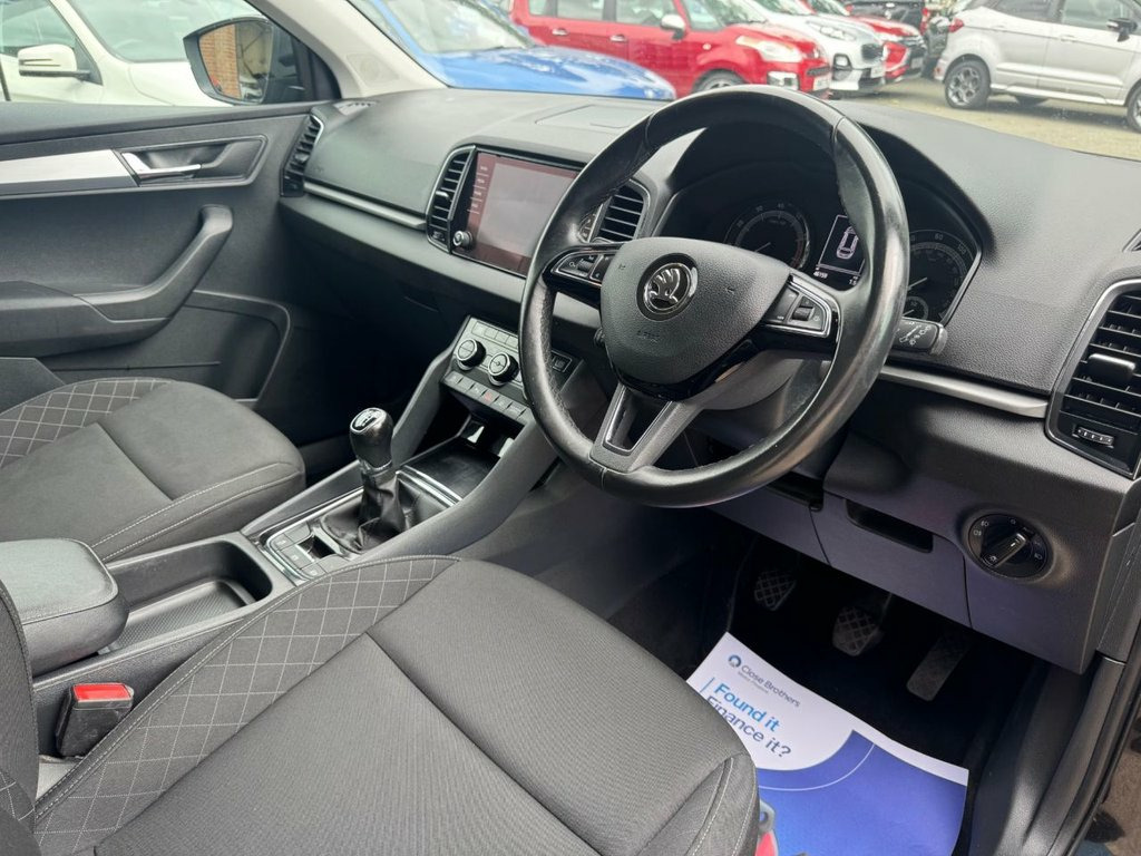 Škoda Karoq 1.0 TSI SE Nav Plus SUV 5dr Petrol Manual Euro 6 (s/s) (115 PS) with just one former keeper, presented in excellent condition and offering the perfect mix of style, practicality and efficiency; this well-equipped model features parking sensors, SmartLink+ (Apple CarPlay/Android Auto), dual-zone climate control, cruise control, and Škoda's versatile VarioFlex seating system, while the punchy yet economical 1.0 TSI petrol engine (Euro 6 / ULEZ compliant) delivers smooth, reliable performance—making it an ideal family-friendly SUV with low running costs and proven Škoda quality. 12V Power Socket in Boot, 16in Alloy Wheels - Castor, 2 Reading Lights Front - For Driver and , 3 Point Rear Belts x3, 3 Spoke Leather Sports Multi-Function St, 4 Foldable Roof Handles with Clothes Hoo, ACC - Adaptive Cruise Control, Aero Front Windscreen Wipers with Interm, Air Conditioning - Climate Control Dual , Airbags - Driver, Airbags - Front Passenger with Deactivat, Alarm with Interior Monitoring - Back Up, Amundsen Satellite Navigation with 8in T, Automatic Door Unlocking Incase of Crash, Automatic Fuel Cut Off Incase of Crash, Black Roof Rails, Body Coloured Door Mirrors and Door Hand, Bolero Radio, Boot Package - 2 Folding Hooks and Nets, Bottle Holders in Door Panel in the Fron,