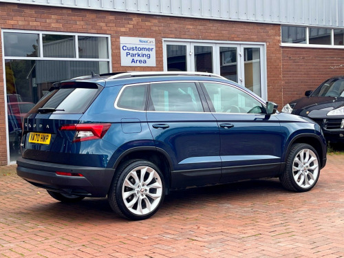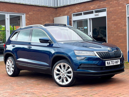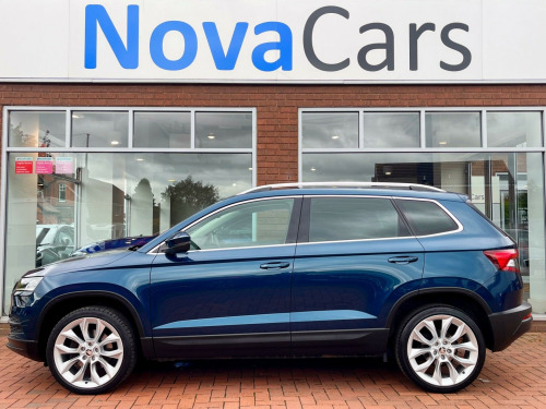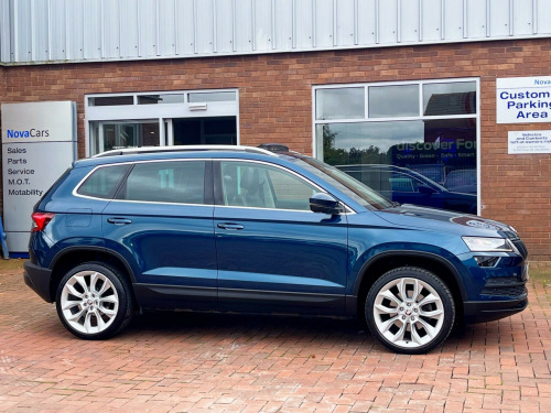 Here at NovaCars we are proud to present this stunning 1 Owner Skoda Karoq 1.5 TSI ACT Edition DSG Euro 6 (s/s) 5dr finished in Premium Paint Option Petrol Blue Metallic with contrasting Full Black Leather interior. What a Fantastic Example this Karoq is, not only is it presented in Outstanding Condition Throughout, it also comes with the benefit of Full Service History, having clearly been cherished by its 1 and only owner. In addition to this, the spec on this Skoda is brilliant, some of the features include Panoramic Sliding Sunroof, Heated Front Seats, Apple CarPlay/Android Auto, Reversing Camera, Bluetooth Interface, Electrically Operated Drivers Seat with Memory Function, Cruise Control with Speed Limiter, LED Interior Light Package and SKODA Welcome Light, Front and Rear Parking Sensors, Lane Assist and Blind Spot Detection, Light Assistant, Rear Privacy Glass, Light and Rain Sensor with Auto-Dimming Rear View Mirror, Dual-Zone Climate Control, Electric Powered Tailgate and Much More.Competitive finance available. Extended warranties available up to 3 years on all our vehicles. We are currently operating on an appointment-only basis and offer a Click&Collect/Delivery service where required. Our dedicated sales team are ready and waiting to take your enquiry, so if you are interested please get in touch on 01952 813388, or simply send us a message using the chat feature on this page. We are also happy to offer a live video viewing, where we can show you around the car as if you were here on site looking at it, for more information please get in touch.. 12V Power Socket in Boot, 19in Alloy Wheels - Crater Silver, 2 Reading Lights Front - For Driver and Passenger, 3 Spoke Leather Multifunction Steering Wheel, 4 Foldable Roof Handles with Clothes Hooks in Rear, Aero Front Windscreen Wipers with Intermitted Function, Air Conditioning - Climate Control Dual Zone, Airbags - Driver, Airbags - Front Passenger with Deactivation, Alarm with Interior Monitoring - Back Up Horn - Tilt Sensor and SAFE Function, Anti-Theft Locking Wheel Bolts, Automatic Door Unlocking Incase of Crash, Automatic Fuel Cut Off Incase of Crash, Body Coloured Door Mirrors and Door Handles, Bolero Radio, Boot Package - 2 Folding Hooks and Nets, Bottle Holders in Door Panel in the Front - 1.5 Litre Bottle - Driver and Passenger Door Panels, Cargo Element in Luggage Compartment, Chrome Framed Air Vents, Chrome Interior Door Handles, Chrome Package Outside Aluminium Bar Around the Windows, Chrome Roof Rails and Chrome Package, Colour Multifunction Trip Computer, Columbus Satellite Navigation with 9.2in Touchscreen Display - Integrated Wifi and Gesture Control, Cruise Control with Speed Limiter, DAB Digital Radio and Bluetooth, Drive Mode Selection, Driver Fatigue Sensor, ESC Electronic Stability Control incl ABS Anti Lock Braking System, Electric Front and Rear Windows with Child Proof Lock, Electric Window Control Buttons in Black, Electrically Operated Boot Door, Electrically Operated Drivers Seat with Memory Function, Electronic Engine Immobiliser, Electronic Parking Brake with Auto Hold Function, Emergency Brake Signal, Foldable Hooks in the Boot, Folding Tables on Rear of Front Seats, Front - Head - Knee - Curtain - Front Side Airbags, Front Assist Radar, Front Centre Armrest with Storage Compartment - Rear Air Vents and 12v Socket, Full LED Headlights with AFS and LED Daytime Running Lights, Glovebox - Illuminated and Cooled, Headlights - Automatic Activation, Headlights - Washers, Heated Front Seats, Heated Rear Windscreen, Height Adjustable Driver and Front Passenger Seat, Height Adjustable Front Three-Point Seat Belts with Tensioners, ISOFIX Child Seat Preparation - Outer Rear, Ice Scraper, Illumination of Luggage Compartment, KESSY - Keyless Entry and Start System with SAFE System, LED Interior Light Package and SKODA Welcome Light, Lane Assist and Blind Spot Detection, Light Assistant, Light and Rain Sensor with Auto-Dimming Rear View Mirror, Luggage Compartment - Retractable Parcel Shelf, Net Programme in Boot, Non Smokers Package, Panoramic Sunroof, Parking Sensors - Front and Rear, Pedestrian Monitor, Pen Holder, Pollen Filter, Power Steering, Privacy Glass, Reading Lights - Rear, Rear Boot Cover, Rear Lights - LED, Rear View Camera, Remote Central Locking - with 2 Keys, Removable LED Torch in Boot, Safety Reflectors on Front Doors, Safety Vest Holder, Seat Belt Reminder for all Seats, Seats - Varioflex, SmartLink Plus, Storage Box in Upper Central Dashboard - Closed, Storage Compartment Below the Passenger Seat, Storage on Wheel Cover, Sun Visors with Illuminated Vanity Mirror, TPMS - Tyre Pressure Monitoring System, Textile Floor Mats, Third Brake Light, Three Rear Head Rests, Three-Point Seat Belts - Rear, Traffic Sign Recognition, Two Tone Horn, Tyre Pressure Display, Tyre Repair Kit, Umbrella Under Front Passenger Seat, Leather - Black, Heated Windscreen and Heated Washer Nozzles, Personalisation of Drive Mode Selection, Care Connect 3 Years and Infotainment Online - 1 Year, Scuff Plates in Door Sills. Full dealership history
