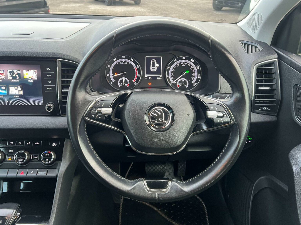 This 2020 Skoda Karoq TSI SE boasts a full dealership service history, offering peace of mind for its next owner. This stylish SUV features a 1.5 litre Euro 6 compliant petrol engine, delivering a responsive 0-60mph time of just 8.7 seconds. Inside, youll find a host of convenient features including Park Assist and rear parking sensors to make manoeuvring effortless. The Light and Rain Sensor automatically activates the headlights and adjusts the rear view mirror, while DAB digital radio and Bluetooth connectivity keep you entertained and connected on every journey. The Skoda Karoq TSI SE is designed for practicality and efficiency, achieving an impressive fuel economy of 45 miles per gallon. Its low insurance group rating further enhances its appeal as an economical choice. Youll also appreciate the generous boot space, perfect for families or those who need extra room for luggage or shopping. These highlights demonstrate how this Karoq offers a superior driving experience and value compared to other vehicles in its class.