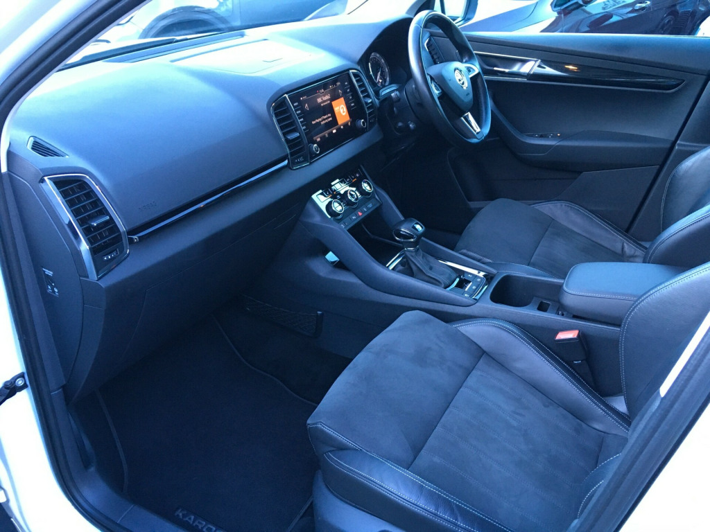 Cuckfield motor Company are proud to offer for sale this stunning Skoda Karoq SE LTSI Automatic. This car looks great in white and has a FULL SKODA SERVICE HISTORY and a huge spec including CARPLAY and ANDROID AUTO---Satellite navigation---Keyless entry and Go---Front and rear parking sensors---Heated seats---Electric folding mirrors---Bluetooth telephone and audio streaming---DAB radio---USB---Auto headlights---18'' alloy wheels---Adaptive cruise control ans more.Every car we offer comes with a comprehensive provenance check certificate, Minimum 6 month warranty and new MOT and service where applicable. All part exchanges welcome.We offer extremely competitive finance packages to help you fund your new car.Cuckfield Motor Company Ltd is a family run business FCA approved dealer established for over 20 years, With 30 years experience in the motor trade.We are located in the village of Cuckfield just off the A23, 15 minutes from Gatwick airport and only 5 minutes from Haywards Heath train station.Please contact us via phone/email to view this car today. email us on: salescmc-cars.co.uk01444 414129, artlink plus, electric front and rear windows with child proof lock, seats - split folding rear - 60-40, isofix child seat preparation - outer rear, remote central locking - with 2 keys, tpms - tyre pressure monitoring system, 18'' alloy wheels, adaptive cruise control, android auto, bluetooth phone & audio, carplay, dab radio, electric folding mirrors, front & rear parking sensors, heated seats, keyless entry & go , leather & alcantara upholstery, paddle shift, satellite navigation, usb, full skoda service history