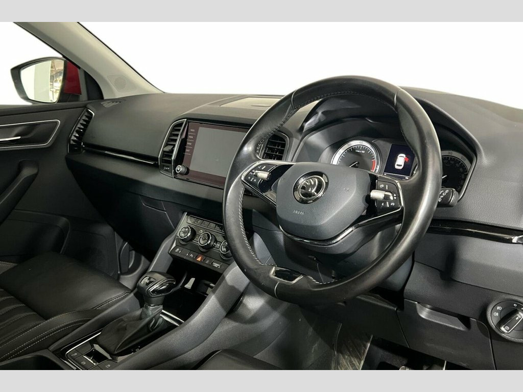 This 2021 Skoda Karoq TSI SE L boasts a clear vehicle history, offering you peace of mind. This Euro 6 compliant, 1.5 litre petrol model comes with an MOT valid until May 2026, ensuring its roadworthiness for the foreseeable future. The SE L trim level includes convenient features such as a rear view camera with parking assistance, heated front seats for those colder mornings, and the KESSY keyless entry and start system with SAFE system. You'll also appreciate the light and rain sensor which automatically controls the headlights and includes an auto dimming rear view mirror, enhancing your driving experience. The Skoda Karoq TSI SE L offers several advantages that set it apart. Its acceleration from 0 to 60mph in just 8.5 seconds demonstrates its responsive performance. Furthermore, this model benefits from a low insurance group, which can help to reduce your running costs. Practicality is also a strong point, with a large boot space providing ample room for luggage, shopping, or sports equipment. These highlights combine to make this Karoq a well rounded and appealing choice. 12V Power Socket in Boot, 18in Alloy Wheels - Braga, 2 Reading Lights Front - For Driver and , 2-Spoke Leather Multifunction Steering W, 4 Foldable Roof Handles with Clothes Hoo, Aero Front Windscreen Wipers with Interm, Air Conditioning - Climate Control Dual , Airbags - Driver, Alarm with Interior Monitoring - Back Up, Amundsen Touchscreen Satellite Navigatio, Anti-Theft Locking Wheel Bolts, Automatic Door Unlocking Incase of Crash, Automatic Fuel Cut Off Incase of Crash, Automatic Headlight Control, Body Coloured Door Mirrors and Door Hand, Bolero Radio, Boot Package - 2 Folding Hooks and Nets, Bottle Holders in Door Panel in the Fron, Care Connect - eCall, Care Connect - Proactive Servic