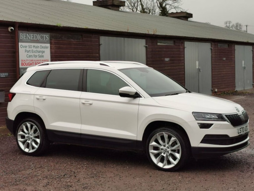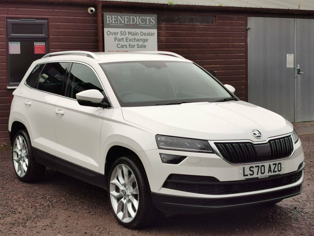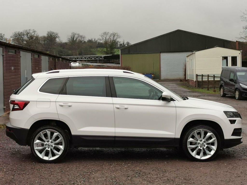 Presenting this superb 2020 Skoda Karoq SE L 1.5 Petrol Automatic in stylish Candy White. With just 37,200 miles on the clock, this well-maintained and spacious SUV is ready to deliver years of comfortable and practical motoring. It comes with a record of four professional services, the most recent carried out in August 2025 at 34,811 miles, and benefits from a long MOT valid until December 2026. Plus, it is fully ULEZ and CAZ compliant, ensuring trouble-free driving in city centres. Being the high-specification SE L model means you are treated to an extensive list of desirable features. These include 19-inch alloy wheels, front and rear parking sensors with a rear camera, and heated seats. The cabin offers automatic dual-zone climate control, a touchscreen infotainment system with satellite navigation, DAB radio, and Bluetooth. For effortless driving, it also boasts cruise control, a multi-function steering wheel, keyless start, and automatic headlights. We are ready to help you drive away in this superb Karoq today. It is supplied with two sets of keys and we offer optional extras like Autoglym Lifeshine paint protection and nationwide delivery for your convenience. To make ownership even easier, we provide competitive finance packages with rates from just 9.9% APR. For complete peace of mind, we also offer excellent value RAC extended warranties, including a 12-month policy for £599 or a comprehensive 24-month policy for £899 which includes 12 months of compl 12V Power Socket in Boot, 2 Reading Lights Front - For Driver and , 2-Spoke Leather Multifunction Steering W, 4 Foldable Roof Handles with Clothes Hoo, Aero Front Windscreen Wipers with Interm, Air Conditioning - Climate Control Dual , Airbags - Driver, Alarm with Interior Monitoring - Back Up, Amundsen Touchscreen Satellite Navigatio, Anti-Theft Locking Wheel Bolts, Automatic Door Unlocking Incase of Crash, Automatic Fuel Cut Off Incase of Crash, Automatic Headlight Control, Body Coloured Door Mirrors and Door Hand, Bolero Radio, Boot Package - 2 Folding Hooks and Nets, Bottle Holders in Door Panel in the Fron, Care Connect - eCall, Care Connect - Remote Access - 1 Year, Cargo Element in Bo