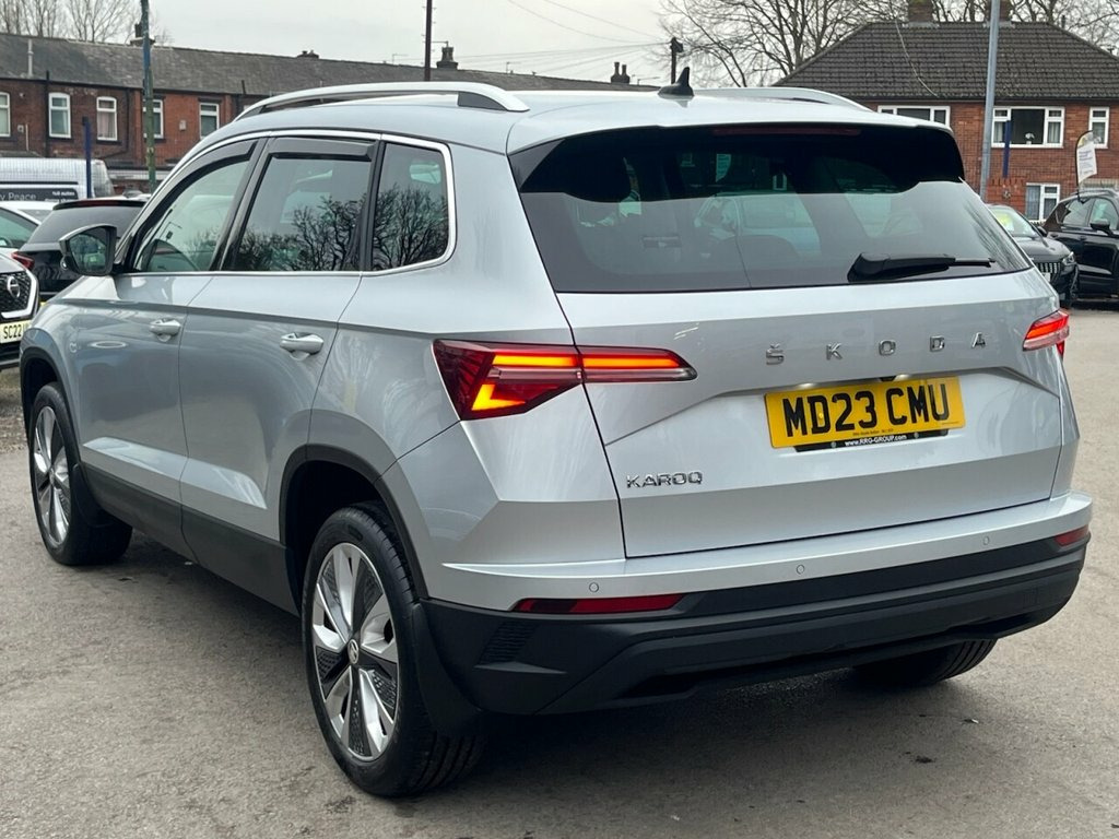 This 2023 Skoda Karoq TSI SE L presents an exceptional opportunity with its remarkably low mileage of just 13,500 miles, a testament to its single owner and careful use. This Euro 6 compliant, 1.5 litre petrol model offers a compelling blend of practicality and efficiency, boasting an impressive fuel economy of 46 miles per gallon. The SE L trim ensures a well appointed interior, while the generous boot space provides ample room for all your needs, making it a versatile choice for families and adventurers alike. The Skoda Karoq TSI SE L stands out with its strong performance, achieving 0 to 60 miles per hour in a swift 8.7 seconds, demonstrating its capable 1.5 litre engine. Furthermore, its low CO2 emissions highlight its environmental consideration, making it a more responsible choice. These key figures, combined with its excellent fuel economy and spacious practicality, position this particular Karoq as a superior option compared to many other vehicles in its class. 12V Power Socket in Boot, 18in Alloy Wheels - Miran - Black, 2 Reading Lights Front - For Driver and , 2-Spoke Leather Heated Multi-Function St, 4 Foldable Roof Handles with Clothes Hoo, 8 Speakers, 8in Digital Dashboard Display, Aero Front Windscreen Wipers with Interm, Air Conditioning - Climate Control Dual , Airbags - Driver, Alarm with Interior Monitoring - Back Up, Amundsen Touchscreen Satellite Navigatio, Anti-Theft Locking Wheel Bolts, Automatic Door Unlocking Incase of Crash, Automatic Fuel Cut Off Incase of Crash, Body Coloured Door Mirrors and Door Hand, Boot Package - Sigma Quicks Spacers - 2 , Bottle Holders in Door Panel in the Fron, Breakdown and Tool Kit, Brilliant Silver, Ca
