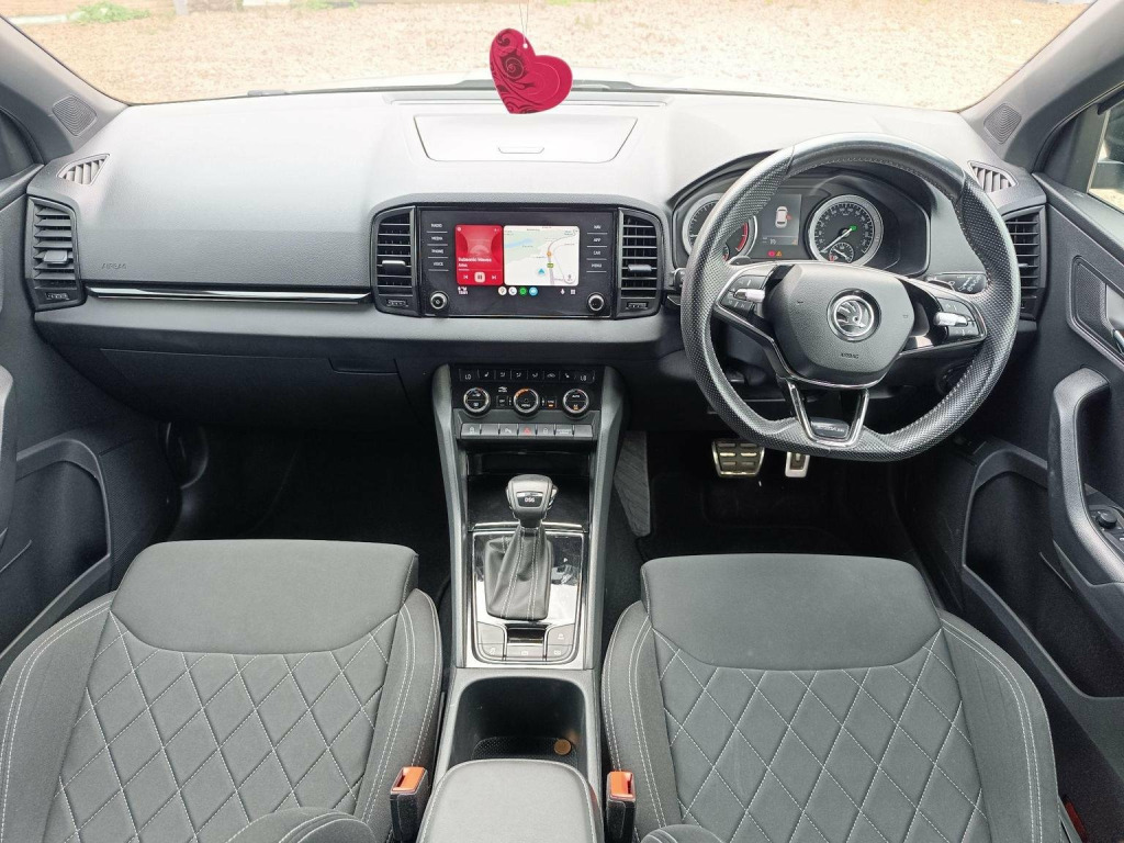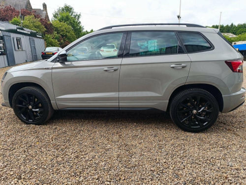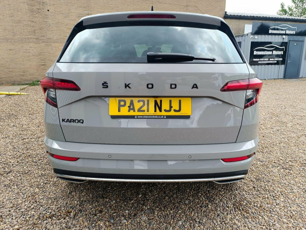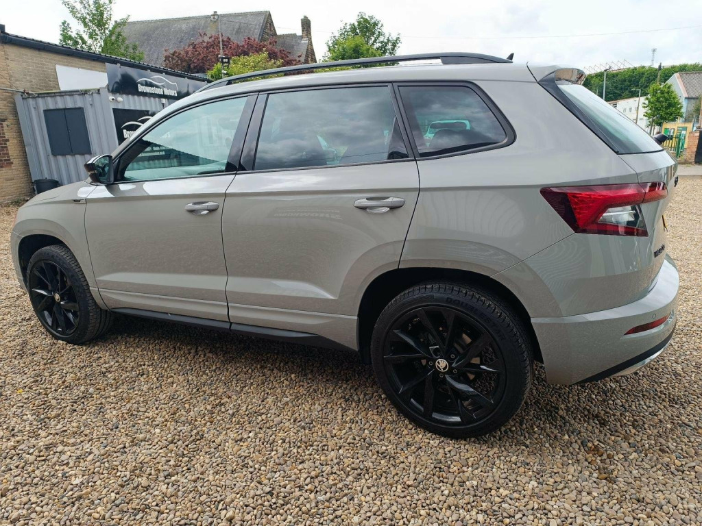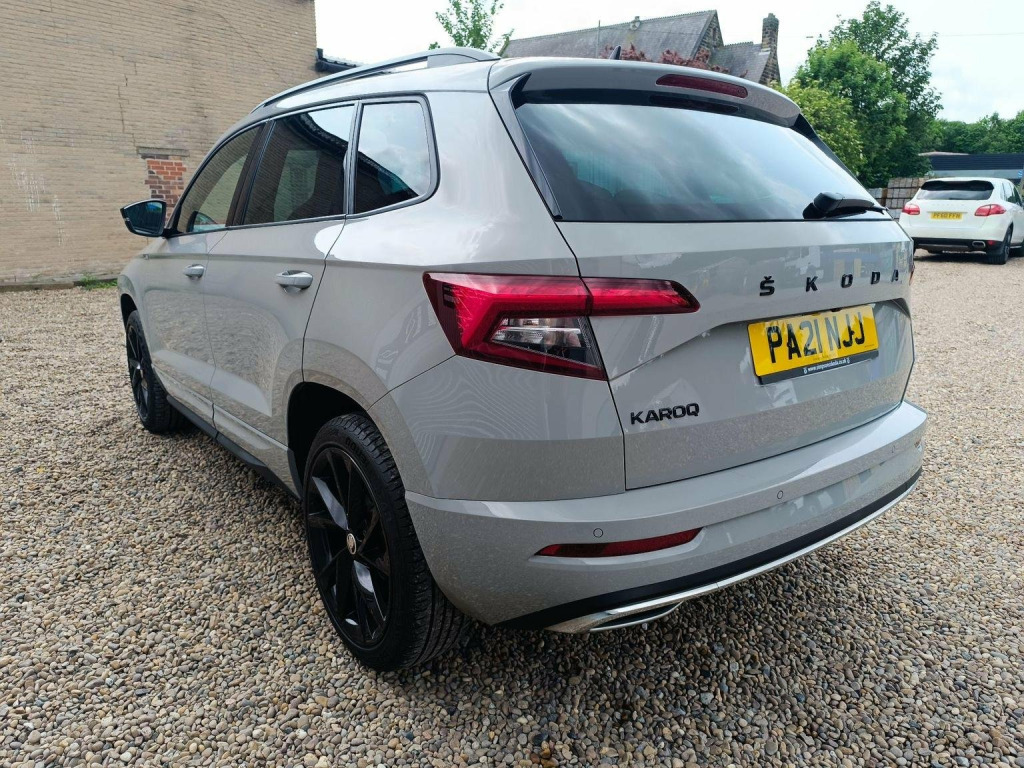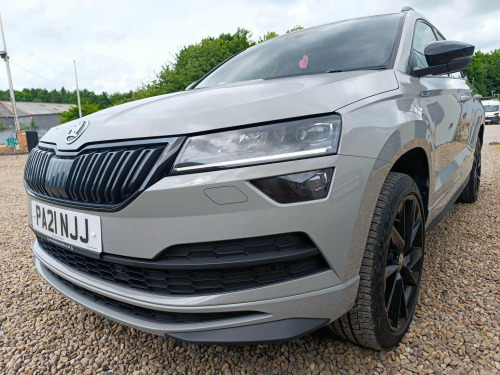 The Skoda Karoq TSI SportLine, registered in 2021, is a stylish petrol car with a 1.5-litre engine and Euro 6 emission class. The SportLine trim adds a sporty edge to this practical vehicle. It boasts a full dealership service history, with the last service performed on 7th March 2025 at 104,677 miles. For added peace of mind, it comes with a 12-month warranty and an MOT valid until March 2026. Enjoy premium features such as heated front seats and a heated rear windscreen, perfect for those chilly mornings. The panoramic sunroof brings an abundance of natural light into the cabin, while the KESSY keyless entry and start system adds a touch of modern convenience. Dual-zone climate control ensures optimal comfort for both driver and passengers, Immaculate Condition. This Karoq stands out with its impressive fuel economy of 44 mpg, saving you money at the pump compared to similar vehicles. The generous boot space of 521 litres offers ample room for luggage, shopping, or family essentials, making it more practical than many of its rivals. Furthermore, the Karoq accelerates from 0-60mph in just 8.5 seconds, offering a responsive and engaging driving experience. It also has a towing capacity of 1500 kg.