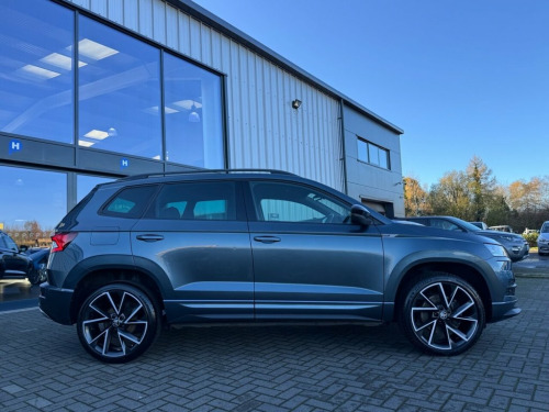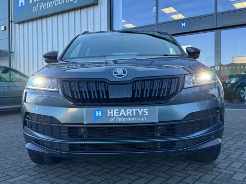 DRIVE HOME TODAY IN THIS SUPERB 2020-70 SKODA KAROQ 1.5 TSI ACT SPORTLINE 5 DOOR DSG PETROL 150 BHP FINISHED IN QUARTZ GREY AND TRIMMED WITH HEATED BLACK SPORTS SEATING. ONE KEEPER FROM NEW WITH ONLY 65K MILES AND A SKODA SERVICE HISTORY ULEZ AND CLEAN AIR ZONE COMPLIANT AND COMBINING ECONOMY, PRACTICALITY AND LUXURY. GREAT SPEC INC 19"ALLOY WHEELS, SAT-NAV, CAR PLAY, REAR CAMERA, GLASS PANORAMIC SUN ROOF, CLIMATE & CRUISE CONTROL, DAB RADIO, BLUETOOTH, CLIMATE & CRUISE CONTROL, FRONT & REAR PARKING SENSORS, PRIVACY GLASS,HEATED SEATS & STEERING WHEEL, WIRE LESS PHONE CHARGER. SPORTLINE Fabric - Black, 12V Power Socket in Boot, 19in Alloy Wheels - Vega Anthracite, 2 Reading Lights Front - For Driver and , 3 Spoke Leather Sports Heated Multi-Func, 4 Foldable Roof Handles with Clothes Hoo, Aero Front Windscreen Wipers with Interm, Air Conditioning - Climate Control Dual , Air Vent Surrounds in Black, Airbags - Driver, Alarm with Interior Monitoring - Back Up, Aluminium Pedals, Amundsen Touchscreen Satellite Navigatio, Anti-Theft Locking Wheel Bolts, Automatic Door Unlocking Incase of Crash, Automatic Fuel Cut Off Incase of Crash, Automatic Headlight Control, Black Roof Headlining, Black Roof Rails - Door Mirrors and Radi, Bolero Radio, Boot Package - 2 Folding Hooks