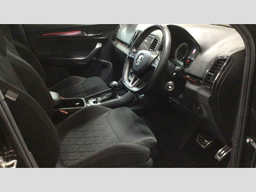 Finance Soft Search Pre Approval. This Skoda Karoq 1.5TSI ACT SportLine Petrol Automatic DSG Euro 6 (150bhp) has covered 63000 miles in black with black interior. 1 owner from new, pan roof NEW STOCK DUE IN SOON 12V Power Socket in Boot, 19in Alloy Wheels - Vega Anthracite, 2 Reading Lights Front - For Driver and , 3 Spoke Leather Sports Multi-Function St, 4 Foldable Roof Handles with Clothes Hoo, Aero Front Windscreen Wipers with Interm, Air Conditioning - Climate Control Dual , Air Vent Surrounds in Black, Airbags - Driver, Airbags - Front Passenger with Deactivat, Alarm with Interior Monitoring - Back Up, Aluminium Pedals, Amundsen Satellite Navigation with 8in T, Anti-Theft Locking Wheel Bolts, Automatic Door Unlocking Incase of Crash, Automatic Fuel Cut Off Incase of Crash, Black Roof Headlining, Black Roof Rails - Door Mirrors and Radi, Bolero Radio, Boot Package - 2 Folding Hooks and Nets, Bo