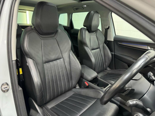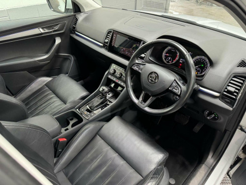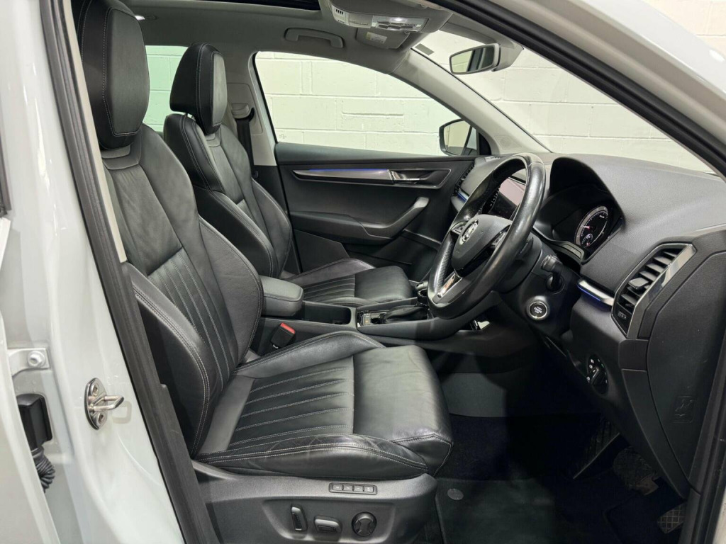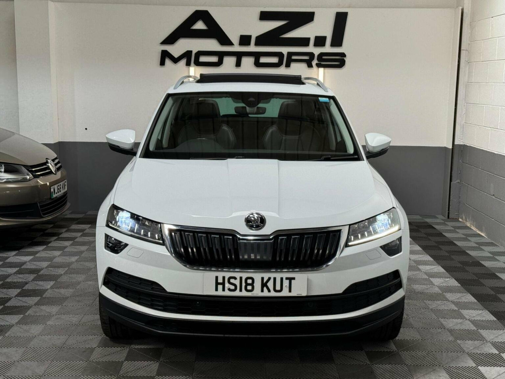 A.Z.I Motors are proud to offer this Extremely well Maintained in Pristine Condition Low Mileage Two Owners from New 2018 Skoda Karoq 1.5 TSI Edition DSG Euro 6 (s/s) 5dr Finished in Moon White . Full Service History Skoda Main Dealer and a VAT registered garage all Documented with Service invoice Receipts, Water Pump Replaced in 2025 with invoice, Last Service Carried out in May 2025 Full Service including Spark plugs. Supplied with 2 keys and Book pack with Manuals , ULEZ Complaint. Huge factory Specification a must see!, Panoramic Sunroof with Blind , Full Leather Heated Memory Seats, Full LED Headlights with AFS and LED Daytime Running Lights, 3 Spoke Leather Sports Multi-Function Steering Wheel with Paddle shift, Auto lights, Columbus Satellite Navigation with 9.2in Touchscreen Display, Apple Car Play & Android Auto, Charging pad, Reverse Camera, Park Assist, Radar Assist + so much more.. All our cars come with 6-month AA Warranty (option to extend up to 36-month), 12- month AA Breakdown cover and a Full professional detail. Low Rate Finance Available! 4.8*/5 Rated by Customers on Google Reviews .5* Rated on Autotrader Reviews. We have Recently been Awarded by Autotrader for the Best Customer Service of the year award 2024 NO ADMIN FEES !!
