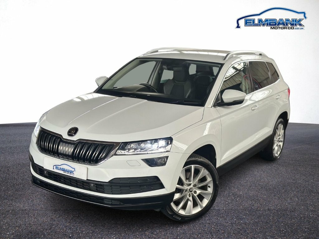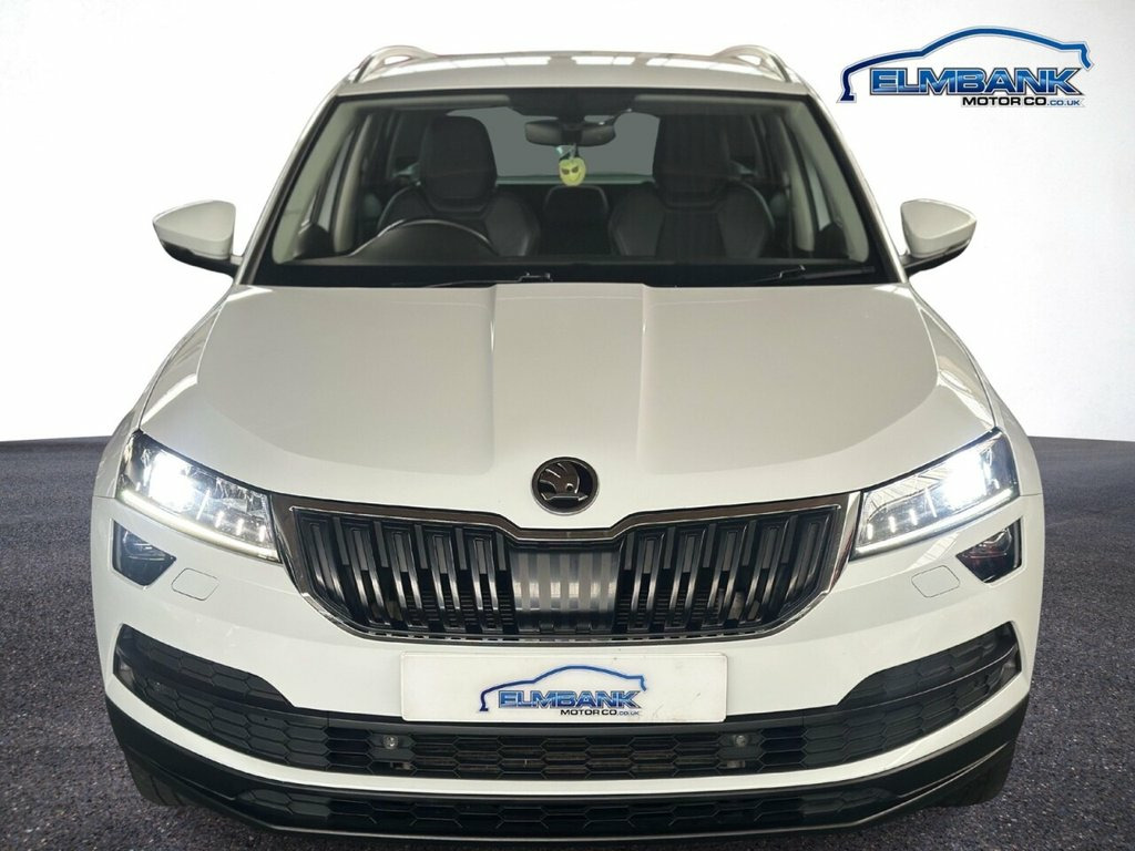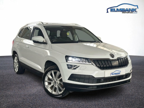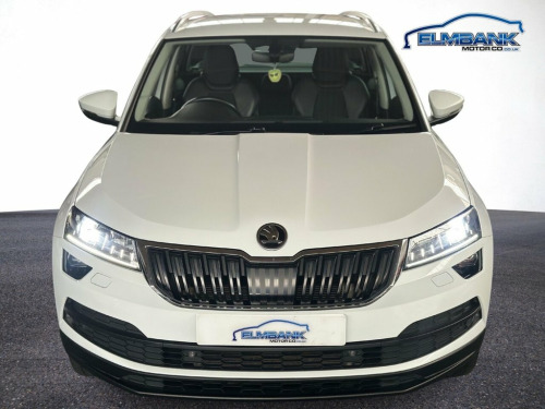 2018 SKODA KAROQ 1.5 TSI SE L 150 PS EURO 6 - ULEZ COMPLIANT. STUNNING IN WHITE WITH BLACK LEATHER AND ALCANTARA INTERIOR AND 2 KEYS. SPECIFICATIONS INCLUDE DIAMOND CUT ALLOY WHEELS, LEATHER & ALCANTARA SEATS, CRUISE CONTROL, BLUETOOTH, DAB RADIO, SATELLITE NAVIGATION, LED DAYTIME RUNNING LIGHTS, BI XENON HEADLIGHTS, HEATED FRONT SEATS, POWER FOLD MIRRORS, DIGITAL CLIMATE CONTROL, FRONT & REAR PARKING SENSORS, COLOUR CODED BODY, FULL ELECTRICS PACK, TINTED GLASS, ISOFIX ANCHOR POINTS AND TRACTION CONTROL. SUPPLIED WITH 12 MONTHS MOT INCLUDING PRE DELIVERY SERVICE AND INSPECTION. WE CAN OFFER BESPOKE FINANCE PACKAGES AND PART EXCHANGE FACILITIES. FOR MORE INFORMATION PLEASE CALL ELMBANK MOTOR COMPANY ON 01292 292991. Candy White, Alcantara - Black, Park Assist, 12V Power Socket in Boot, 18in Alloy Wheels - Braga Silver, 2 Reading Lights Front - For Driver and , 3 Point Rear Belts x3, 3 Spoke Leather Sports Multi-Function St, 4 Foldable Roof Handles with Clothes Hoo, Additional 4 Loudspeakers, Air Conditioning - Climate Control Dual , Airbags - Driver, Airbags - Front Passenger with Deactivat, Alarm with Interior Monitoring - Back Up, Amundsen Satellite Navigation with 8in T, Anti-Theft Locking Wheel Bolts, Automatic Door Unlocking Incase of Crash, Automatic Fuel Cut Off Incase of Crash, Body Coloured Door Mirrors and Door Hand, Bolero Radio, Boot Package - 2 Folding Hooks and Nets, Bottle Holders in Door