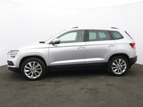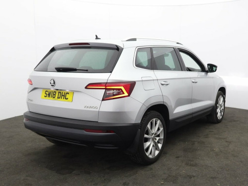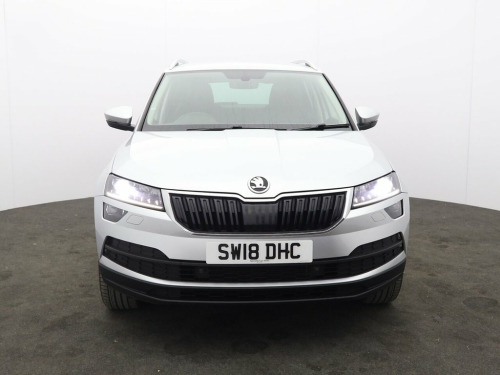 This 2018 Skoda Karoq TSI SE L offers excellent value with a long MOT, providing peace of mind for the coming years. This stylish SUV is equipped with a 1.5 litre Euro 6 compliant petrol engine, delivering a responsive 0-60mph time of just 8.1 seconds. Inside, you'll find the SE L trim which includes a Small Leather Package and Lumbar Support for the front seats, enhancing comfort on every journey. The Rain and Light Assistant, coupled with automatic headlights and an auto dimming rear view mirror, ensures optimal visibility in varying conditions, while LED cornering front fog lights illuminate your path. The Skoda Karoq TSI SE L stands out with its impressive fuel economy, achieving up to 51 miles per gallon, which is better than many vehicles in its class. It also boasts a low CO2 emission rating, contributing to lower running costs and environmental impact. Furthermore, its low insurance group rating makes it an economical choice for many drivers. Practicality is a key strength, with a large boot space offering ample room for luggage, shopping, or sports equipment, making it a versatile option for families and individuals alike. 12V Power Socket in Boot, Additional 4 Loudspeakers, Amundsen Satellite Navigation with 8in T, Bolero Radio, DAB Digital Radio and Bluetooth, SmartLink Plus, 18in Alloy Wheels - Braga Silver, Body Coloured Door Mirrors and Door Hand, Electric Front and Rear Windows with Chi, Electrically Adjustable - Heated - Foldi, Heated Rear Windscreen, Light Assistant, Privacy Glass, Silver Roof Rails and Chrome Package, 2 Reading Lights Front - For Driver and , 3 Spoke Leather Sports Multi-Function St, 4 Foldable Roof Handles with Clothes Hoo, Air Conditioning - Climate Control Dual , Boot Package - 2 Folding Hooks and Nets, Bottle Holders in Door Panel in the Fron, Cargo Element in Luggage Compartment,