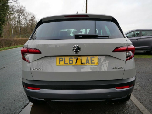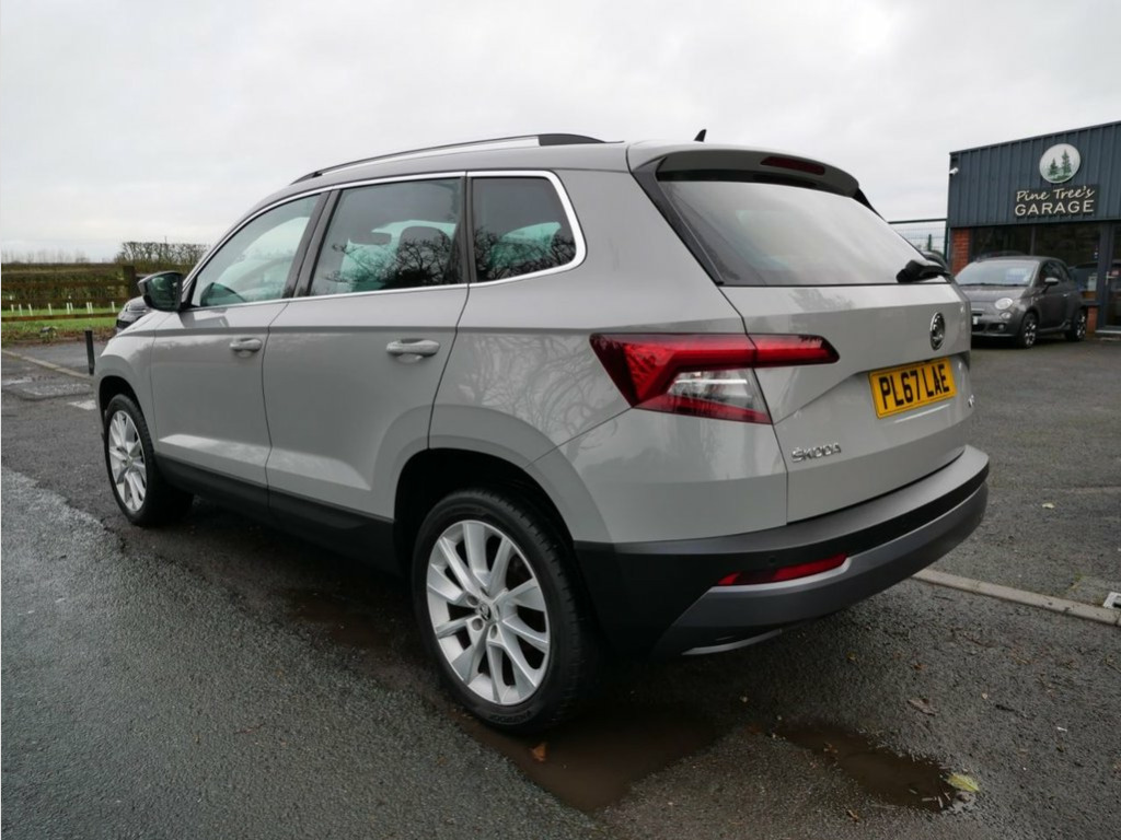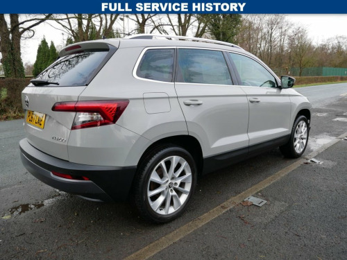 With only one owner from new and a full service history, this 2018 Skoda Karoq TSI SE L presents a superb example of this popular compact SUV. This Euro 6 compliant model boasts a 1.5 litre petrol engine and has covered a low mileage of just 46,722 miles. It comes with a clear vehicle history check and will be supplied with a 12 month MOT for your peace of mind. Notable features include the Rain and Light Assistant with auto dimming rear view mirror and automatic headlights, silver roof rails and a chrome package, a level indicator, lumbar support for the front seats, and seat belt signalisation. This Skoda Karoq offers excellent running costs, achieving an impressive 51 miles per gallon, and benefits from a low insurance group and low CO2 emissions, making it an economical choice. Its performance is also noteworthy, with a brisk 0 to 60 miles per hour acceleration time of just 8.1 seconds, demonstrating that efficiency does not compromise driving enjoyment. These highlights collectively indicate that this Karoq offers a superior ownership experience compared to many other vehicles in its class. FINISHED IN METEOR GREY, 1 OWNER FROM NEW, 2 KEYS, FULL SERVICE HISTORY, SERVICED @ 17916, 23620, 30704, 35578, 40311. Meteor Grey, 12V Power Socket in Boot, 18in Alloy Wheels - Braga Silver, 2 Reading Lights Front - For Driver and , 3 Point Rear Belts x3, 3 Spoke Leather Sports Multi-Function St, 4 Foldable Roof Handles with Clothes Hoo, Additional 4 Loudspeakers, Air Conditioning - Climate Control Dual , Airbags - Driver, Airbags - Front Passenger with Deactivat, Alarm with Interior Monitoring - Back Up, Amundsen Satellite Navigation with 8in T, Anti-Theft Locking Wheel Bolts, Automatic Door Unlocking Incase of Crash, Automatic Fuel Cut Off Incase of Crash, Body Coloured Door Mirrors and Door Hand, Bolero Radio, Boot Package - 2 Folding Hooks and Nets, Bottle Holders in Door Panel in the Fron, Cargo Elemen