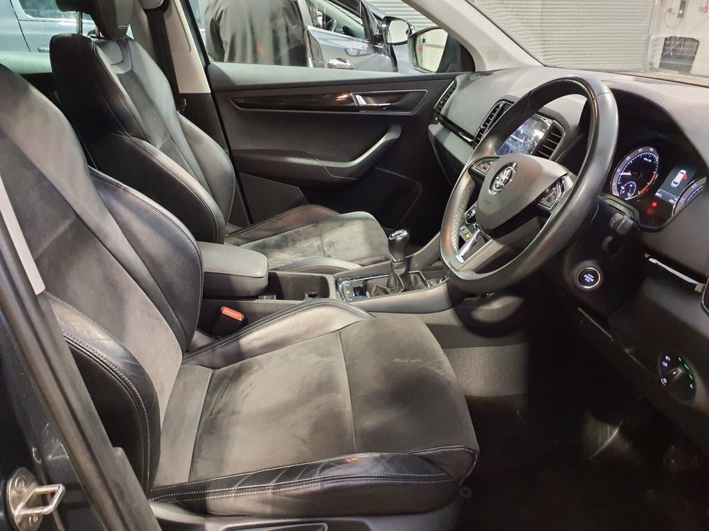 ONE OWNER+8 INCH TOUCHSCREEN SATELLITE NAVIGATION SYSTEM+DAB DIGITAL RADIO+BLUETOOTH+DUAL ZONE CLIMATE CONTROL AIR-CONDITIONING+CRUISE CONTROL+ AUTOMATIC HEADLIGHT ACTIVATION+RAIN-SENSING WINDSCREEN WIPERS+FRONT & REAR PARKING ASSISTANCE WITH PARKING CAMERA+'QUARTZ GREY' PAINT+18 INCH ALLOY WHEELS. At Haverhill Car Xchange we would like to offer you our ONE OWNER Skoda Karoq SE SUV which has been finished in a 'Quartz Grey' paint with Black half leather and cloth upholstery. Excellent Specification Includes a 8 Inch Amundsen Touchscreen Satellite Navigation System, SmartLink Plus, DAB Digital Radio, Bluetooth, 12 Volt Power Socket, Dual Zone Climate Control Air-Conditioning, Drive Mode Selection, Cruise Control with Speed Limiter, Electric Front and Rear Windows with Child Proof Lock, Body Coloured Bumpers/Door Handles/Rear Roof Spoiler and Door Mirrors with Integrated Side Indicators, Automatic Headlight Activation, LED Daytime Running Lights, LED Rear Lights, LED Cornering Front Fog Lights, Third Break Light, Rain-Sensing Windscreen Wipers, Front and Rear Parking Assistance with Parking Camera, 3-Spoke Leather Multifunction Steering Wheel, Electric Parking Brake with Auto Hold Function, Privacy Glass, Heated Rear Window, Power Steering, Driver Fatigue Sensor, Airbags, Alarm, Immobiliser, Remote Central Locking and ISOFIX Anchorage Points for Child Seats. Steel Space Saver Spare Wheel, 18in Alloy Wheels - Mytikas, Quartz Grey, 12V Power Socket in Boot, 18in Alloy Wheels - Braga Silver, 2 Reading Lights Front - For Driver and , 3 Point Rear Belts x3, 3 Spoke Leather Sports Multi-Function St, 4 Foldable Roof Handles with Clothes Hoo, Additional 4 Loudspeakers, Air Conditioning - Climate Control Dual , Airbags - Driver, Airbags - Front Passenger with Deactivat, Alarm with Interior Monitoring - Back Up, Amundsen Satellite Navigation with 8in T, Anti-Theft Locking Wheel Bolts, Automatic Door Unlocking Incase of Crash, Automatic Fuel Cut Off Incase of Crash, Body Coloured Door Mirrors and Door Hand, Bolero Radio, Boot Package - 2 Folding Hooks and