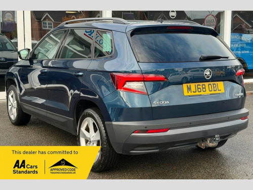 Boasting exceptionally low mileage for its age, this 2018 Skoda Karoq TDI SE represents a superb find for those seeking a well maintained and economical family car. With only 44,490 miles on the clock, this Euro 6 compliant 1.6 litre diesel model comes with service history, most recently serviced on 14th October 2024 at 38,548 miles. The MOT is valid until April 2026, and a 3 month warranty is included for your peace of mind. Inside, you'll appreciate the convenience of dual zone climate control, automatic headlights, rear parking sensors, DAB digital radio, Bluetooth connectivity, and a light and rain sensor with an auto dimming rear view mirror. This Skoda Karoq stands out with its impressive fuel economy, achieving an excellent 48 miles per gallon, which is better than many similar vehicles. Its low CO2 emissions also contribute to its appeal, making it a more environmentally conscious choice. Furthermore, its low insurance group rating means that running costs are kept to a minimum, offering a cost effective ownership experience compared to other cars in its class. ========= Specification: SmartLink Plus – Apple CarPlay & Android Auto Dual-Zone Climate Control Rear Parking Sensors Cruise Control with Speed Limiter 17" Alloy Wheels – Ratikon Design Electrically Folding, Heated & Auto-Dimming Mirrors Front Assist with Pedestrian Monitoring DAB Digital Radio with Bluetooth Light & Rain Sensors + Auto Headlights LED Daytime Running Lig 12V Power Socket in Boot, 17in Alloy Wheels - Ratikon, 2 Reading Lights Front - For Driver and , 3 Point Rear Belts x3, 3 Spoke Leather Multifunction Steering W, 4 Foldable Roof Handles with Clothes Hoo, Aero Front Windscreen Wipers with Interm, Air Conditioning - Climate Control Dual , Airbags - Driver, Airbags - Front Passenger with Deactivat, Alarm with Interior Monitoring - Back Up, Automatic Door Unlocking Incase of Crash, Automatic Fuel Cut Off Incase of Crash, Black Roof Rails, Body Coloured Door Mirrors and Door Hand, Bolero Radio, Boot Package - 2 Folding Hooks and Nets, Bottle Holders in Door Panel in the Fron, Cargo Element in Luggage Compartment, Chrome Framed Air Vents, Chrome I