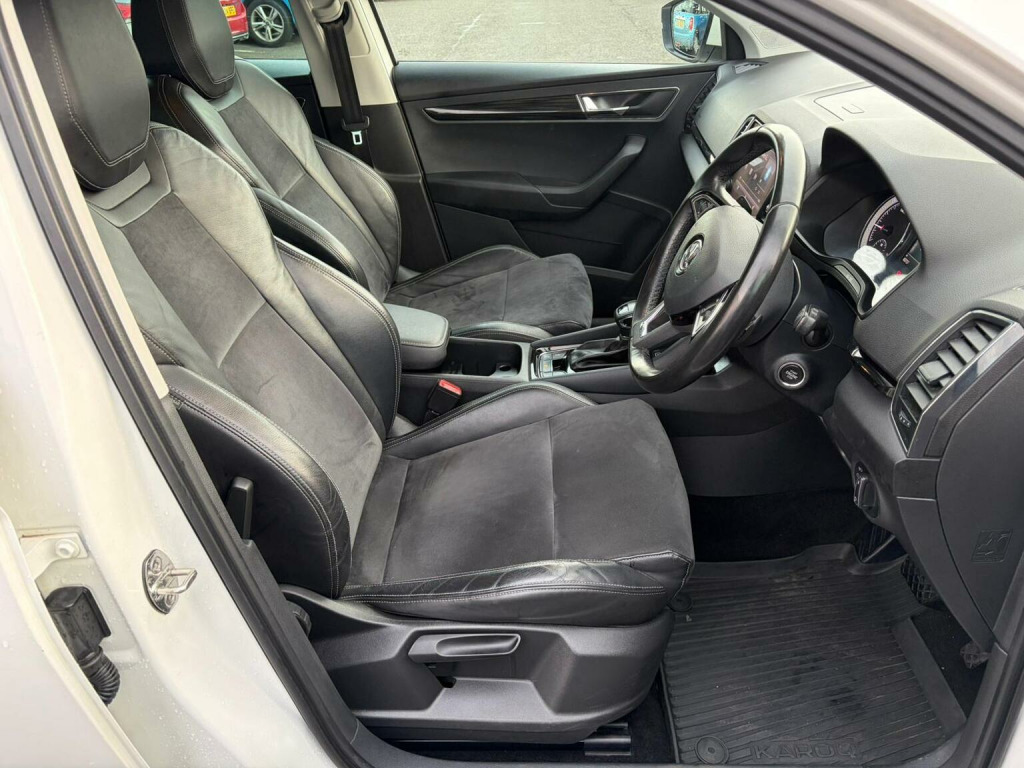 This 2018 Skoda Karoq TDI SE L presents an exceptional opportunity with its remarkably low mileage of just 63,719 miles for its age. This Four Wheel Drive, Euro 6 compliant model is powered by an efficient 2.0 litre Diesel engine, offering a compelling blend of performance and economy. The SE L trim level ensures a well equipped interior, featuring automatic activation headlights, heated front seats for added comfort, and a DAB digital radio with Bluetooth connectivity for seamless entertainment and communication. Youll also benefit from Full LED Headlights with AFS and LED Daytime Running Lights, enhancing visibility, and a rear view camera to assist with parking. The Skoda Karoq TDI SE L stands out from similar vehicles thanks to several key advantages. Its low CO2 emissions contribute to a more environmentally friendly drive, while its classification within a low insurance group can help to reduce running costs. The generous boot space makes it a practical choice for families or those who need ample storage. Furthermore, its acceleration from 0 to 60 miles per hour in just 8.5 seconds demonstrates a responsive and capable performance from its 2.0 litre Diesel engine.
