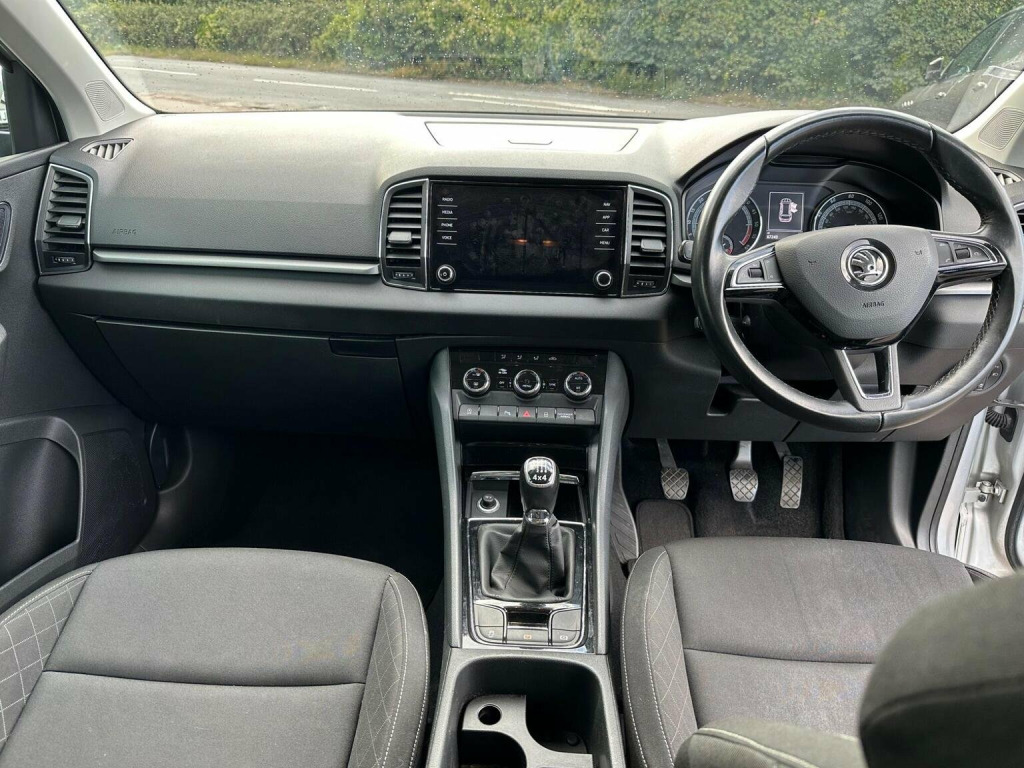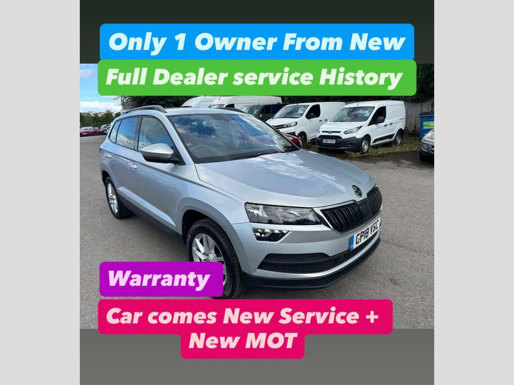 new service, new mot, This Skoda Karoq TDI SE Technology from 2018 boasts a full dealership service history, with its last service completed at 67,200 miles, and has had only one owner from new. This Euro 6 compliant, four wheel drive model features a 2.0 litre diesel engine and comes with 12 months MOT provided on purchase, ensuring its roadworthiness. Inside, youll find a Canton Sound System for an enhanced audio experience, alongside practical features like Auto Light Assist and Silver Roof Rails with a Chrome Package. For added safety and convenience, this Karoq includes Lane Assist and Blind Spot Detection with Blind Spot Assistance. This particular Skoda Karoq is presented in a low insurance group, making it an economical choice for many drivers. It offers substantial boot space, ideal for families or those needing extra room for luggage or shopping. The vehicles low CO2 emissions are also a notable benefit, contributing to lower running costs and environmental impact. Furthermore, its impressive acceleration of 0 to 60mph in just 8.6 seconds indicates a responsive and capable driving performance, setting it apart from other vehicles in its class.