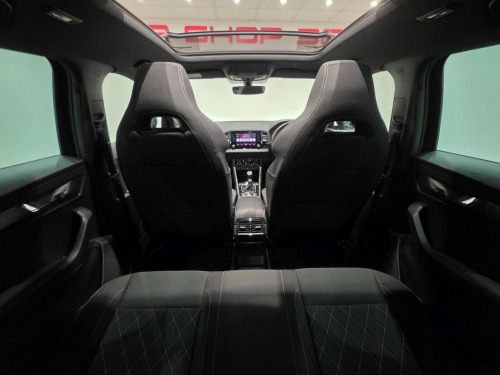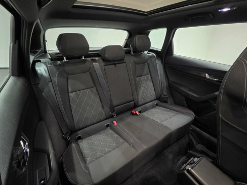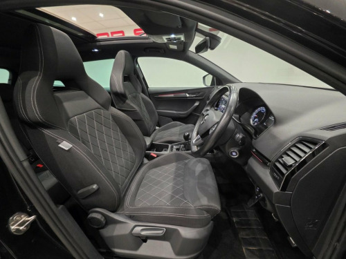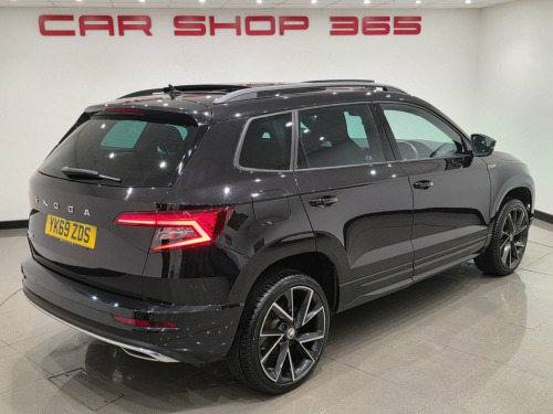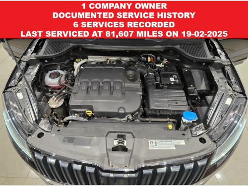 HIGH SPECIFICATION + SKODA KAROQ 2.0 TDI 'SPORTLINE' SUV 5DR DIESEL MANUAL EURO 6 (S/S) (150 PS) + 1 COMPANY OWNER + DOCUMENTED SERVICE HISTORY, 6 SERVICES RECORDED, LAST SERVICED AT 81,607 MILES ON 19-02-2025+ + COMES WITH 12 MONTHS MOT + MAGIC BLACK PAINTWORK AND BLACK DIAMOND QUILTED SPEED CLOTH UPHOLSTERY COMPLIMENTED WITH CONTRAST WHITE STITCHING + HEIGHT ADJUSTABLE AND HEATED FRONT SPORT SEATS + CARBON FIBRE INLAYS + E-TILT / SLIDE PANORAMIC GLASS SUNROOF WITH E-SUNBLIND + BLACK STYLING PACKAGE + FACTORY SPORTLINE BODY KIT + 19 INCH ALLOY WHEELS + BLACK ROOF RAILS + REVERSE ASSIST CAMERA + FRONT-REAR PARKING AID WITH ACOUSTIC AND VISUAL ON SCREEN DISPLAY + L.E.D. HEADLIGHTS WITH JET WASH AND L.E.D. DAYTIME RUNNING LIGHTS + L.E.D. REAR LIGHTS + REAR PRIVACY GLASS + KEYLESS ENTRY-LOCK-START + STOP-START + SPORTS DIALS + AMUNDEN 8 INCH WIDE TOUCH SCREEN SATELLITE NAVIGATION + VOICE CONTROL + SKODA MULTIMEDIA + DAB RADIO-CD-USB-SD CARD-MIRROR LINK-APPLE CARPLAY-ANDROID AUTO + DRIVING MODE SELECTION + CRUISE CONTROL + SPEED LIMITER + FRONT ASSIST RADAR + AUTO DUAL ZONE CLIMATE CONTROL- AIR CONDITIONING + AIR CARE + FLAT BOTTOM SPORTS MULTIFUNCTIONAL LEATHER STEERING WHEEL + AUTO HOLD BRAKES + TRACTION CONTROL + L.E.D. INTERIOR LIGHTING + POWER STEERING + REMOTE CENTRAL LOCKING + 4X ELECTRIC WINDOWS + HEATED AND POWER FOLDING E-DOOR MIRRORS + AUTO LIGHTS, AUTO WIPERS, AUTO DIMMING REAR VIEW MIRROR + TYRE PRESSURE MONITOR + ALARM-IMMOBILISER + ALUMINIUM SPORTS PE Personalisation of Drive Mode Selection, Magic Black, Columbus Satellite Navigation with 9.2in, SPORTLINE Fabric - Black, Park Assist, DCC - Dynamic Chassis Control, Traffic Sign Recognition, ISOFIX on Front Passenger Seat, Crew Protection Assistant and Rear Side , Heated Front and Rear Seats, Virtual Pedal, Rubbish Bin in Door, Double Sided Boot Floor, Variable Boot Floor 4x2, Temporary Steel Space Saver Spare Wheel, Heated Windscreen and Heated Washer Nozz, Auto Light Assist, 12V Power Socket in Boot, 19in Alloy Wheels - Vega Anthracite, 2 Reading Lights Front - For Driver and , 3 Spoke Leather Sports Multi-Function St, 4 Foldable Roof Handles with Clothes Hoo, Aero Front Windscreen Wipers