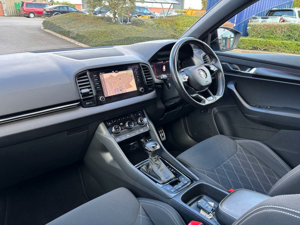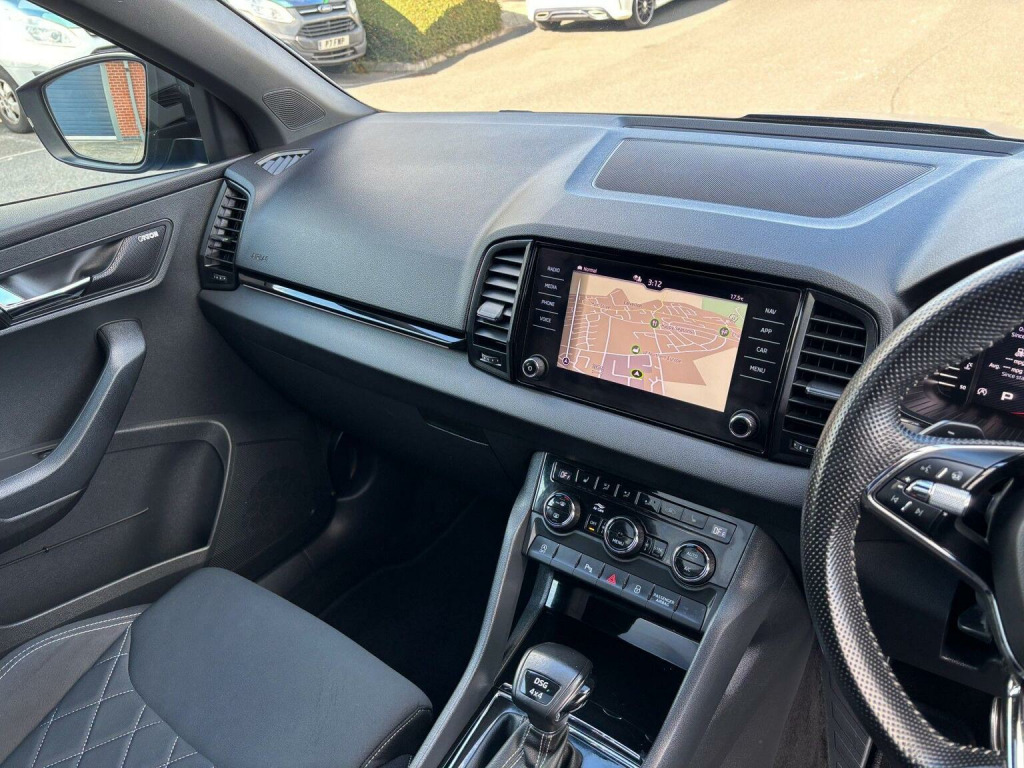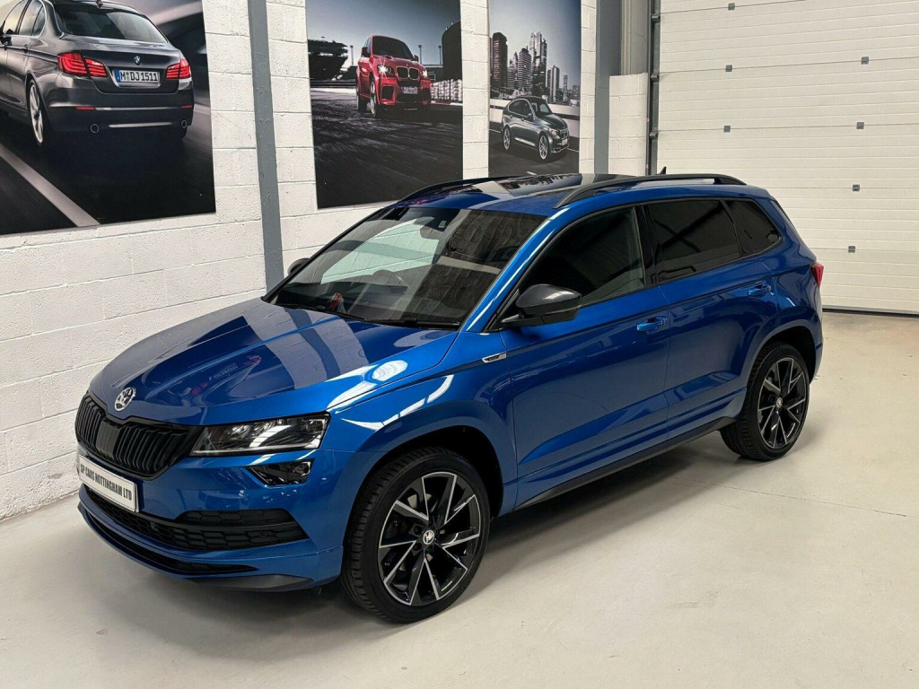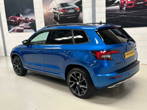 SP Cars are excited to offer this 2021/21 Skoda Karoq 2.0 TSI SportLine 190 BHP DSG 4WD Euro 6 (s/s) 5dr SUV, presented in metallic Race Blue with a rare spec. Just One previous owner from new, Low mileage and Skoda service history and printout, Will have a fresh MOT and service upon sale. Hpi Clear. EURO 6 Emissions and ULEZ Compliant. Please contact us directly for any further information or if you wish to reserve any of our vehicles. All part exchanges considered. Check out our 5* reviews and a full walkaround video on our website www.spcars.net. We are FCA regulated and can arrange competitive finance packages to suit your needs. We have the V5, handbook pack, 2 keys, locking wheel nut, tool kit and spare wheel. Viewing is by appointment only please. Please ring before travelling to avoid disappointment. Check Out This Spec, Full Glass Panoramic Roof with Electric Sunblind, Columbus Navigation With Wi-Fi And Gesture Control, Canton Surround Sound, Virtual Cockpit, Rare, Heated Steering Wheel, Rear View Camera, Parking Sensors - Front and Rear, Apple Carplay/Android Audio, 19in Alloy Wheels - Vega Anthracite, Heated Front Seats, KESSY - Keyless Entry and Start System with SAFE System, Privacy Glass, Wireless Phone Charging, Electrically Operated Boot Door, Front Assist Radar, Air Conditioning - Climate Control Dual Zone, Electrically Adjustable - Heated - Folding Door Mirrors - Auto Dimming - Boarding Spots, Umbrella Under Front Passenger Seat, SmartLink Plus, Cruise Control with Speed Limiter, DAB Digital Radio and Bluetooth, Drive Mode Selection with Off Road, Welcome Animation with SportLine Logo, Light Assistant, 12V Power Socket in Boot, ESC Electronic Stability Control incl ABS Anti Lock Braking System, Front Centre Armrest with Storage Compartment - Rear Air Vents and 12v Socket, Full LED Headlights with AFS and LED Daytime Running Lights, Glovebox - Illuminated and Cooled, ISOFIX Child Seat Preparation - Outer Rear, LED Interior Light Package and SKODA Welcome Light, Light and Rain Sensor with Auto-Dimming Rear View Mirror