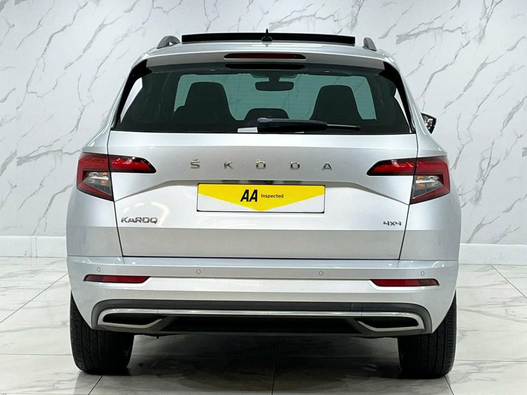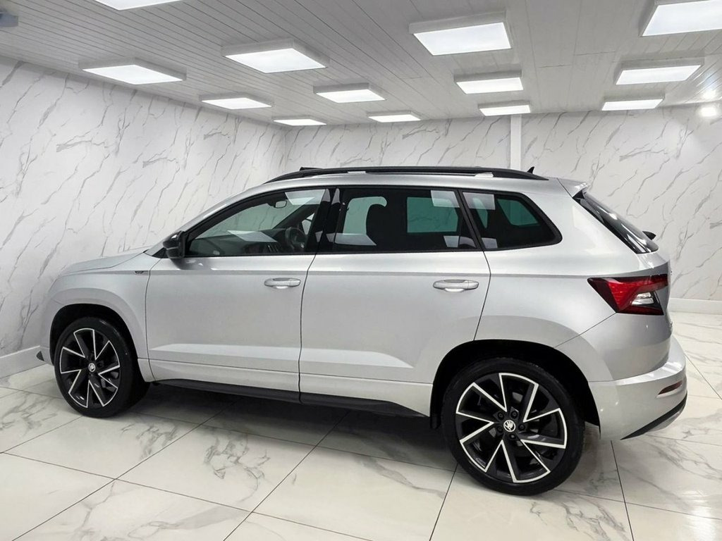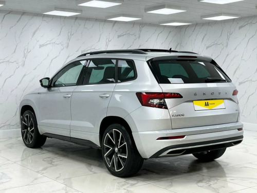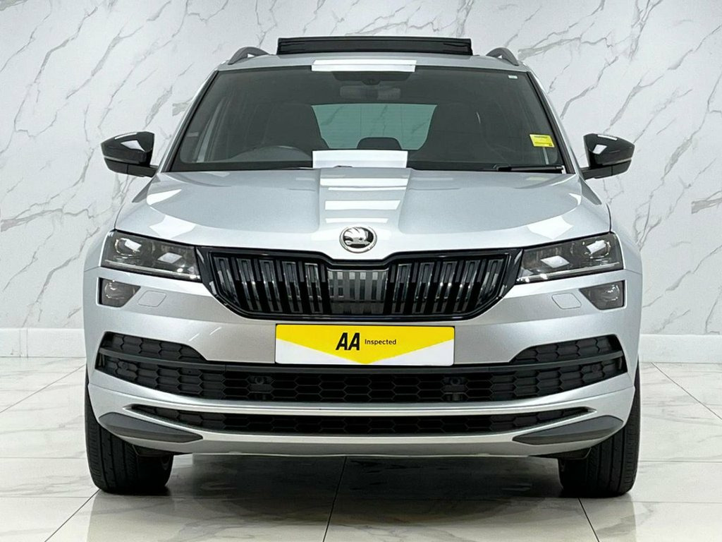 This 2019 Skoda Karoq TSI SportLine boasts exceptionally low mileage for its age, having covered just 37,500 miles. This Euro 6 compliant four wheel drive model is powered by a 2.0 litre petrol engine and features a SportLine trim. For your peace of mind, the MOT is valid until September 2026. This Karoq is equipped with a range of convenient features including automatic headlights with a light and rain sensor, an auto dimming rear view mirror, and a fixed panoramic sunroof. Enjoy your favourite radio stations with DAB digital radio and stay connected on the go with Bluetooth functionality. Parking is made easier with the rear view camera and parking assistance. The Skoda Karoq TSI SportLine offers a compelling blend of performance and practicality. Its impressive acceleration, reaching 0-60mph in just 6.8 seconds, sets it apart from many other vehicles in its class. Furthermore, its low insurance group rating indicates that running costs could be more economical compared to similar models. You'll also appreciate the generous boot space, providing ample room for luggage, shopping, or sports equipment, making it a versatile choice for families and individuals alike. SPORTLINE Fabric - Black, 12V Power Socket in Boot, 19in Alloy Wheels - Vega Anthracite, 2 Reading Lights Front - For Driver and , 3 Spoke Leather Sports Multi-Function St, 4 Foldable Roof Handles with Clothes Hoo, Aero Front Windscreen Wipers with Interm, Air Conditioning - Climate Control Dual , Air Vent Surrounds in Black, Airbags - Driver, Airbags - Front Passenger with Deactivat, Alarm with Interior Monitoring - Back Up, Aluminium Pedals, Amundsen Satellite Navigation with 8in T, Anti-Theft Locking Wheel Bolts, Automatic Door Unlocking Incase of Crash, Automatic Fuel Cut Off Incase of Crash, Black Roof Headlining, Black Roof Rails - Door Mirrors and Radi, Bolero Radio, Boot Package - 2