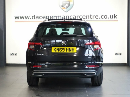 SKODA KAROQ TSI SPORTLINE FINISHED IN A STUNNING MAGIC BLACK AND BLACK CLOTH INTERIOR COMING WITH FULL SKODA SERVICE HISTORY, PANORAMIC ROOF, DIGITAL DASH, HEATED FRONT SEATS, SATELLITE NAVIGATION, REVERSE CAMERA, ELECTRIC HEATED WINDSCREEN, 18" ALLOYS, KEYLESS START, PRIVACY GLASS, PARKING SENSORS, BLUETOOTH CONNECTIVITY, DAB DIGITAL RADIO, MULTI FUNCTION STEERING WHEEL, DUAL CLIMATE CONTROL, AIR CONDITIONING, AUTO START / STOP FUNCTION, ROOF RAILS, ELECTRIC WINDOWS, ELECTRIC FOLDING AND HEATED DOOR MIRRORS.   •••••••••• F I N A N C E • A V A I L A B L E ••••••••••   - *** NOT SURE YOU'RE ELIGIBLE FOR CAR FINANCE? *** CHECK TODAY USING OUR FREE CAR FINANCE CHECKER ON OUR WEBSITE.*** Dace Motor Group have a dedicated team of finance experts waiting to help with your enquiry. Over the past 30 years we have forged relationships with the country's largest and best finance houses. We are specialists in Hire Purchase (HP), Personal Contract Purchase (PCP) as well as assisting those with poor credit or previous credit problems -  ••••••••••  A B O U T • U S ••••••••••   - At Dace German Car Centre, we are very proud to have been named the first Trading Standards Approved Car Retailer, with process and procedures developed with and applauded by them.  We do reco 12V Power Socket in Boot, 19in Alloy Wheels - Vega Anthracite, 2 Reading Lights Front - For Driver and , 3 Spoke Leather Sports Multi-Function St, 4 Foldable Roof Handles with Clothes Hoo, Aero Front Windscreen Wipers with Interm, Air Conditioning - Climate Control Dual , Air Vent Surrounds in Black, Airbags - Driver, Airbags - Front Passenger with Deactivat, Alarm with Interior Monitoring - Back Up, Aluminium Pedals, Amundsen Satellite Navigation with 8in T, Anti-Theft Locking Wheel Bolts, Automatic Door Unlocking Incase of Crash, Automatic Fuel Cut Off Incase of Crash, Black Roof Headlining, Black Roof Rails - Door Mirrors and Radi, Bolero Radio, Boot Package - 2 Folding Hooks and Nets, Bo