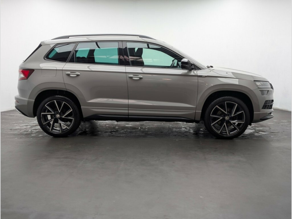 Navigation, Heated seats, Panoramic roof, Parking camera and Upgraded sound system. 5 services - last service done at 37368 mile on 20/12/2024. This 2020 Skoda Karoq TSI SportLine boasts a clear vehicle history check, offering you peace of mind. This stylish SUV features a robust 2.0 litre petrol engine paired with Four Wheel Drive, ensuring capable performance in various conditions. It meets Euro 6 emission standards and comes with an MOT valid until January 2027. Inside, you'll find desirable features such as dual zone climate control, a rear view camera for easier parking, and a fixed panoramic sunroof that floods the cabin with light. The front seats are heated for added comfort, and automatic activation for the headlights means you don't have to worry about switching them on. The SportLine trim level enhances the Karoq's appeal, and this particular model offers a compelling driving experience. Its acceleration from 0 to 60 miles per hour in just 6.8 seconds demonstrates its spirited performance, setting it apart from many similar vehicles. Furthermore, its placement in a low insurance group makes it an economical choice for many drivers, indicating it is more affordable to insure than comparable cars. 12V Power Socket in Boot, 19in Alloy Wheels - Vega Anthracite, 2 Reading Lights Front - For Driver and , 3 Spoke Leather Sports Multi-Function St, 4 Foldable Roof Handles with Clothes Hoo, Aero Front Windscreen Wipers with Interm, Air Conditioning - Climate Control Dual , Air Vent Surrounds in Black, Airbags - Driver, Airbags - Front Passenger with Deactivat, Alarm with Interior Monitoring - Back Up, Aluminium Pedals, Amundsen Satellite Navigation with 8in T, Anti-Theft Locking Wheel Bolts, Automatic Door Unlocking Incase of Crash, Automatic Fuel Cut Off Incase of Crash, Black Roof Headlining, Black Roof Rails - Door Mirrors and Radi, Bolero Radio, Boot Package - 2 Folding Hooks and Nets, Bo