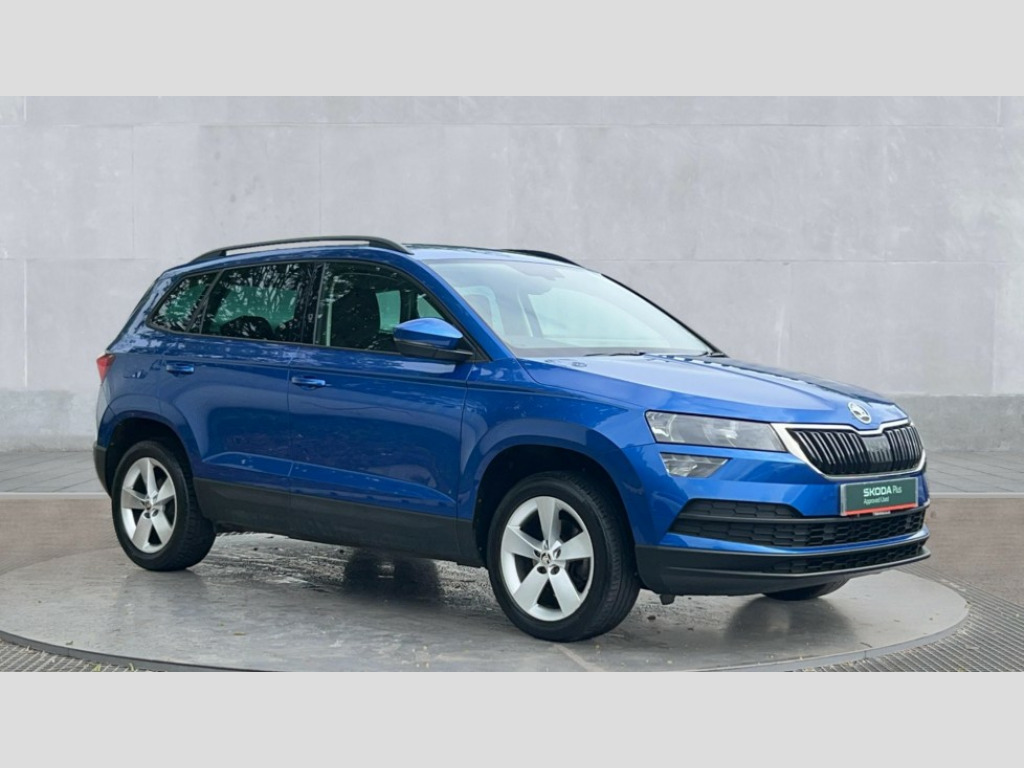 Skoda Karoq 1.0 TSI 110 SE 5dr Care connect, Driver fatigue sensor, Electro-mechanical PAS, Outside temperature gauge, Service interval indicator, SmartLink wireless for Apple and wired for Android, Start/stop system with regenerative braking, USB C Port x 2 in front centre console, DAB radio with Bluetooth, USB connection, Acoustic glass, Aero front windscreen wipers with intermittent function, Automatic headlight control system, Black electric window control buttons, Body colour door mirrors and handles, Body coloured bumpers, Electric front and rear windows with child proof lock, Electrically adjustable heated folding and auto dimming door mirrors, Heated rear windscreen, LED rear lights with high functionality, Light assistant (coming/leaving home/tunnel light), Privacy glass, Safety reflectors on front doors, Third brake light, 1.5 litre bottle holders in driver and front passenger door panels, 12V socket in boot, 12v socket in front centre armrest with storage compartment and rear air vents, 2 Folding hooks and nets in boot, 2 Front readings lights for driver and passenger, 3 rear height adjustable headrests, 4 foldable roof handles with rear coat hooks, Cargo elements in boot, Chrome inner door handles, Driver and passenger seats height adjust, Folding tables on the front seat backrests, Front head restraints, Height adjustable front three point seats belts with tensioners, Height/reach adjust steering wheel, Ice scraper, Illuminated and cooled glovebox, Illuminated luggage compartment, Isofix child seat preparation outer rear, Manual lumbar support for front seats, Net programme in boot, Pen holder, Pollen filter, Rear boot cover, Rear reading lights, Safety vest holder, Storage box in upper central dashboard closed, Sunvisors with illuminated vanity mirrors, Umbrella under passenger seat, Airbags - Front side, head, knee and curtain, Automatic door unlocking in case of crash, Automatic fuel cut off in case of crash, Driver airbag, Electronic parking brake with auto hold function, Emergency rear braking signal, ESC including ABS, MSR, ASR, EDS, HBA, DSR, RBS, MKB and traction control, Front assist radar scanning of the space in front of the car with automatic braking, Hill hold control, Passenger airbag with switch-off function, Pedestrian monitor, Seatbelt reminder signalisation and pretensioner for all seats, Three point seatbelts rear, Two tone horn, Tyre pressure display, Tyre pressure monitor, Alarm with interior monitoring, back up horn and tilt sensor with safe function, Electronic engine immobiliser, Remote central locking with 2 remote folding keys, Chrome framed air vents, Storage on wheel cover