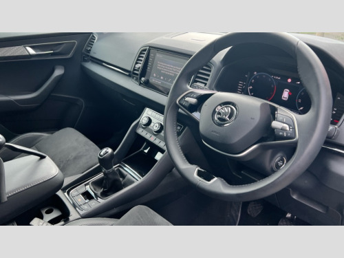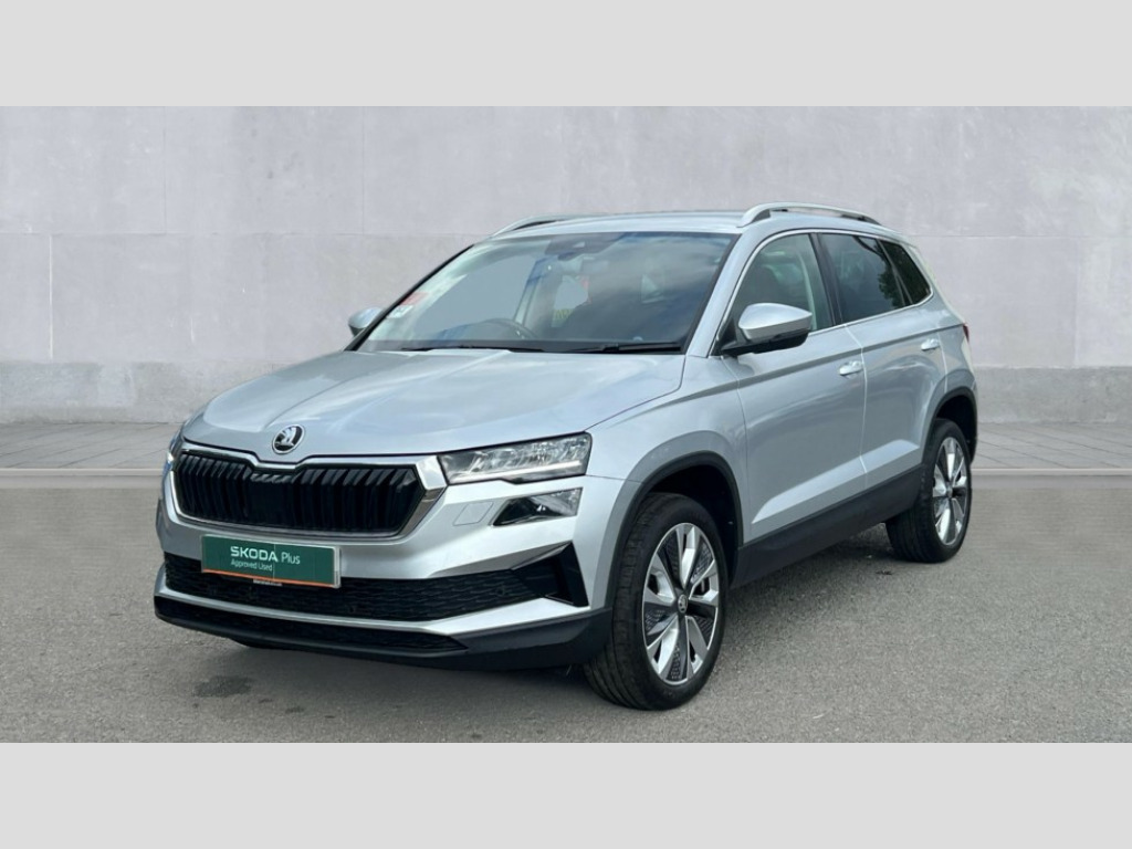 Skoda Karoq 1.0 TSI 116 SE L 5dr 8" Digital display, Advanced driver attention and drowsiness monitor, Drive Mode Selection including ECO function, Electro-mechanical PAS, Emergency services call system, Outside temperature gauge, Sensor for driver assistance systems, Service interval indicator, SmartLink wireless for Apple and wired for Android, Start/stop system with regenerative braking, USB C Port x 2 in front centre console, Virtual Cockpit - 10.25" digital display, Wireless smartphone charging, DAB radio with Bluetooth, USB connection, Acoustic glass, Aero front windscreen wipers with intermittent function, Auto dimming rear view mirror with light and rain sensors, Black electric window control buttons, Body colour door mirrors and handles, Electric front and rear windows with child proof lock, Heated rear windscreen, LED daytime running lights, LED rear lights with high functionality welcome effect and dynamic indicators, Light assistant (coming/leaving home/tunnel light), Plastic scuff plates in door apertures, Privacy glass, Rear side wing doors, Rear spoiler, Rear window wiper with washer system and intermittent control, Safety reflectors on front doors, Third brake light, 1.5 litre bottle holders in driver and front passenger door panels, 12V socket in boot, 12v socket in front centre armrest with storage compartment and rear air vents, 2 spoke leather heated multifunction steering wheel, 2 x Tablet holder, 3 rear height adjustable headrests, 3 seat bench in 2nd row, 4 foldable roof handles with rear coat hooks, Black floor carpet, Chrome inner door handles, Foldable hooks in the boot, Front head restraints, Height adjustable front three point seats belts with tensioners, Height/reach adjust steering wheel, Ice scraper, Illuminated glovebox, Illuminated luggage compartment, Interior noise suppression, Isofix child seat preparation for front passenger seat, Isofix child seat preparation outer rear, Manual lumbar support for front seats, Pearl grey interior ceiling, Pen holder, Pollen filter, Rear boot cover, Rear reading lights, Rubbish bin door, Safety vest holder, Single front passenger seat, Storage box in upper central dashboard closed, Sunvisors with illuminated vanity mirrors, Textile floor mats, Ticket holder, Design Pack - Karoq, Non Smokers pack, Parking pack - Karoq, Automatic door unlocking in case of crash, Automatic fuel cut off in case of crash, Driver airbag, Electronic parking brake with auto hold function, Emergency rear braking signal, ESC (incl. ABS+MSR+ASR+EDS+HBA+DSR+RBS+MKB), Front side airbags, Head airbags, Hill hold control, Knee airbags, Passenger airbag with switch-off function, Pedestrian monitor, Seatbelt reminder signalisation and pretensioner for all seats, Three point seatbelts rear, Two tone horn, Tyre pressure monitor, Alarm with interior monitoring, back up horn and tilt sensor with safe function, Electronic engine immobiliser, Keyless entry and start/stop, Remote central locking with 2 remote folding keys, Black centre console, Chrome framed air vents, Satin black dashboard, Anti-theft wheel bolts protection, Breakdown and tool kit